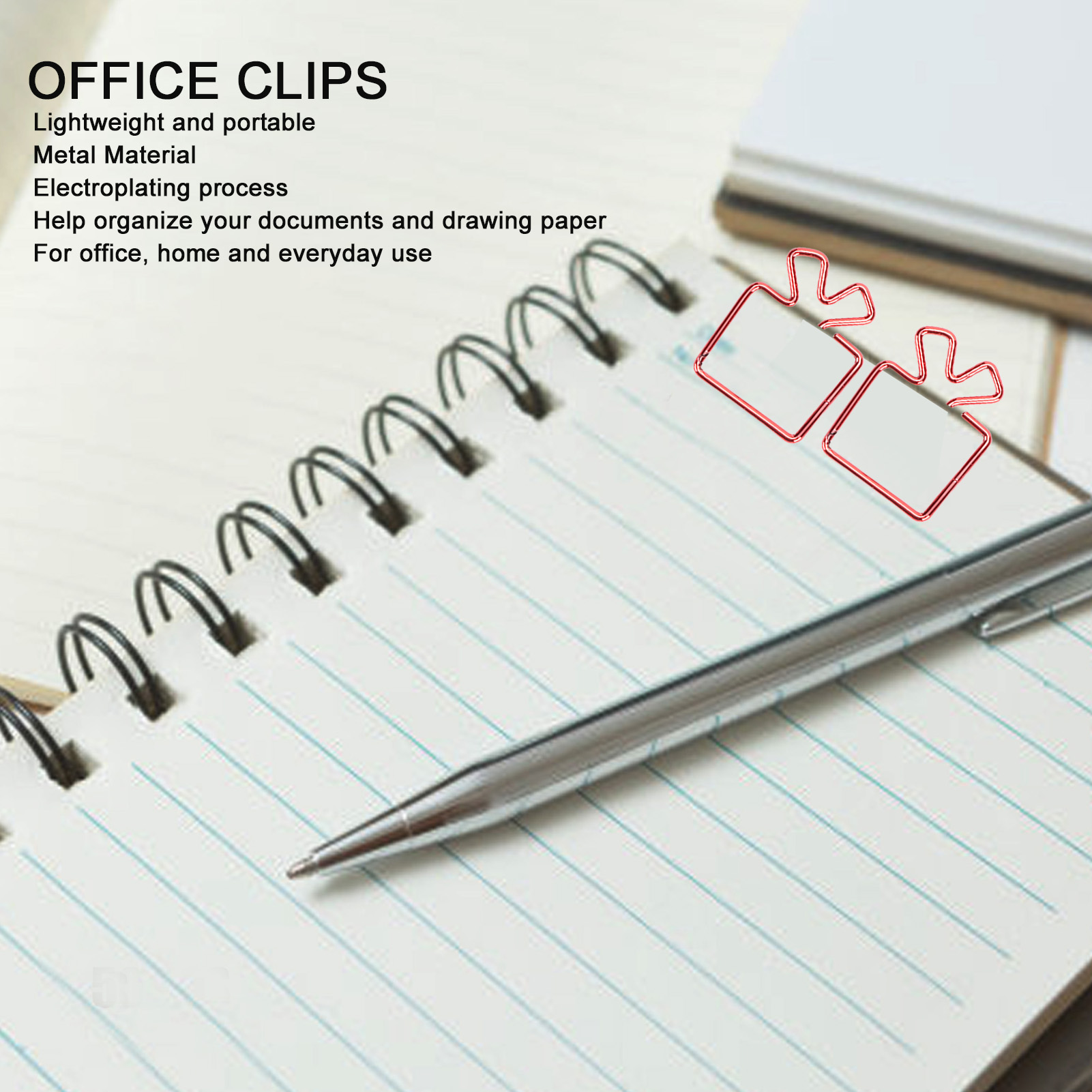 1、Cute Shape: The cute paper clips feature cute shape, which are simple and stylish to make organizing more fun 2、Light and Portable: The cute paper clips are light and portable, durable and not easy to break, ensuring long term use, suitable for document classification 3、Slip Resistance: The shape of the shaped paper clips is simple, which firmly clips the paper and is not easy to damage the paper, increasing the slip resistance 4、Scope of Application: The cute paper clips can help organize your documents and drawing paper, suitable for office, home and daily use 5、Metal Material: The cute paper clips are metal material, which adopts electroplating process, not easy to fade, not easy to rust