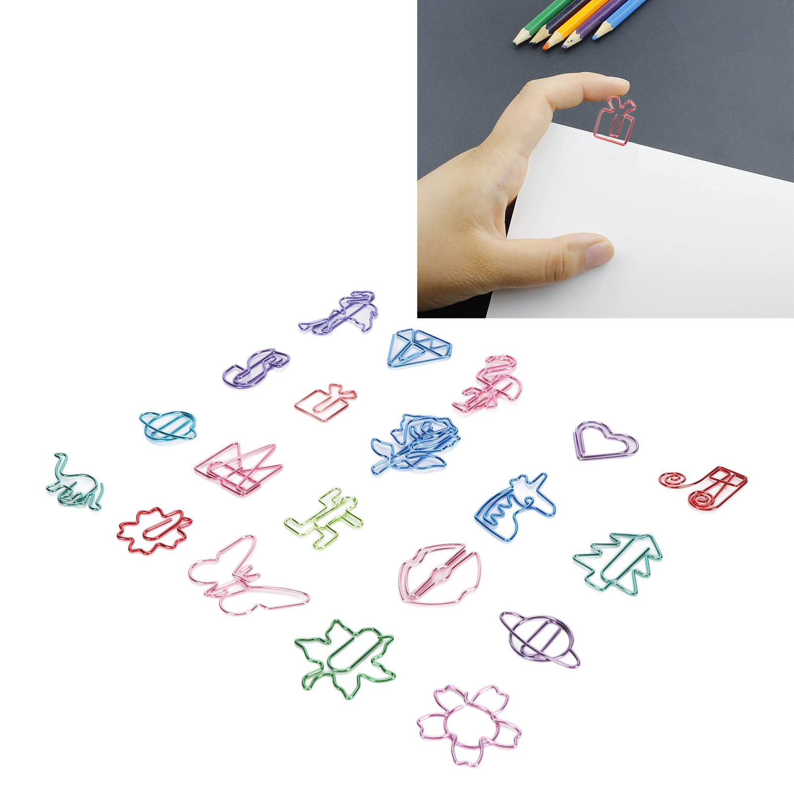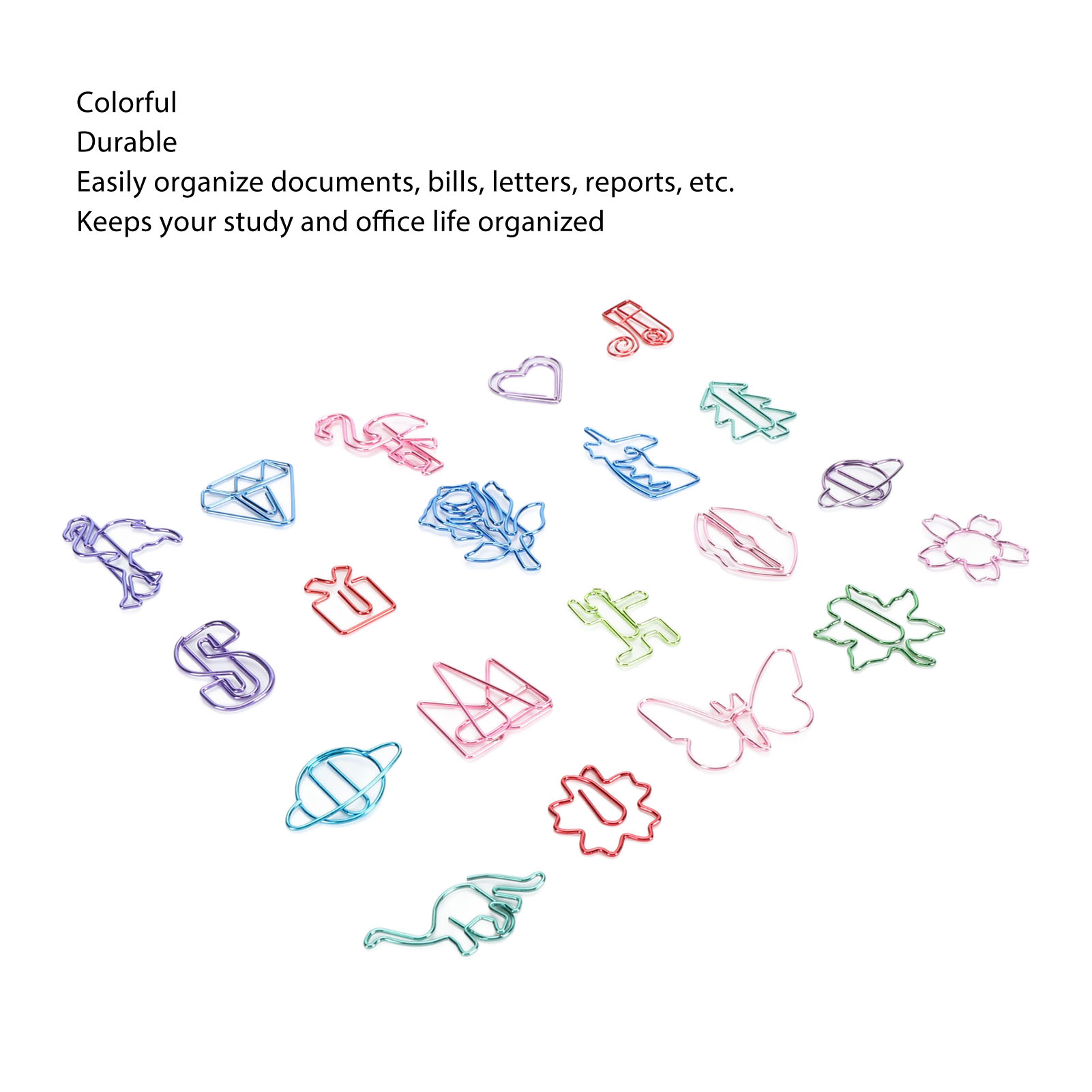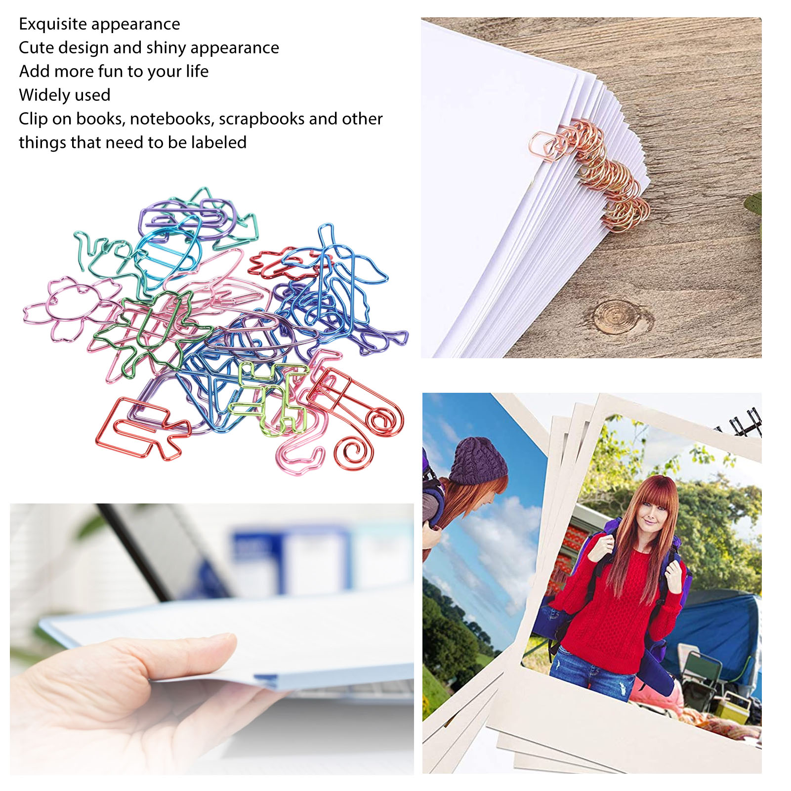 1、100PCS: You will receive 20 different color shapes, 5pcs of each, total 100 flat paper clips. Cute design and shiny appearance add more fun to your life. 2、METAL MATERIAL: The paper clips are made of premium metal, strong enough to hold paper well, not easy to rust and break, can be used for a long time, not easy to fade. 3、APPLICATION: These decorative paper clips can be clipped to books, notebooks, scrapbooks and other things that need to be marked. 4、MULTIPURPOSE: The small paper clips hold paper firmly in place and can also be used as bookmarks, photo holders, memo holders, calendar markers and more. 5、DOCUMENT ORGANIZATION: Cute paper clips can help organize your documents and drawing paper, suitable for office, home and daily use.