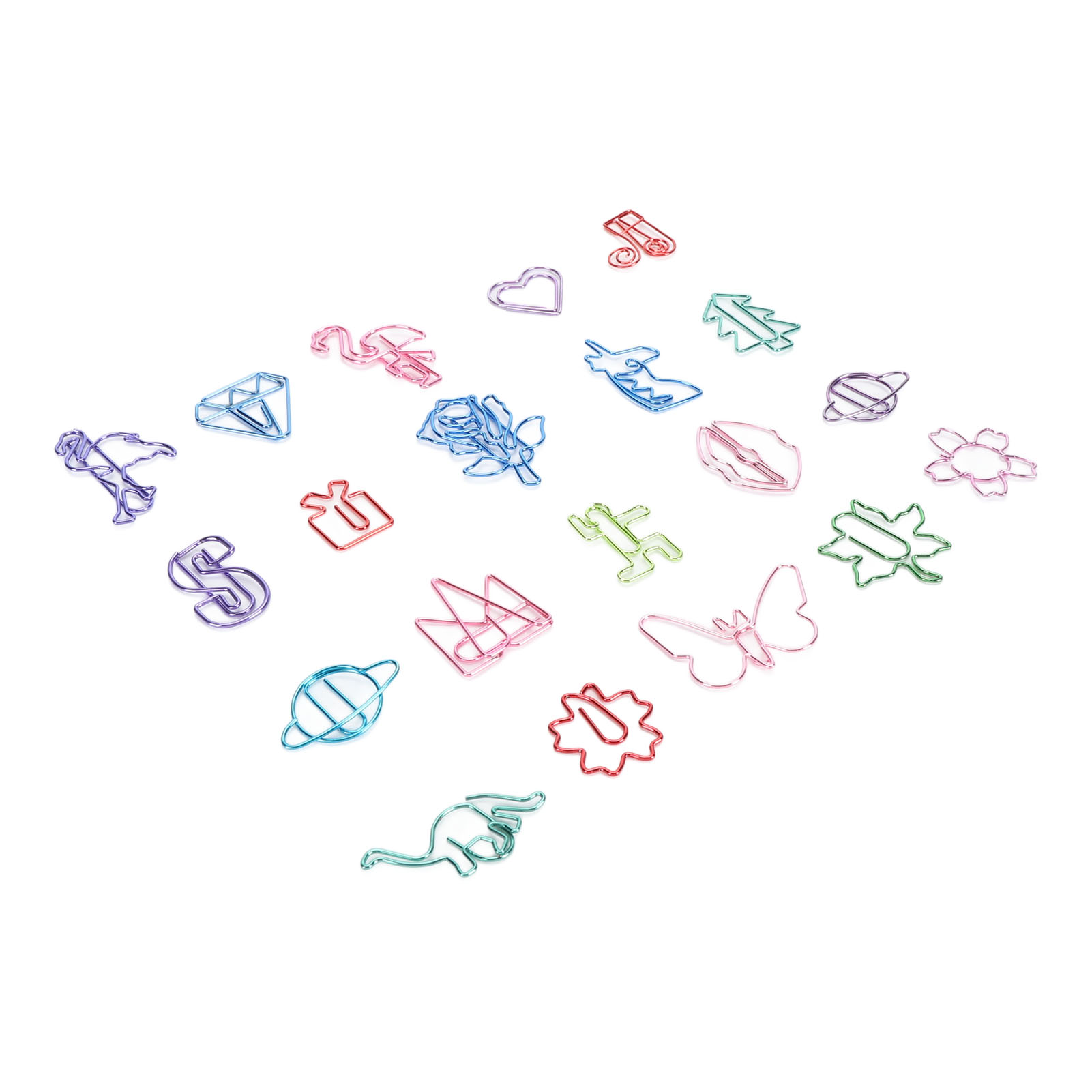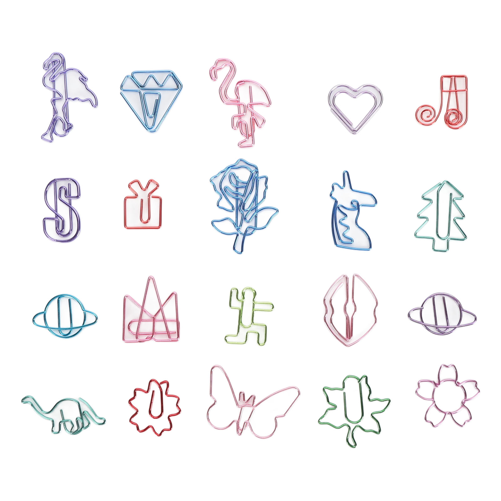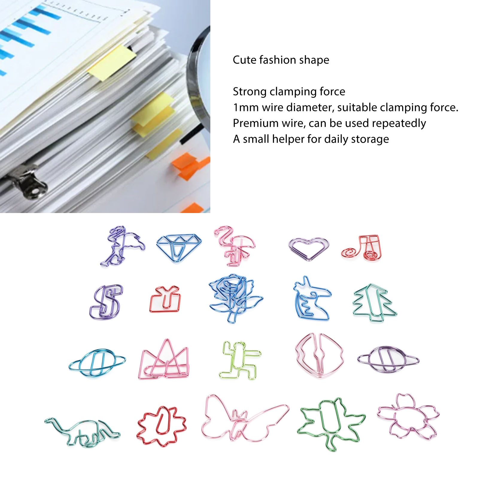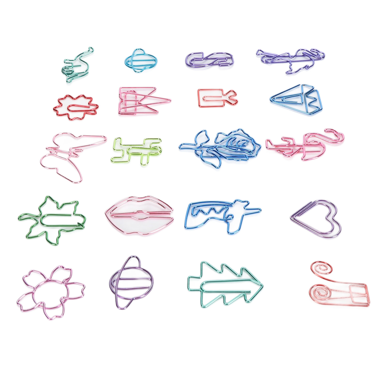 1、100PCS: You will receive 20 different color shapes, 5pcs of each, total 100 flat paper clips. Cute design and shiny appearance add more fun to your life. 2、METAL MATERIAL: The paper clips are made of premium metal, strong enough to hold paper well, not easy to rust and break, can be used for a long time, not easy to fade. 3、APPLICATION: These decorative paper clips can be clipped to books, notebooks, scrapbooks and other things that need to be marked. 4、MULTIPURPOSE: The small paper clips hold paper firmly in place and can also be used as bookmarks, photo holders, memo holders, calendar markers and more. 5、DOCUMENT ORGANIZATION: Cute paper clips can help organize your documents and drawing paper, suitable for office, home and daily use.