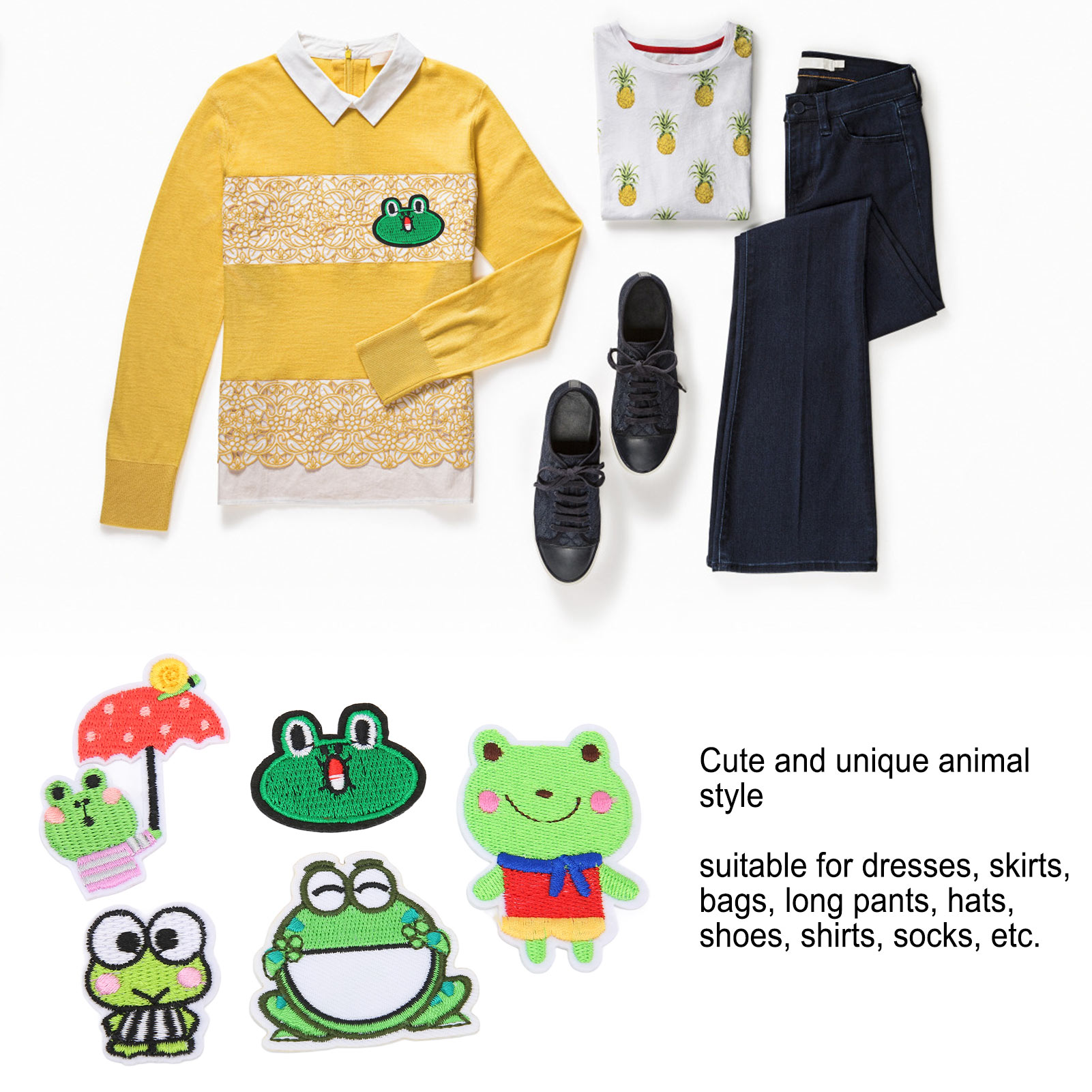 1、Green Animal Style: These sew on patches feature super cute green animal style, can be use for decoration or collection. 2、10 Pieces: You will receive 10 pieces of embroidery appliques in total, offering enough choices for your DIY projects and craft. 3、Wide Application: These iron on patches are suitable for dresses, skirts, bags, long pants, hats, shoes, shirts, socks, etc. 4、Easy to Use: These cute patches with hot melting adhesive on the back can be easily used by sewing and ironing. 5、Durable Material: These embroidered patches adopt reliable and premium cotton material, which is exquisite and highly durable.