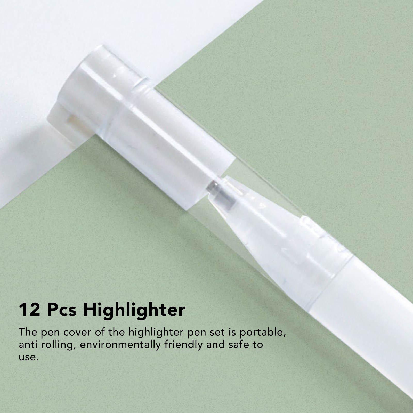 1、Smoother Writing: Highlighter pen has smoother writing and uniform coloring, and can be used for painting, design, taking notes, etc. 2、Round Penholder: Highlighter pen adopts round penholder, which is designed in one piece and feels comfortable. 3、12 Pieces: Highlighter pen set contains 12 pens, which can meet the long term use requirements. 4、Durable Convenient: White highlighter has a large amount of ink, which makes it more durable, saves time by saving refill replacement. 5、Pen Clip: The pen cover of the highlighter pen set is portable, anti rolling, environmentally friendly and safe to use.