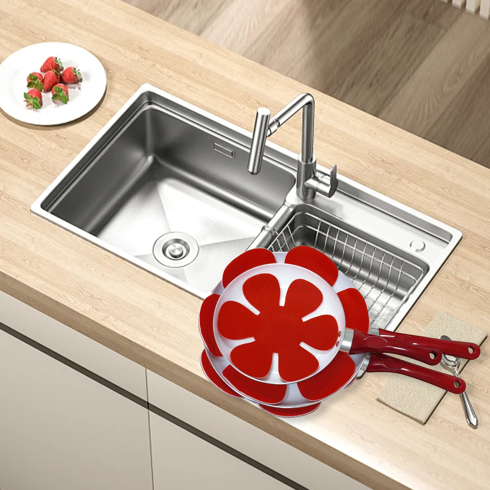 1、MORE USES: You can even prevent fondue, pans, and plates from damaging your countertops with this pot pan protector, a great addition to your kitchen 2、SUFFICIENT QUANTITY: You will receive 12 pieces of stacking pot pan protectors in sufficient quantity to meet your daily using needs, useful and practical 3、SEPARATION FUNCTION: Placing a pot separation pad between the pot and the pot can avoid scratches, preserve the non stick coating of the cooker, and extend the service life of the cooker. Can also be used on glassware and ceramics to avoid locking or chipping 4、EFFECTIVE PROTECTION: When felt pan protector pads are stored in cabinets or storage bags, they are perfect for protecting fine porcelain and cutlery 5、RELIABLE MATERIAL: Pot pan dividers separators is made of soft felt that prevent scratches and chips on your plate or porcelain, which is environmentally friendly, long lasting and lightweight