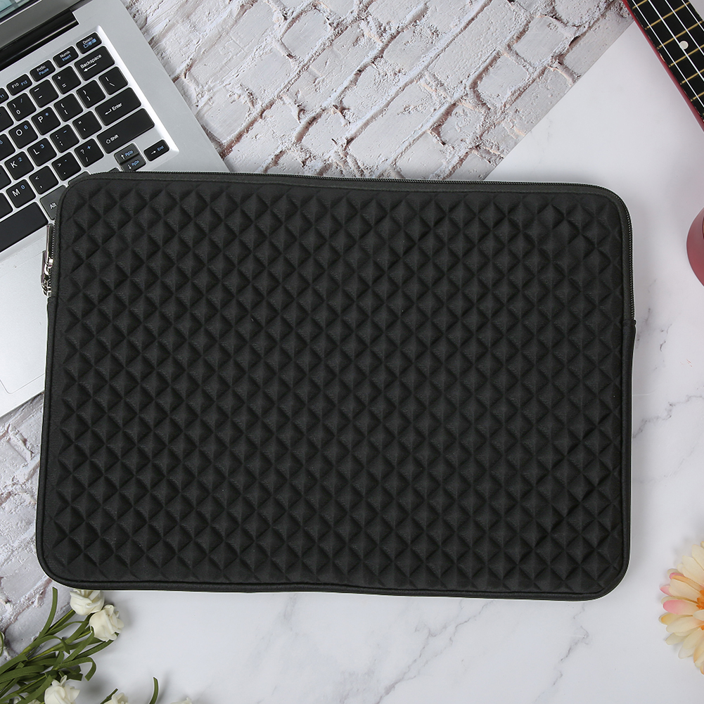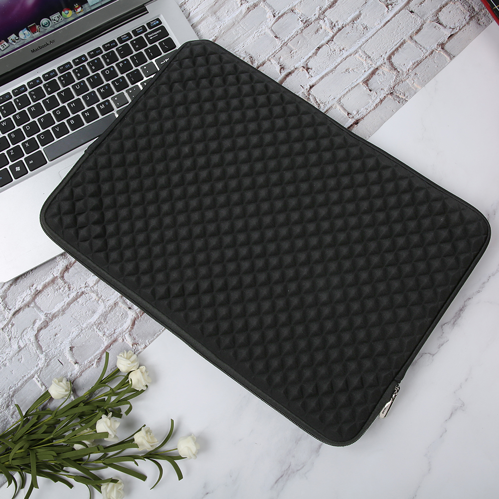 1、Polyester fabric can achieve daily waterproof, wearable and lasting to use. 2、Exquisite tailoring, build a classic sense of fashion with superior color and texture. 3、Selected lycra and sponge material, with soft texture and long durability. 4、Minimalist solid color design, delicate diamond grained surface. 5、Double metal zipper slides smoothly for easy access to your laptop. 6、Portable handbag design, you can take your laptop wherever you go