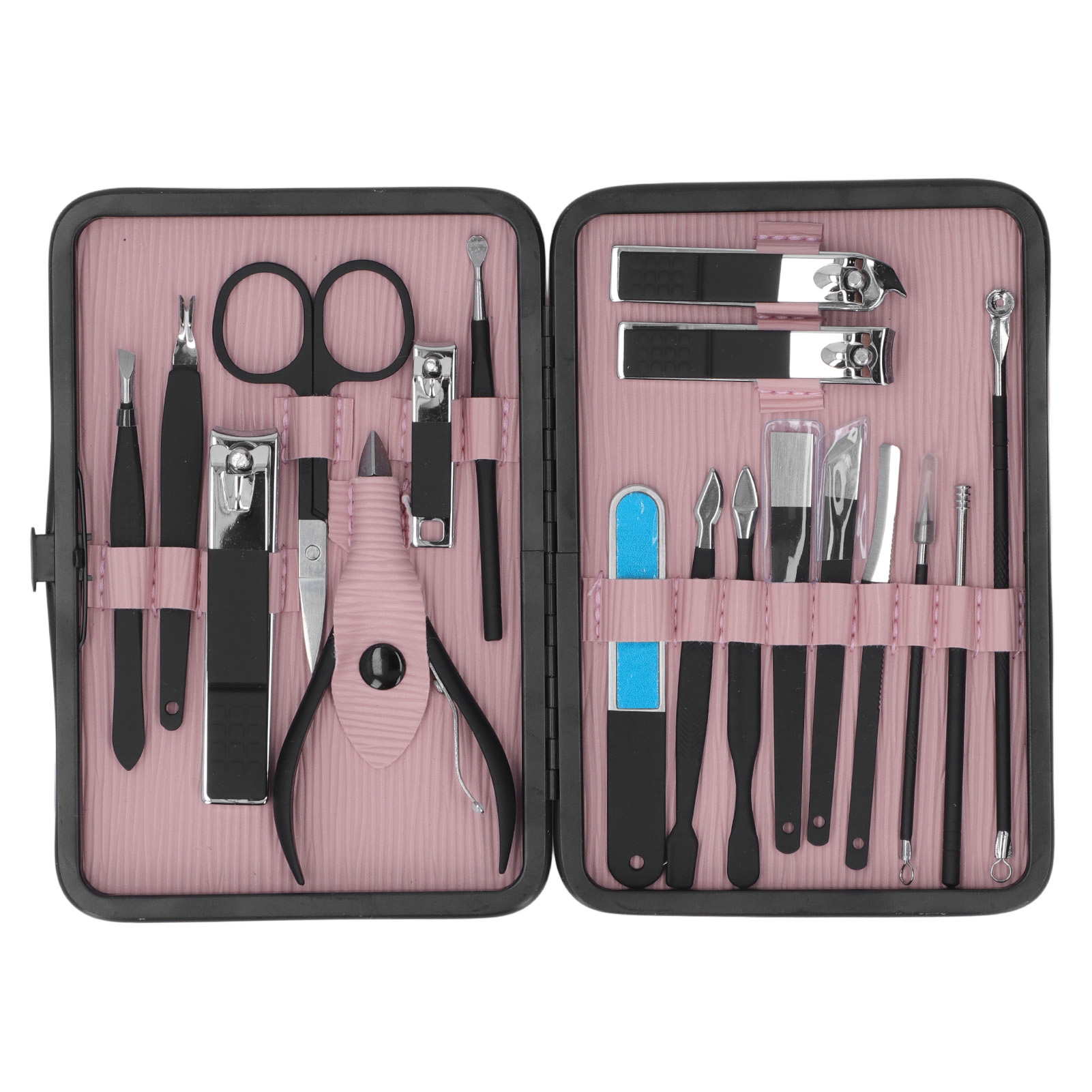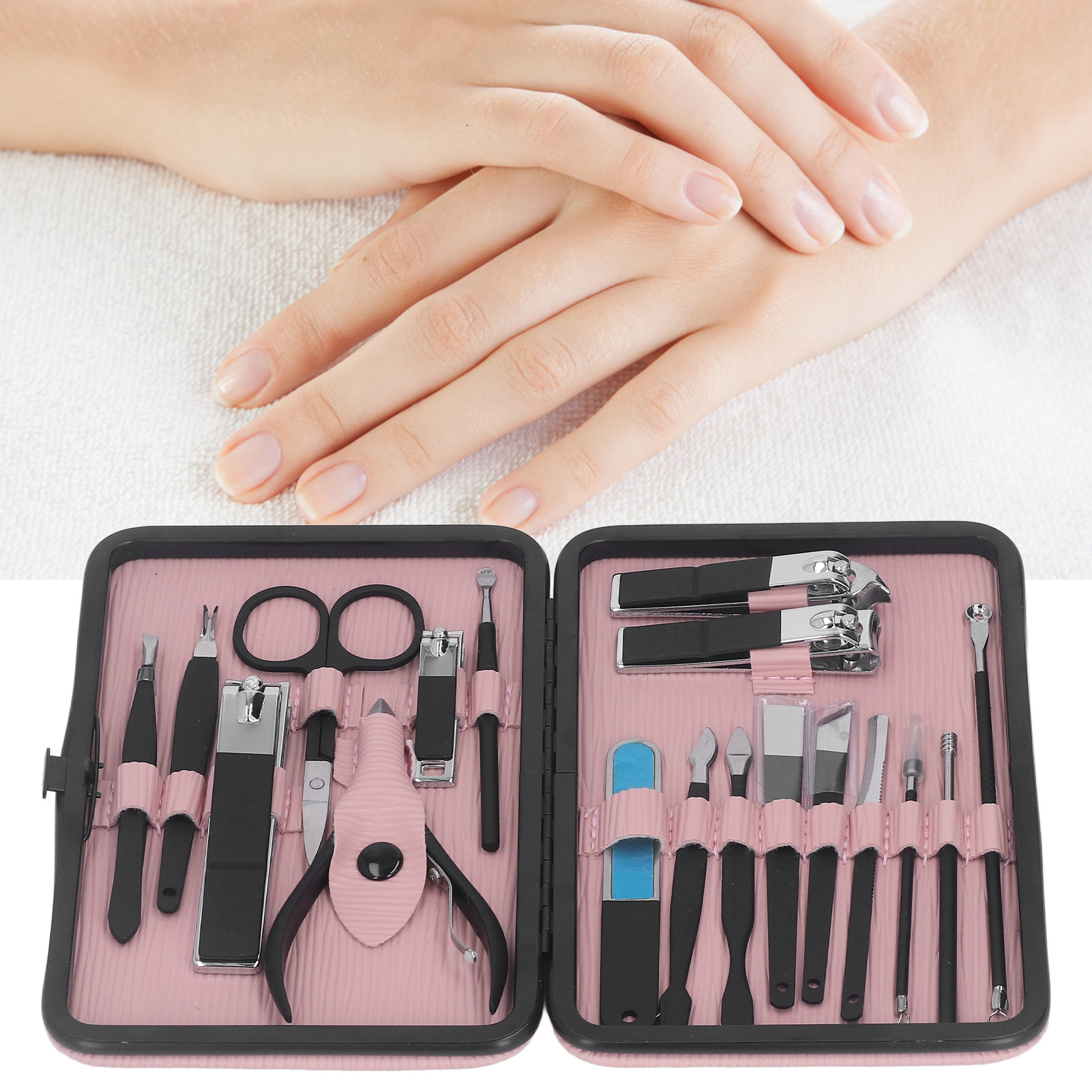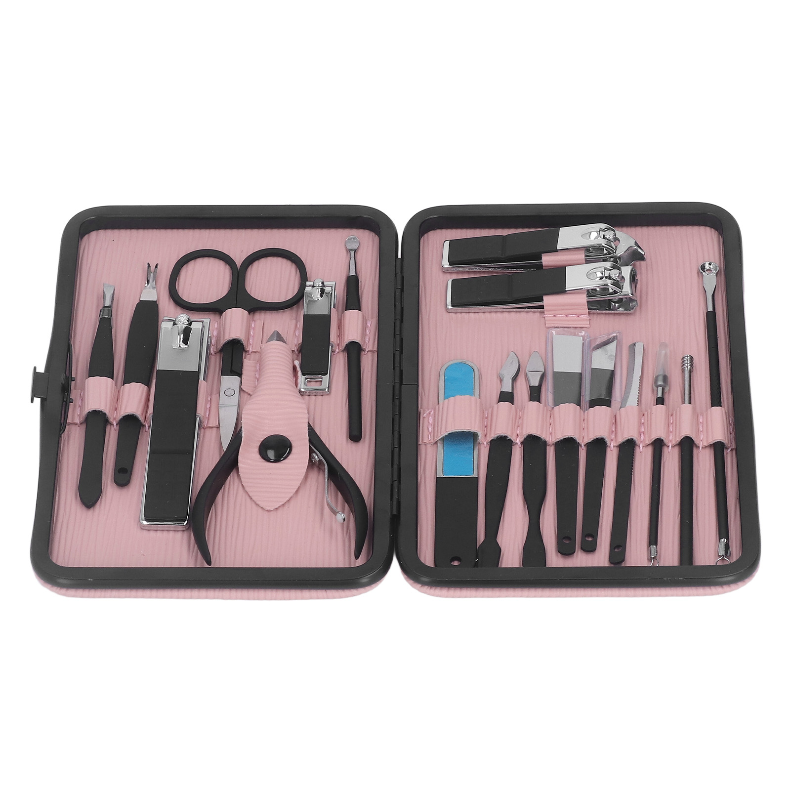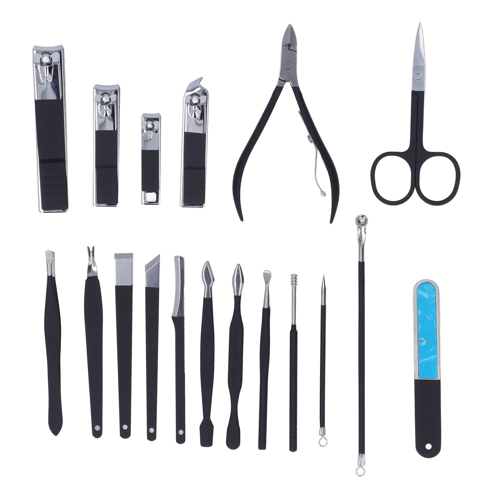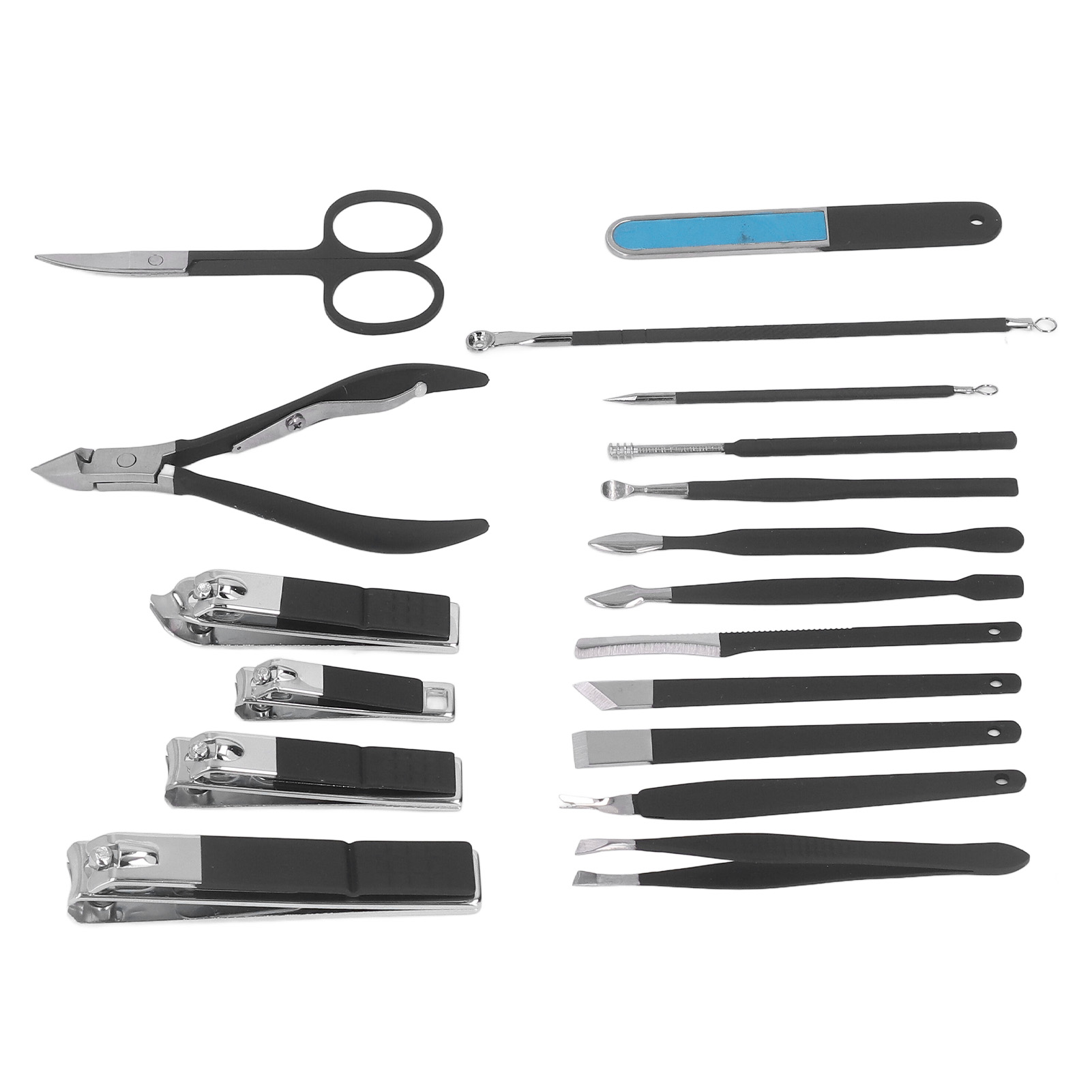 1、Premium Materials: Nail tools are made of stainless steel, which is durable, will not fade, and have a long service life. 2、Lightweight Portable: This manicure set, with a lightweight design, portable and easy to carry, is your perfect travel companion. 3、Sturdy Durable: Nail tools set upgrades no spring or single spring to double spring, strong and durable, curved blade for easy handling. 4、Set Includes: The set includes dead skin file, small knife, double ended pick, dead skin pusher, medium nail clipper, diagonal nail clipper, small nail clipper, eyebrow trimmer, ear scoop, etc. 5、Storage Box: The storage box made of PU leather is beautiful, portable, non fading and not easy to wear.
