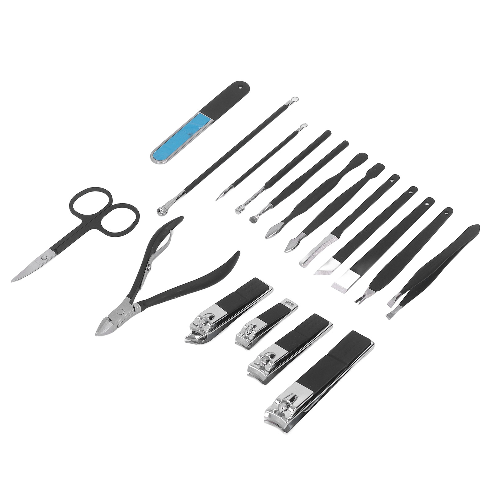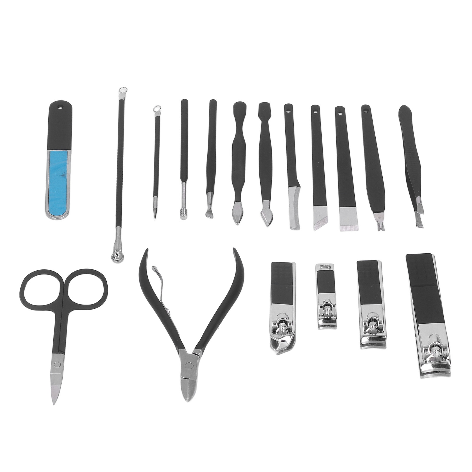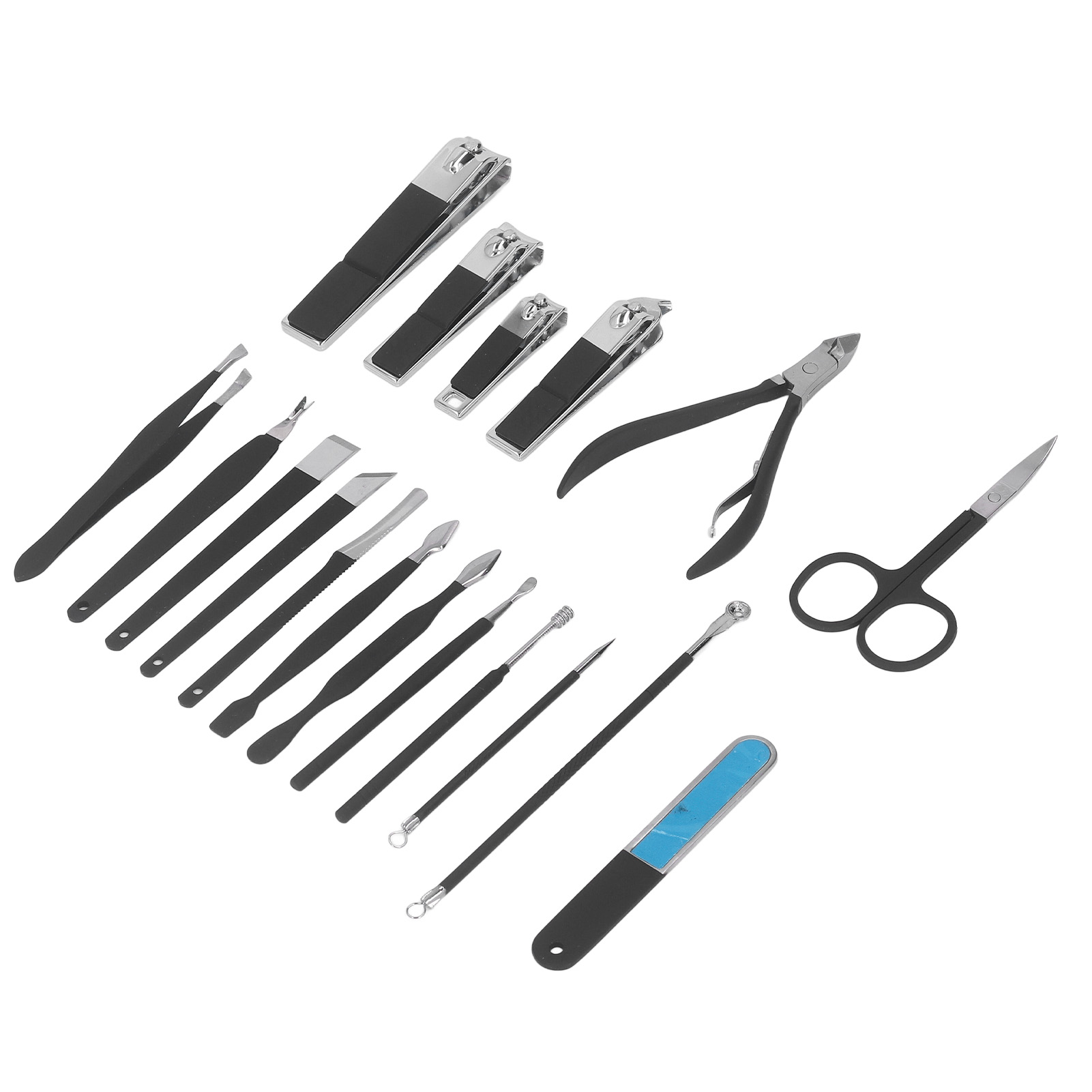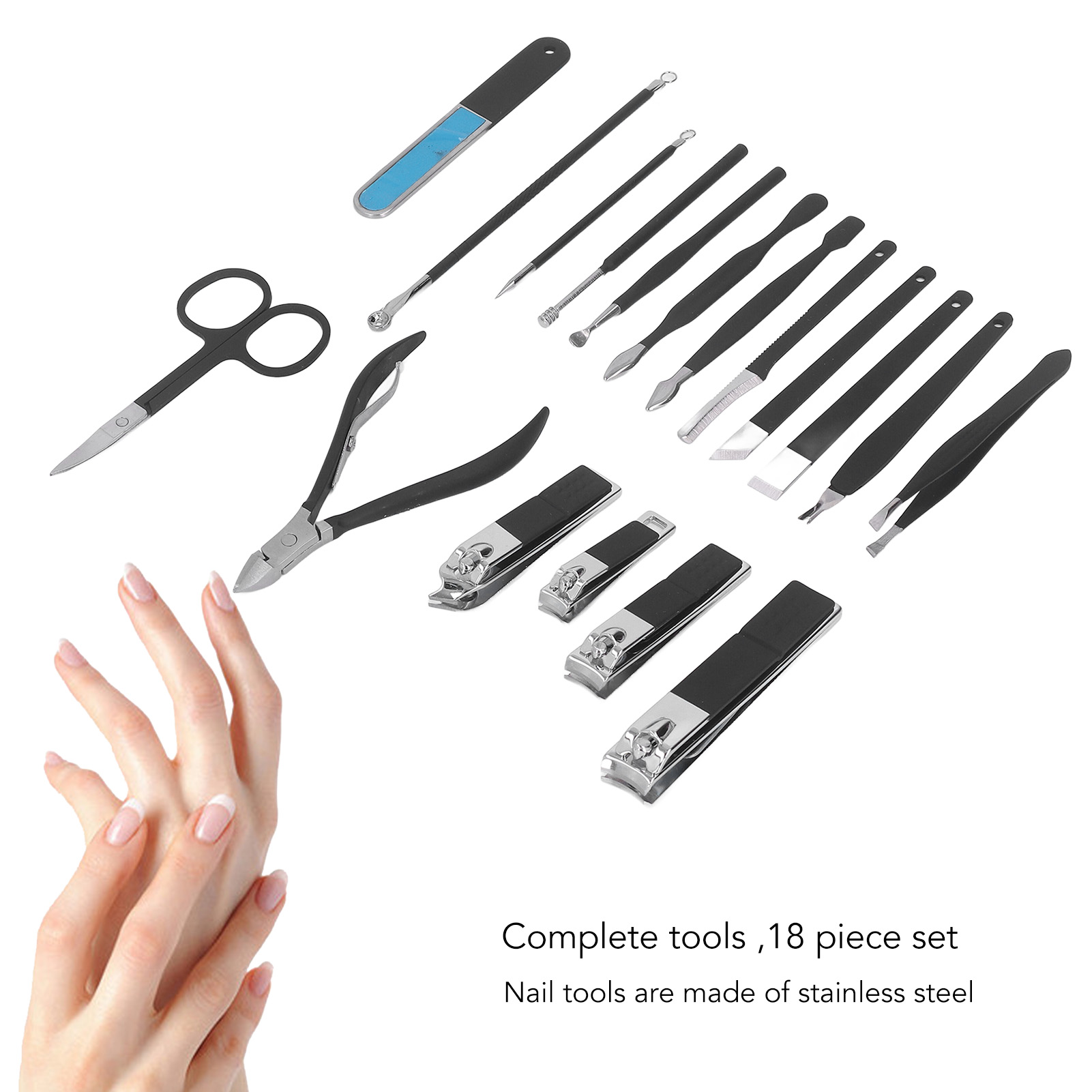 1、Premium Materials: Nail tools are made of stainless steel, which is durable, will not fade, and have a long service life. 2、Lightweight Portable: This manicure set, with a lightweight design, portable and easy to carry, is your perfect travel companion. 3、Sturdy Durable: Nail tools set upgrades no spring or single spring to double spring, strong and durable, curved blade for easy handling. 4、Set Includes: The set includes dead skin file, small knife, double ended pick, dead skin pusher, medium nail clipper, diagonal nail clipper, small nail clipper, eyebrow trimmer, ear scoop, etc. 5、Storage Box: The storage box made of PU leather is beautiful, portable, non fading and not easy to wear.
