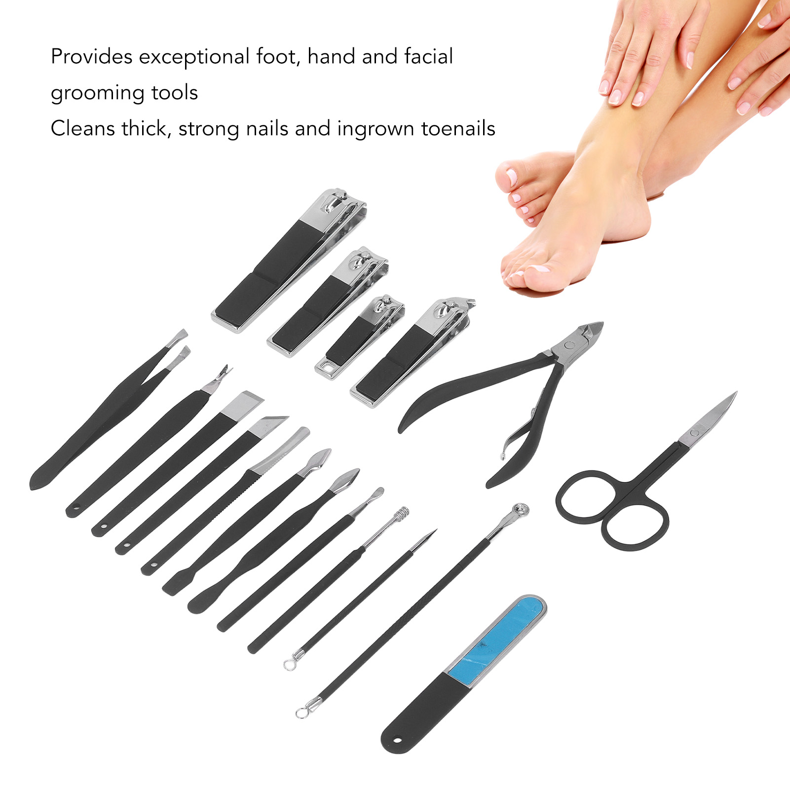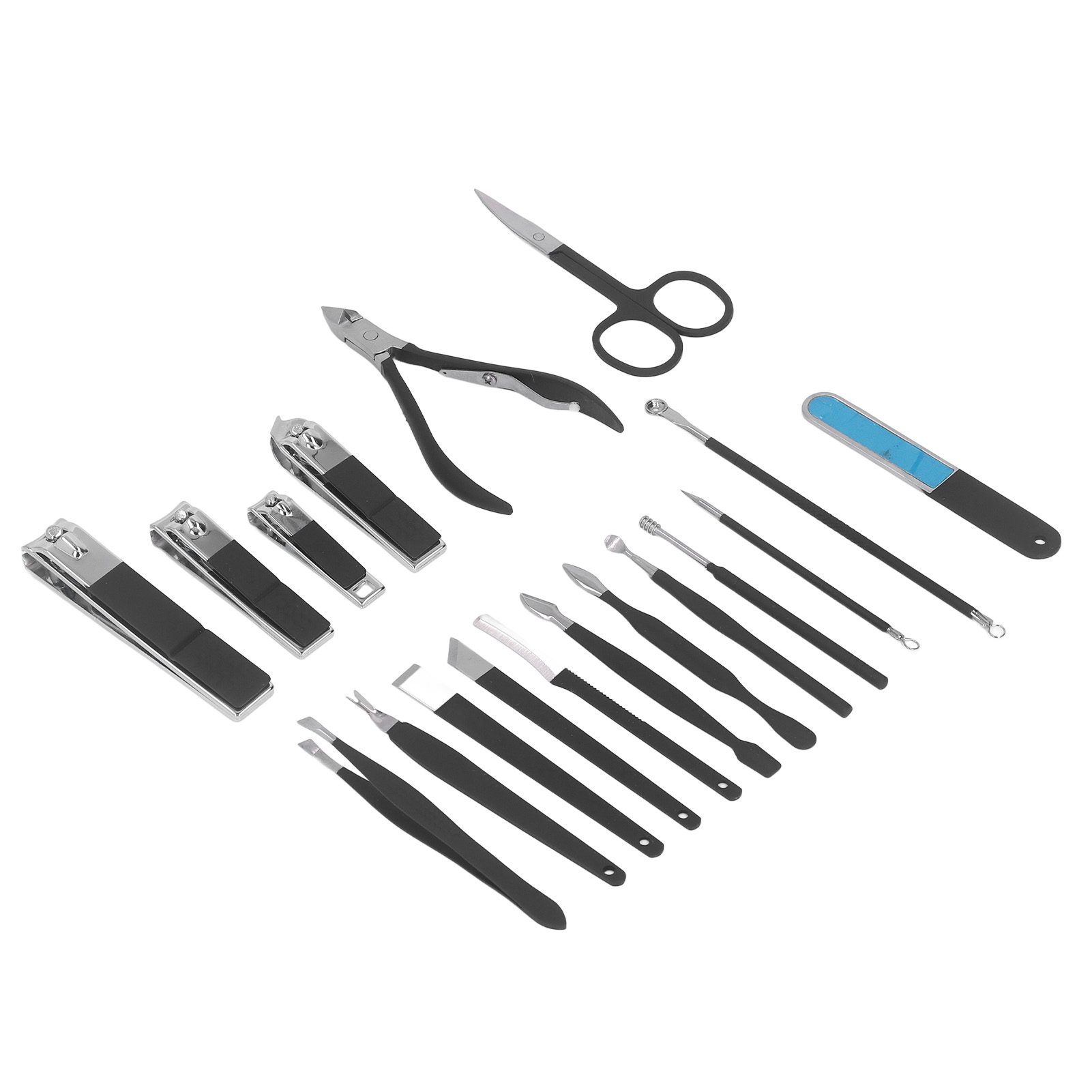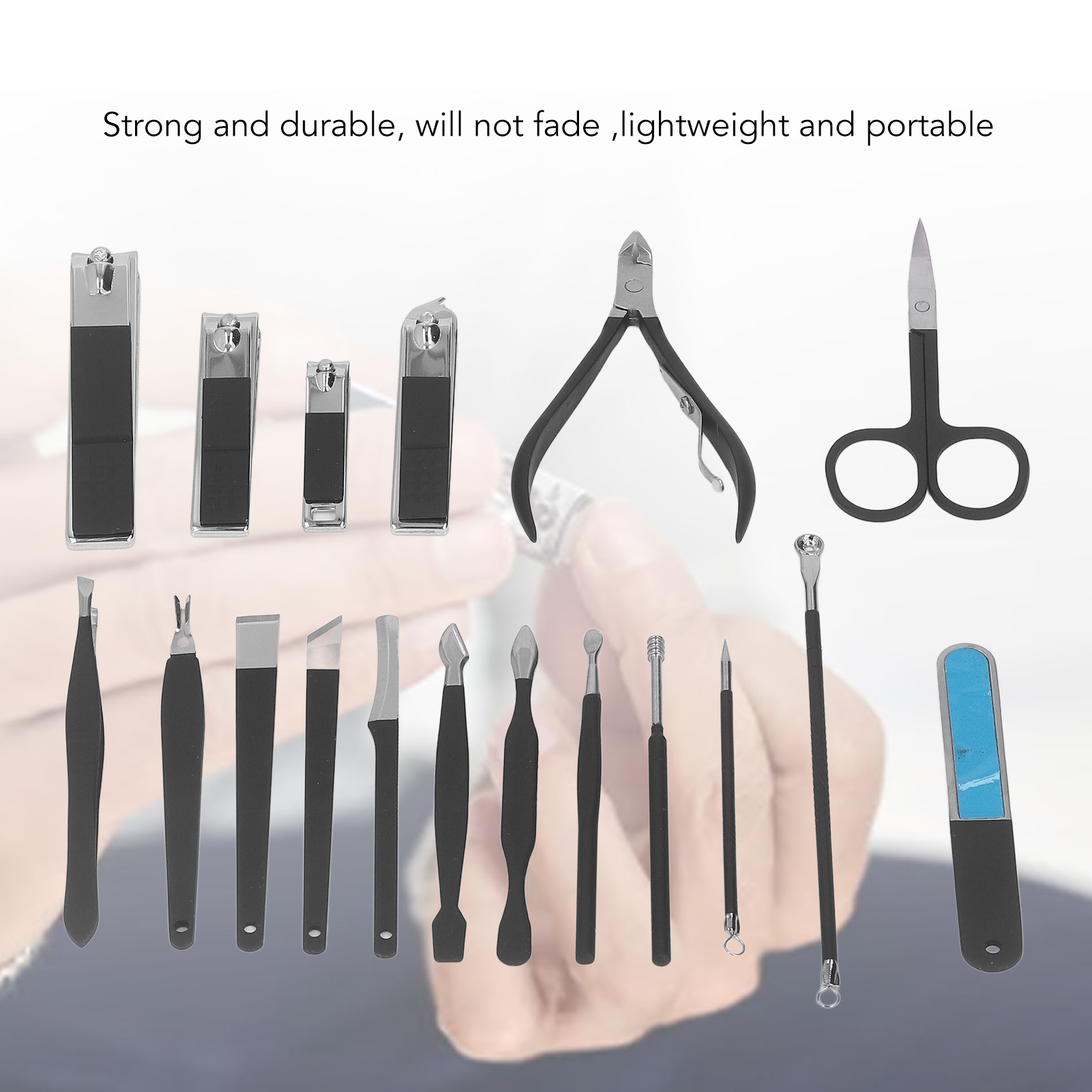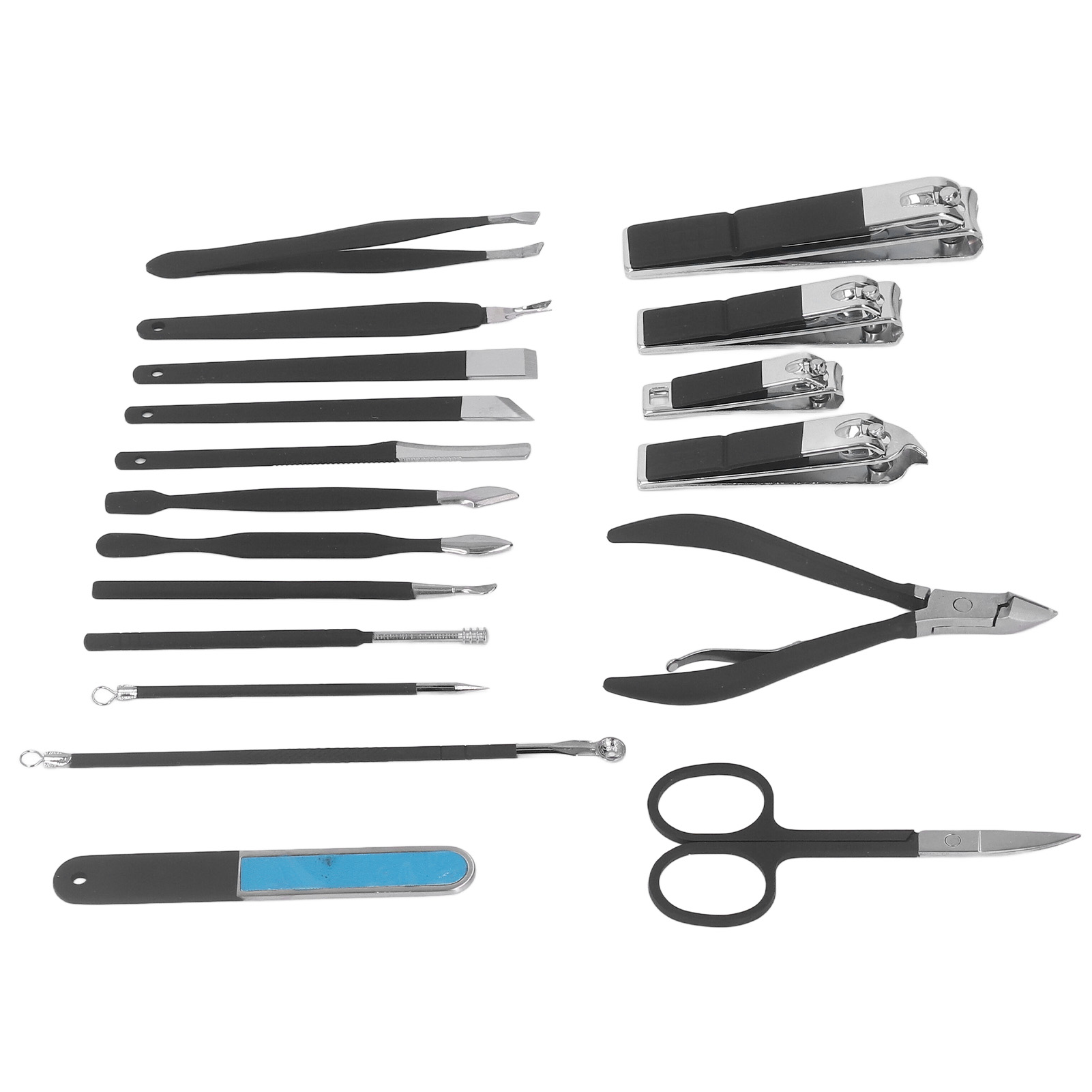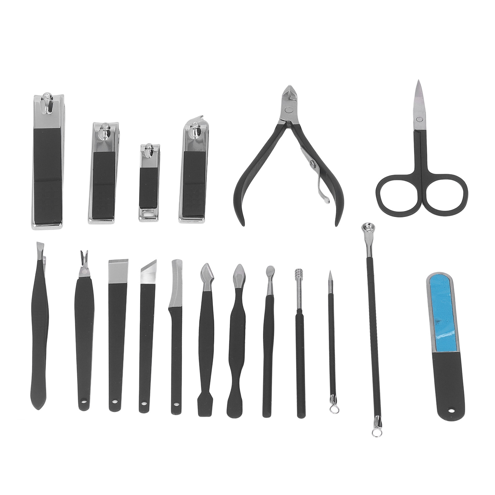 1、Premium Materials: Nail tools are made of stainless steel, which is durable, will not fade, and have a long service life. 2、Lightweight Portable: This manicure set, with a lightweight design, portable and easy to carry, is your perfect travel companion. 3、Sturdy Durable: Nail tools set upgrades no spring or single spring to double spring, strong and durable, curved blade for easy handling. 4、Set Includes: The set includes dead skin file, small knife, double ended pick, dead skin pusher, medium nail clipper, diagonal nail clipper, small nail clipper, eyebrow trimmer, ear scoop, etc. 5、Storage Box: The storage box made of PU leather is beautiful, portable, non fading and not easy to wear.
