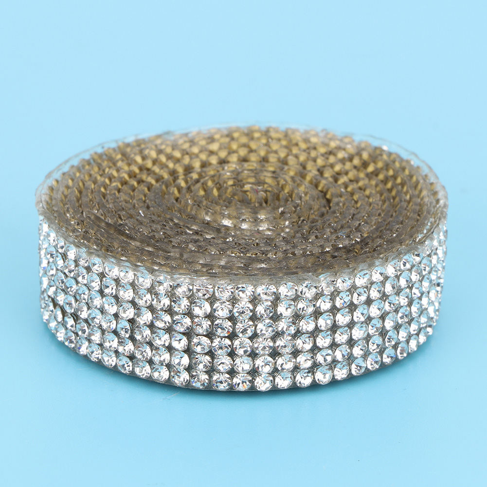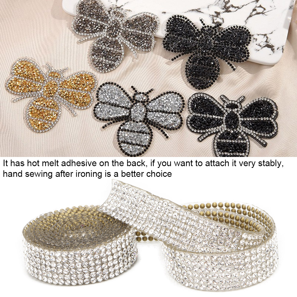 The rhinestone banding has hot melt adhesive on the back. You can use heat press machine or electric iron(ironing temperature: 150℃, ironing time: 8sec) to heat it up. It also can be attached to your clothes by glue or hand sewing.