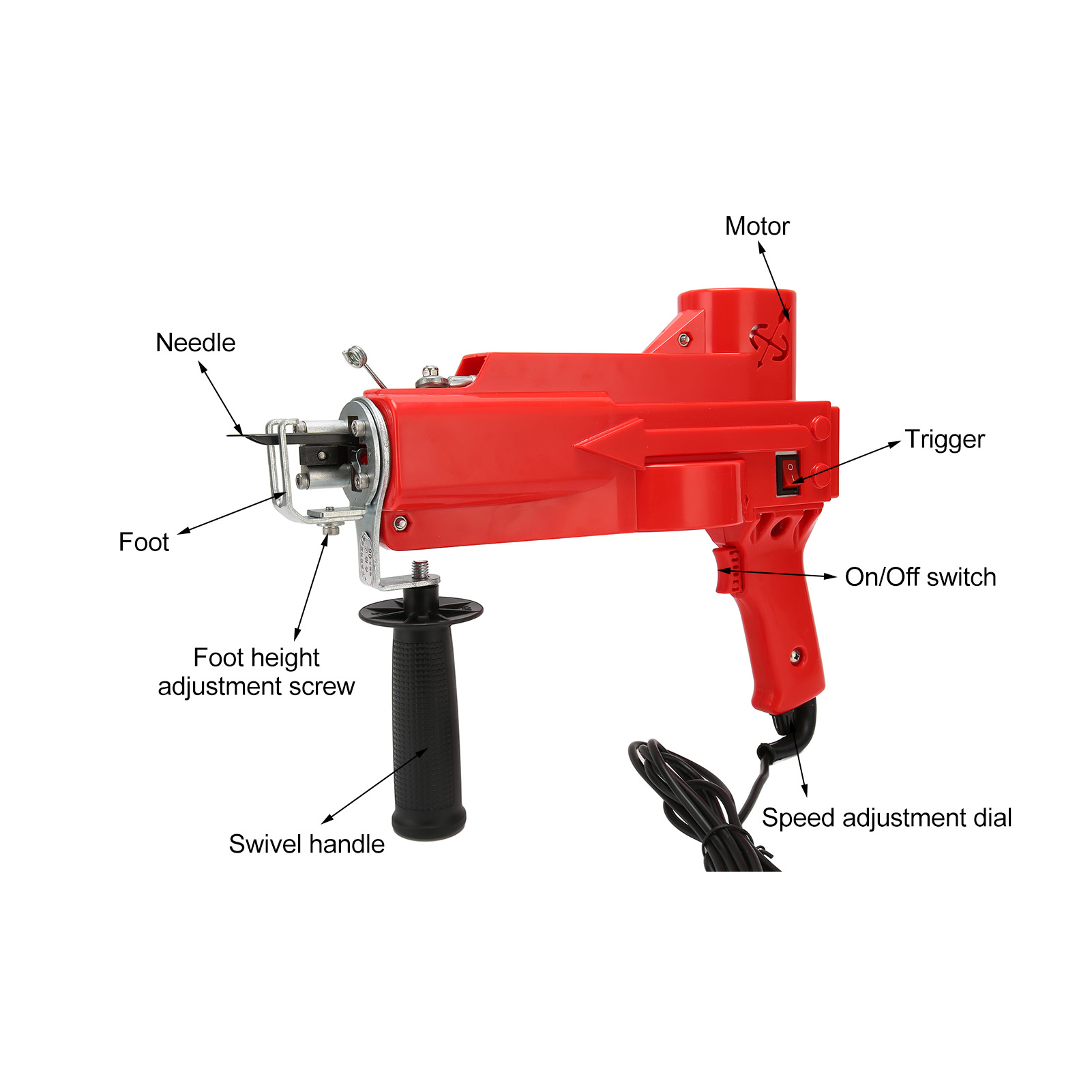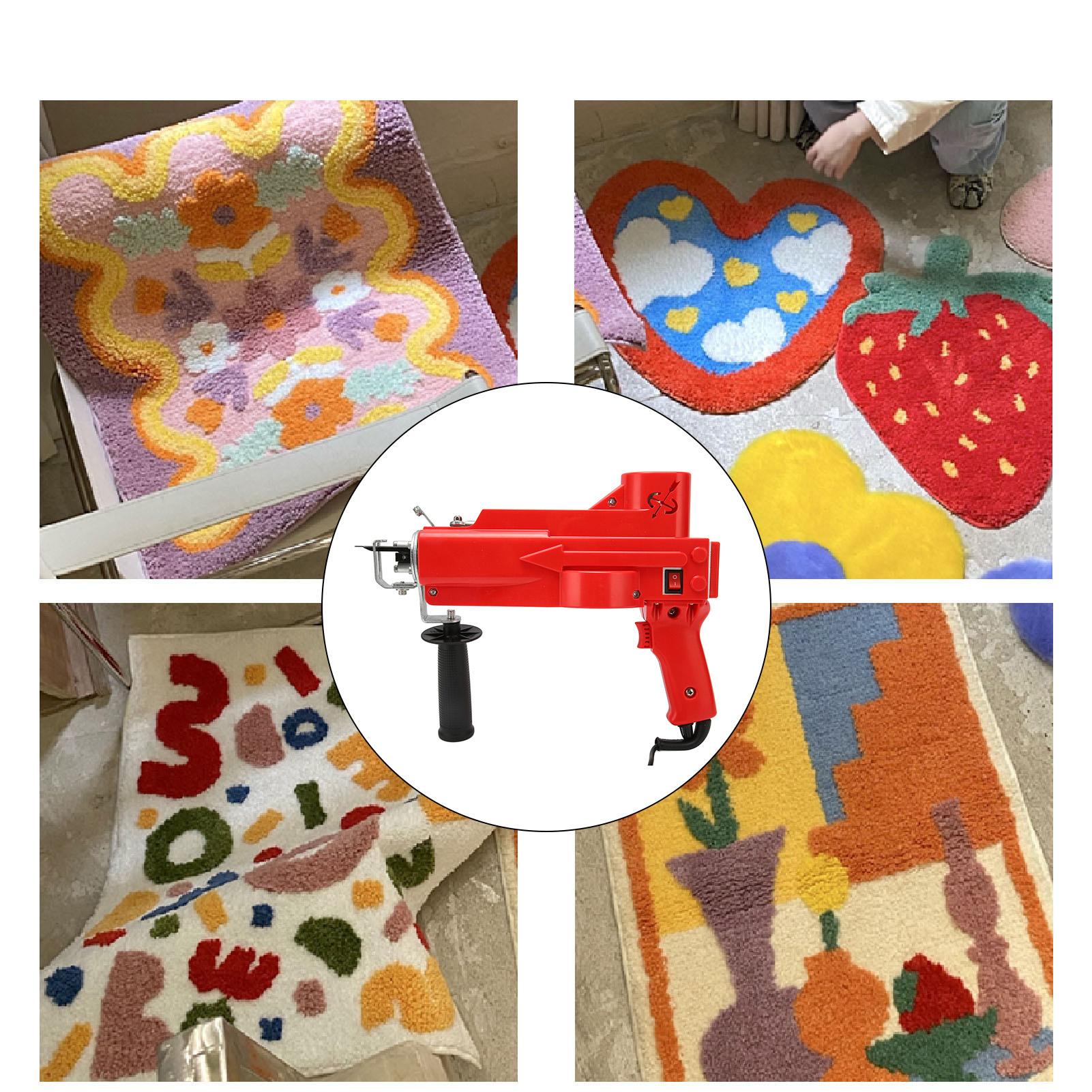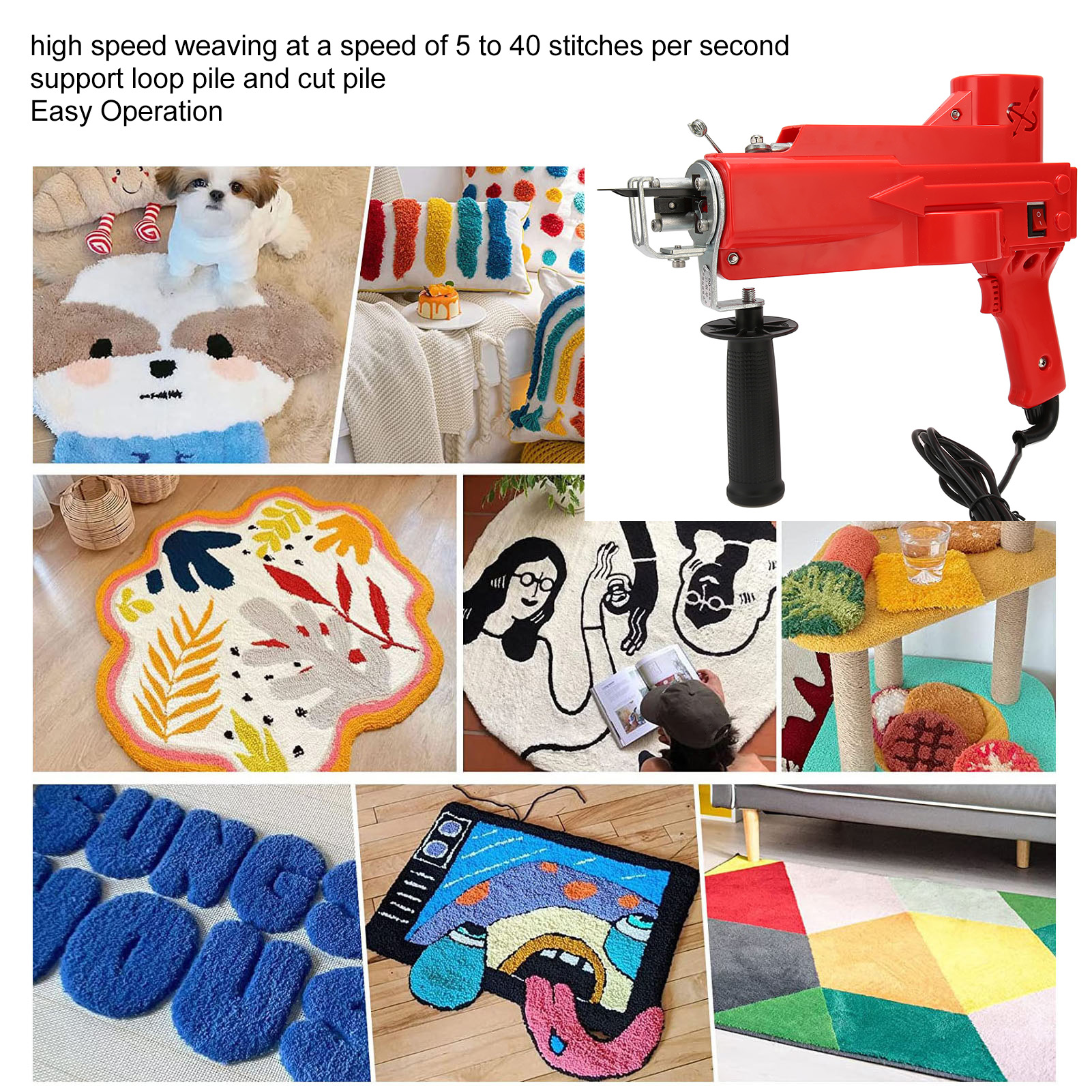 1、2 IN 1: Tufting machine can manually switch between pile cutting/looping, easy to operate, just change the scissors to switch easily, easy to use and efficient. 2、HIGH EFFICIENCY: Carpet gun machine can reaching 5 to 40 stitches/second, increasing productivity by 80 to 150 times, saving more time. 3、WITH AUXILIARY HANDLE: The Electric rug gun machine is equipped with a 360 degree adjustable auxiliary handle, which provides maximum comfort and flexibility during use. 4、LOW NOISE: Carpet weaving machine is quiet and does not make a lot of noise, almost all yarns can be used, wide range of applications, can be used to weave different types of carpets. 5、EASY TO INSTALL: Motor speed can reaching more than 2400RPM for high speed tufting, easy to install, easy to grasp, long service life and less trouble.
