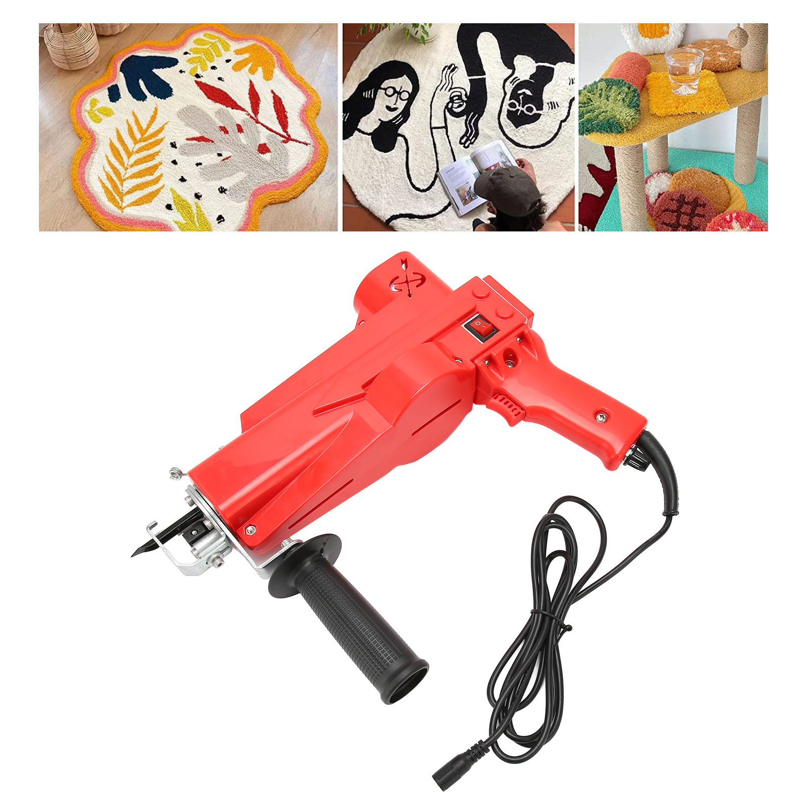 2 in 1 Rug Tufting Machine Cut Pile Loop Pile Low Noise Carpet Gun Machine with Auxiliary Handle 100‑240V Red EU Plug
