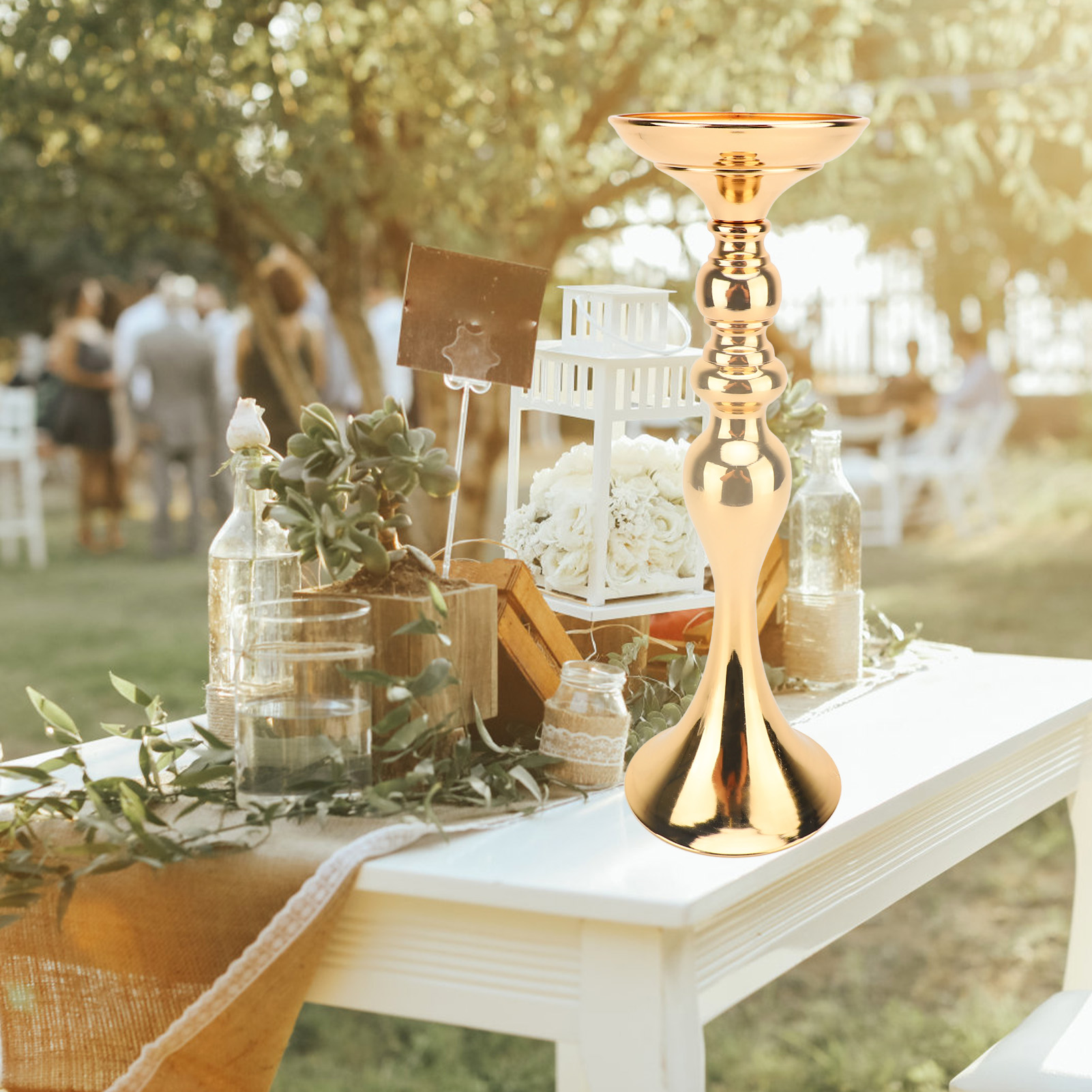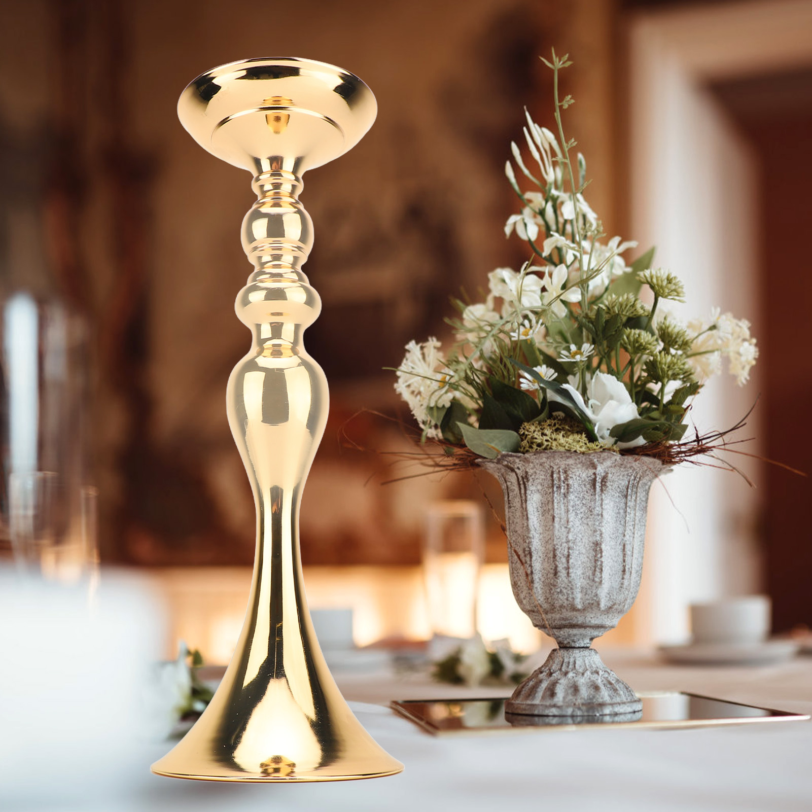 1、[Exquisite Metal Design] This candle holder features a beautiful metal iron design with unique shape, adding a touch of romance to wedding and celebration decor. 2、[Eye Catching Centerpiece] Perfect for adorning the main table centerpiece, this flower stand is designed to captivate attention and enhance the visual appeal of any event. 3、[Sturdy and Stable] Crafted from premium iron material, this centerpiece stand is sturdy and long lasting, keeping the candlestick stable. 4、[Multi Functional Use] Suitable for holding candles or decorative flower arrangements, this stand serves multiple purposes and enhances the overall aesthetic of any setting. 5、[Perfect Decoration] Ideal for weddings, celebrations, and special events, this flower vase stand is a perfect decorative piece that elevates the ambiance.