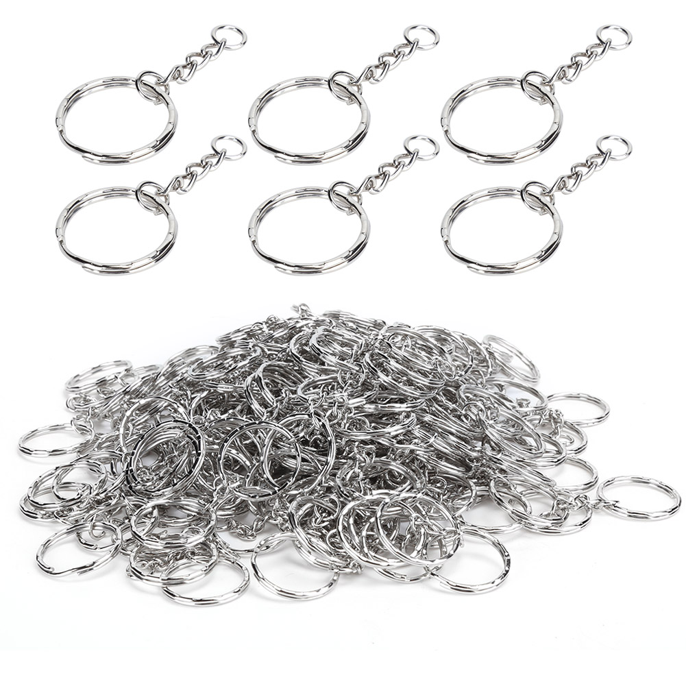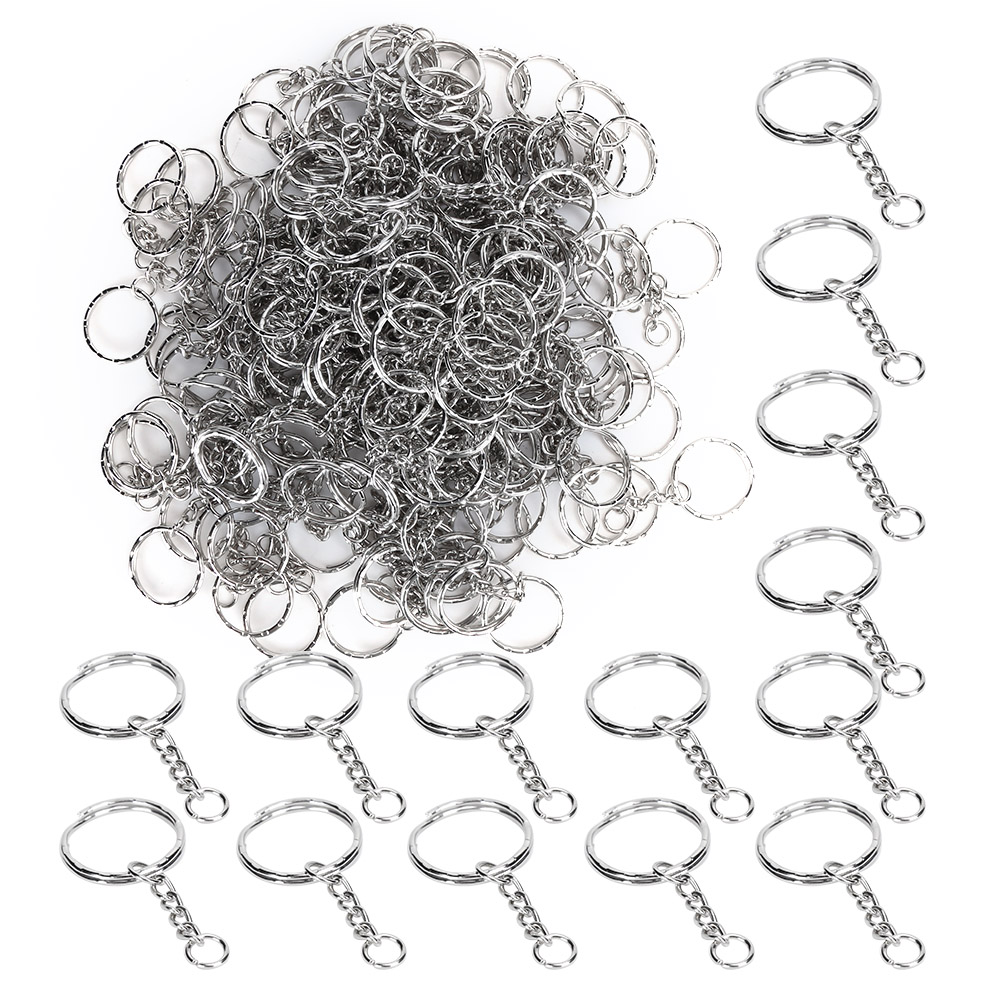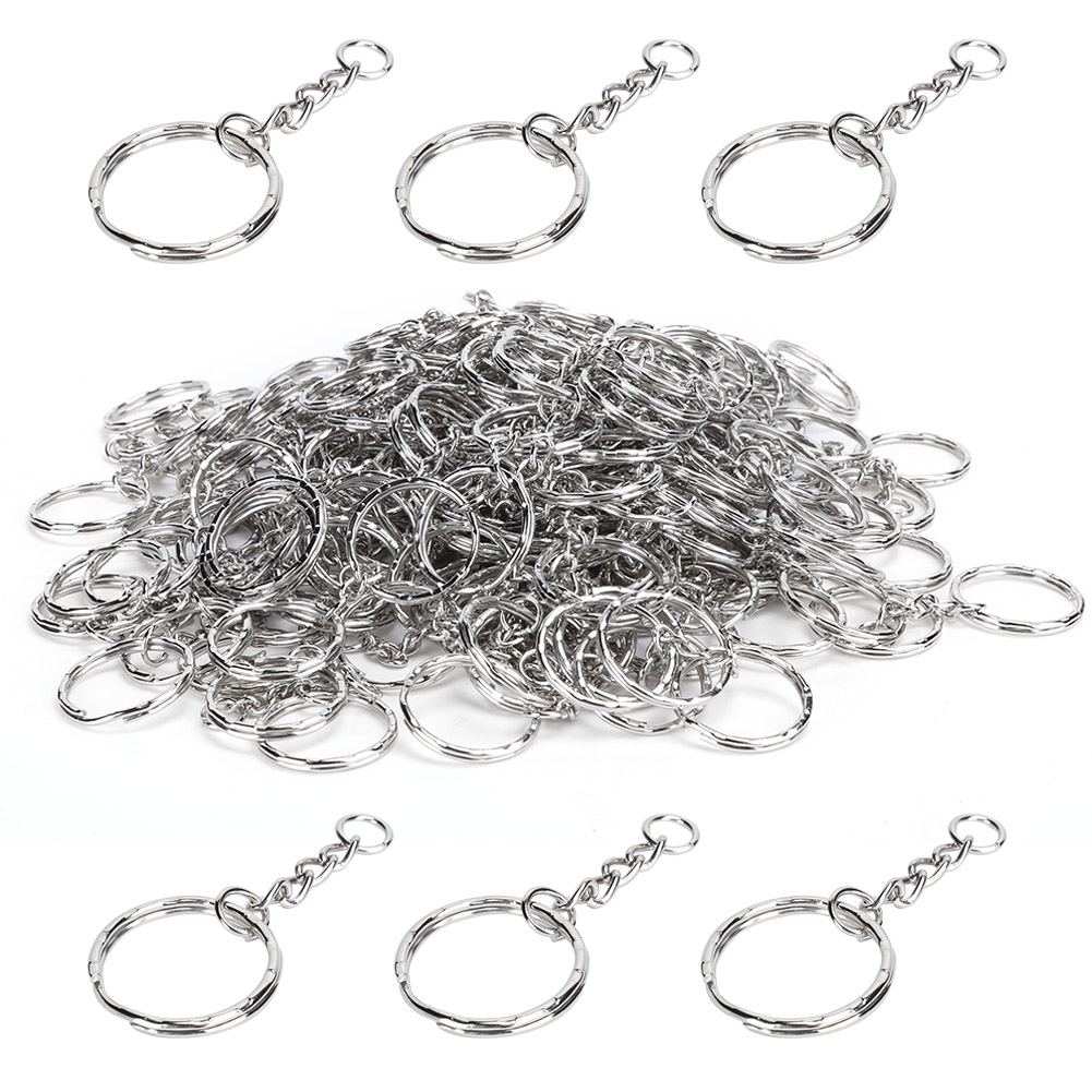 200Pcs Key Ring with Chain Round Keychain Open Jump Ring Zinc Alloy DIY Accessories