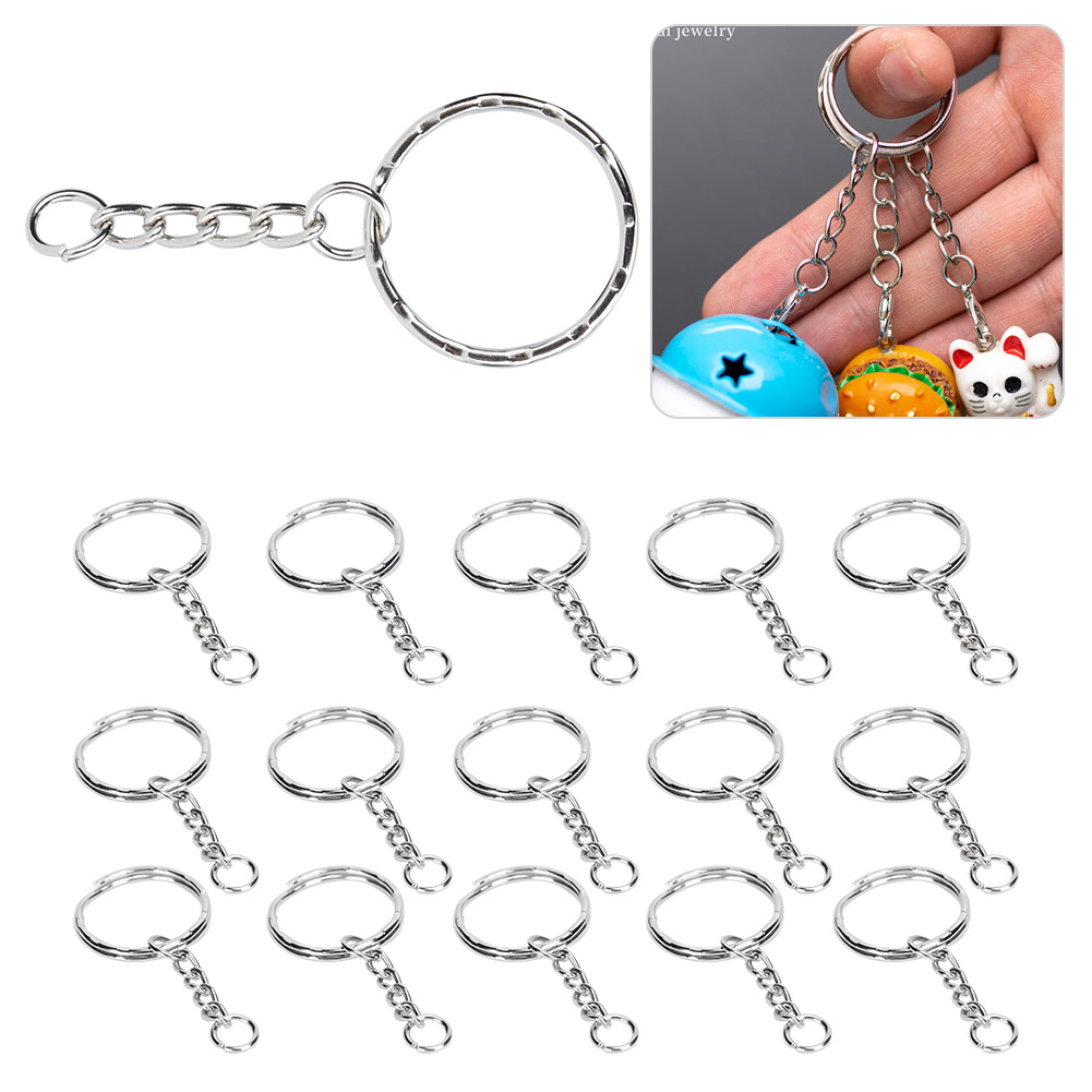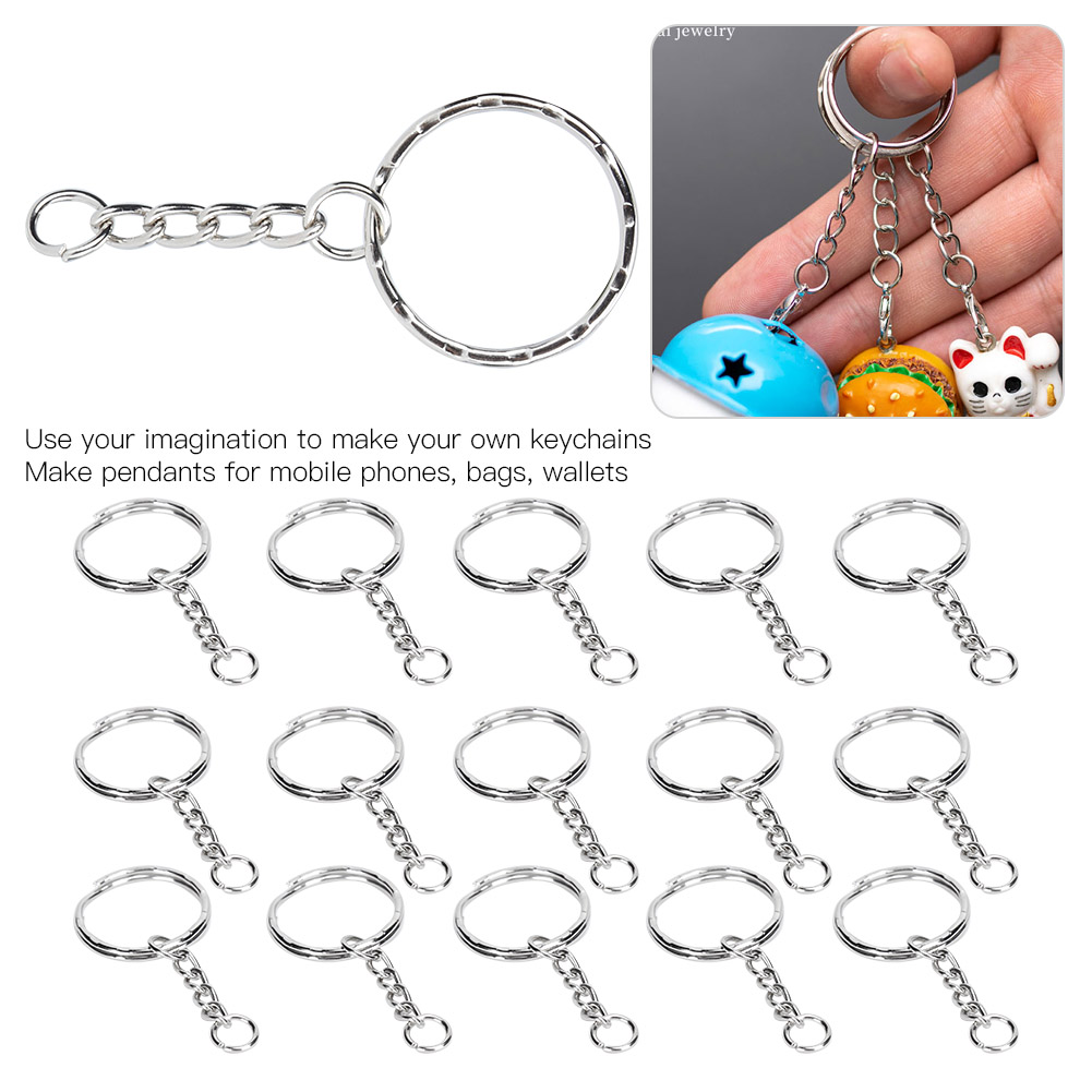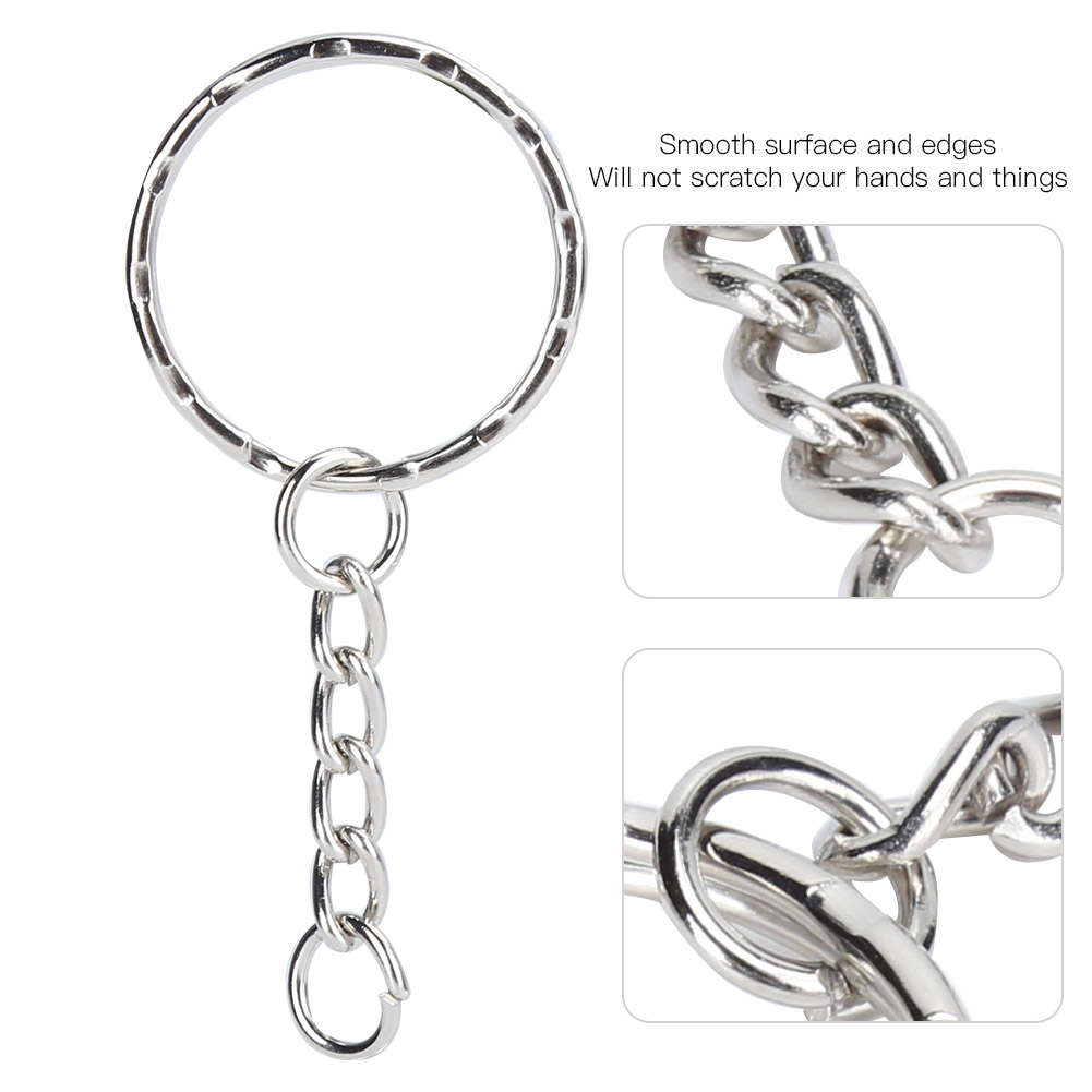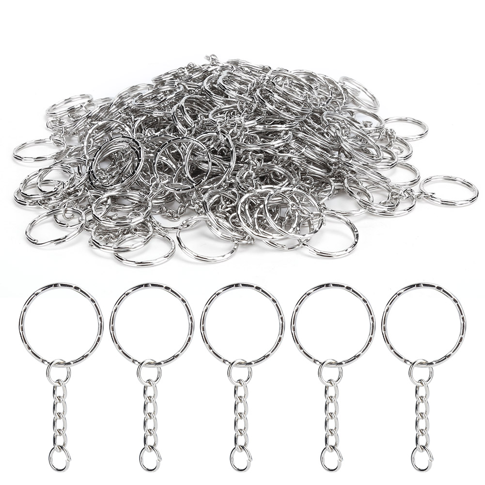 200Pcs Key Ring with Chain Round Keychain Open Jump Ring Zinc Alloy DIY Accessories