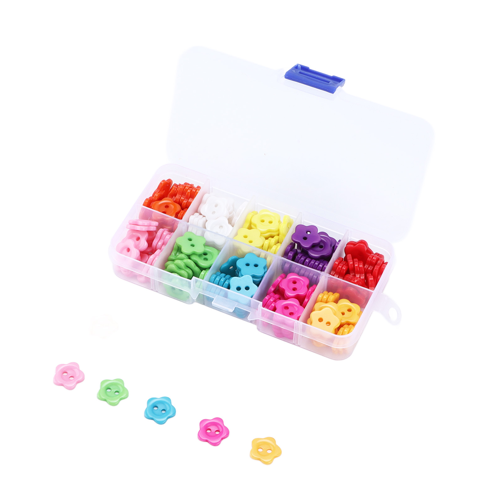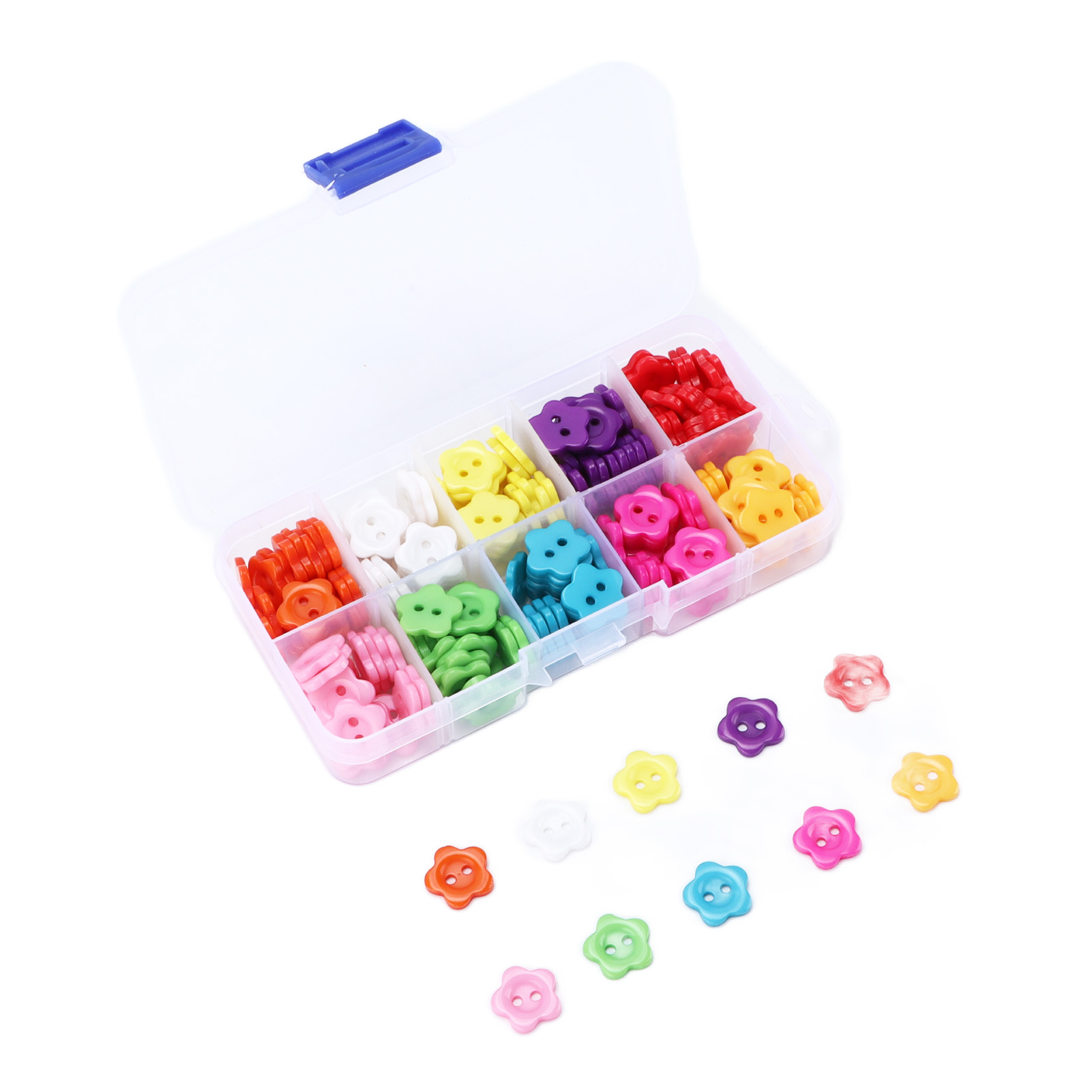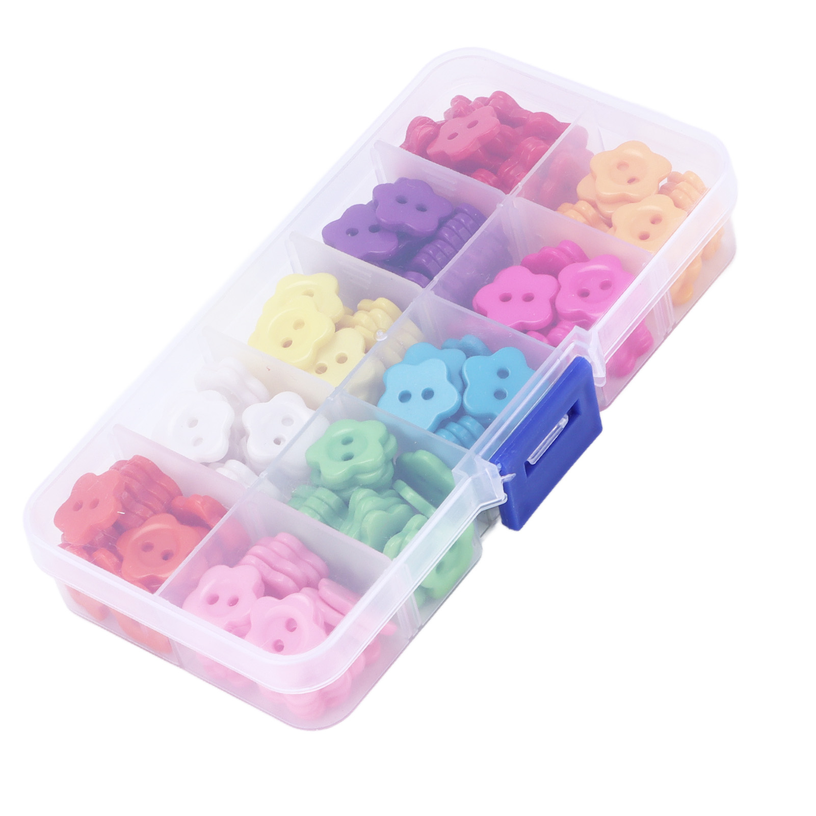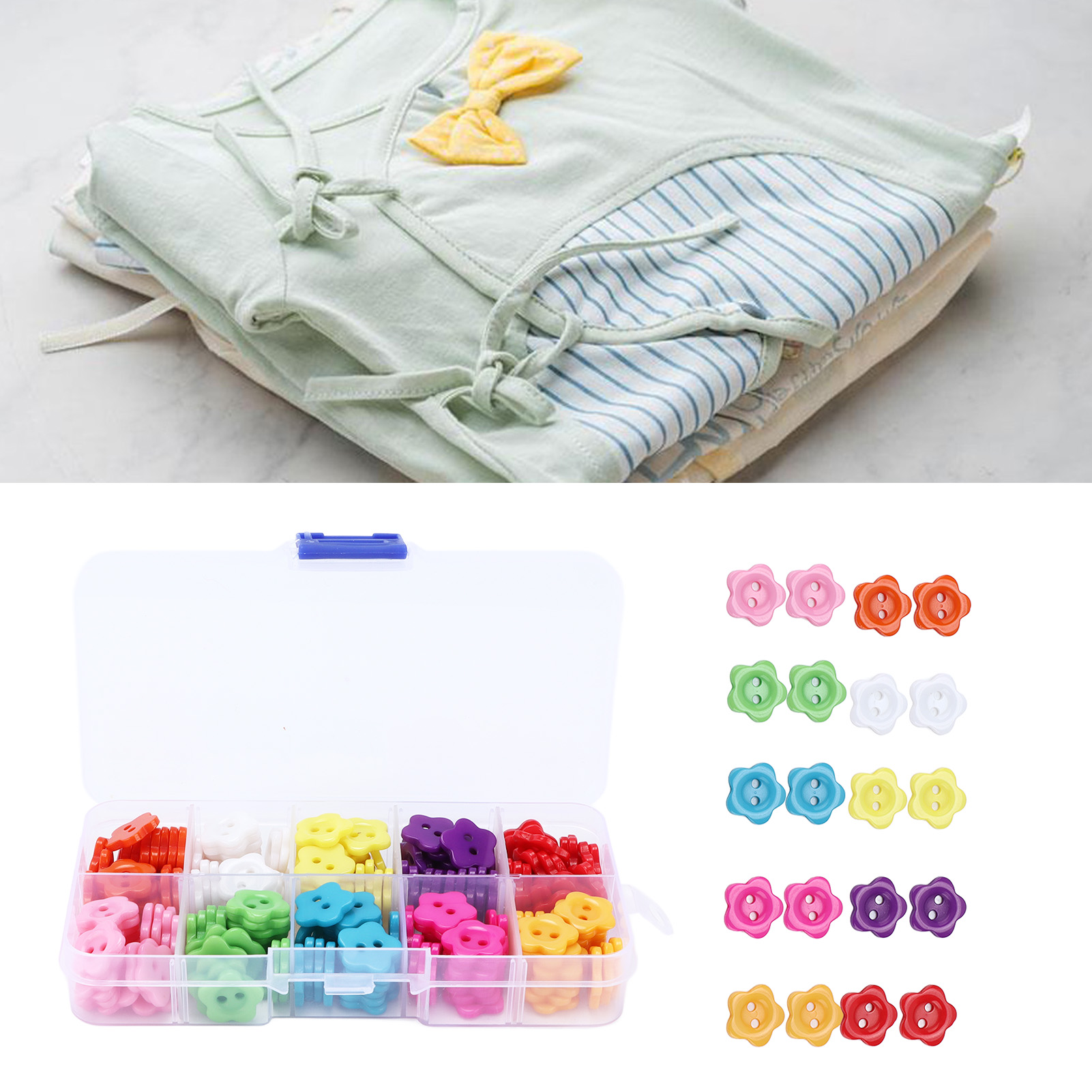 200pcs Sewing Buttons 14mm DIY HandMade FlowerShaped Clothing Accessories with Storage Box