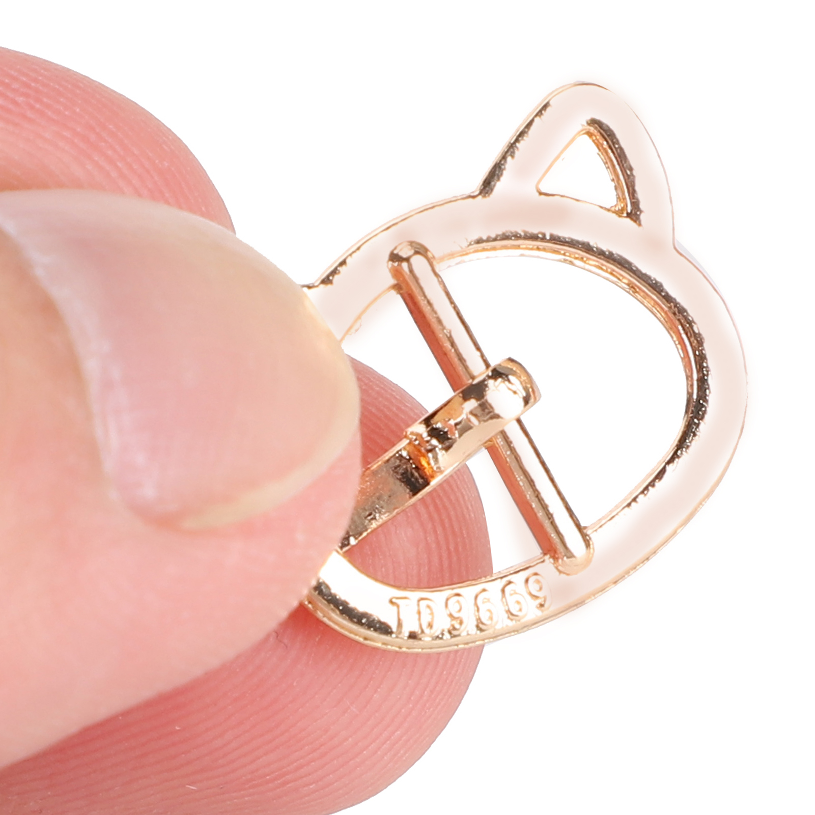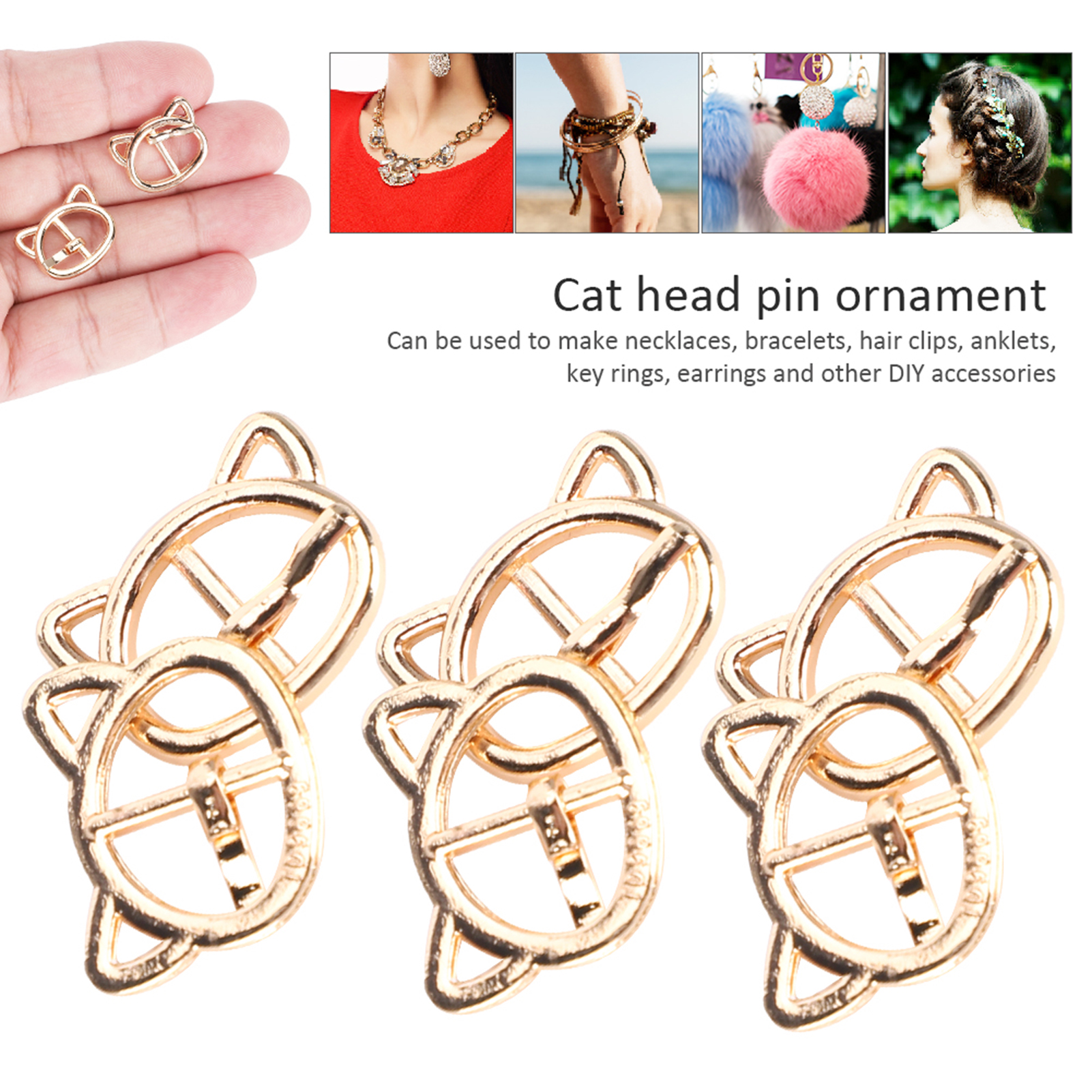 1、Fashionable female buckle accessories are a good gift for your female friends and girls. 2、Can be used to make necklaces, bracelets, hair clips, anklets, key rings, earrings and other DIY accessories. 3、Cat head pins are very attractive.Their cute and fashionable designs are deeply loved by female girls. 4、The gold titanium alloy cat head pin ornament is wear ‑ resistant and fall ‑ proof. 5、Garment accessory, including 20pcs pin buckle of the package to meet your different demands.