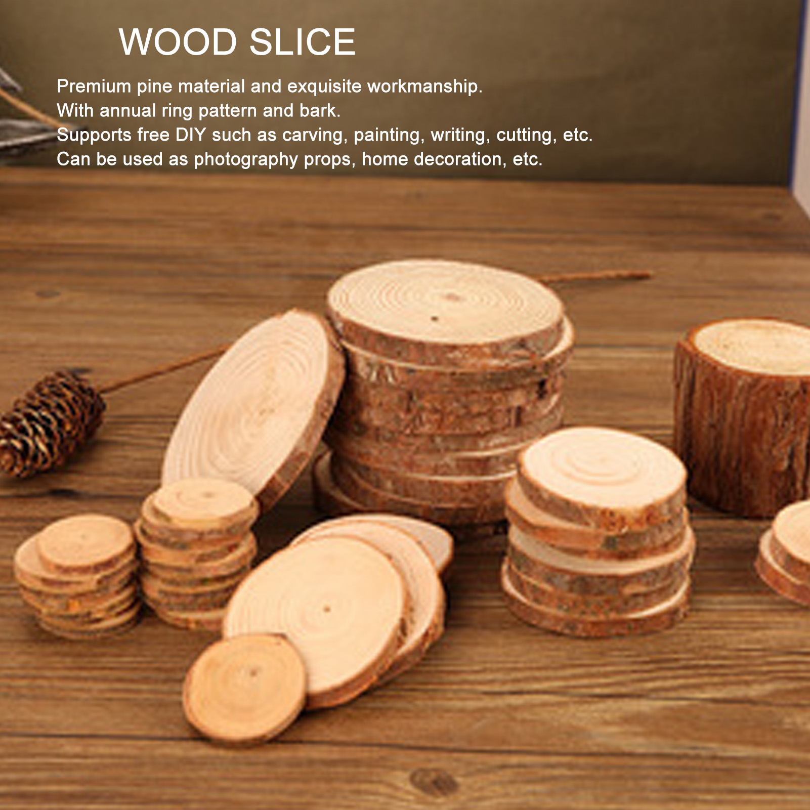 1、Multi Purpose: Wood slices circles is used for diverse, which can be used for photography, furniture coats, DIY graffiti, etc. 2、20 Pieces: There are 20 wood coasters, which are rich in quantity, which can meet a variety of use needs. 3、Pine Wood Materials: Wooden coasters is made of pine materials, thick, durable. 4、Beautiful Practical: It has a strong leisure temperament and has a large city texture, so they are very suitable for daily life. 5、Wide Application: Wooden coasters set is suitable for home, office, cafes, restaurants, etc.