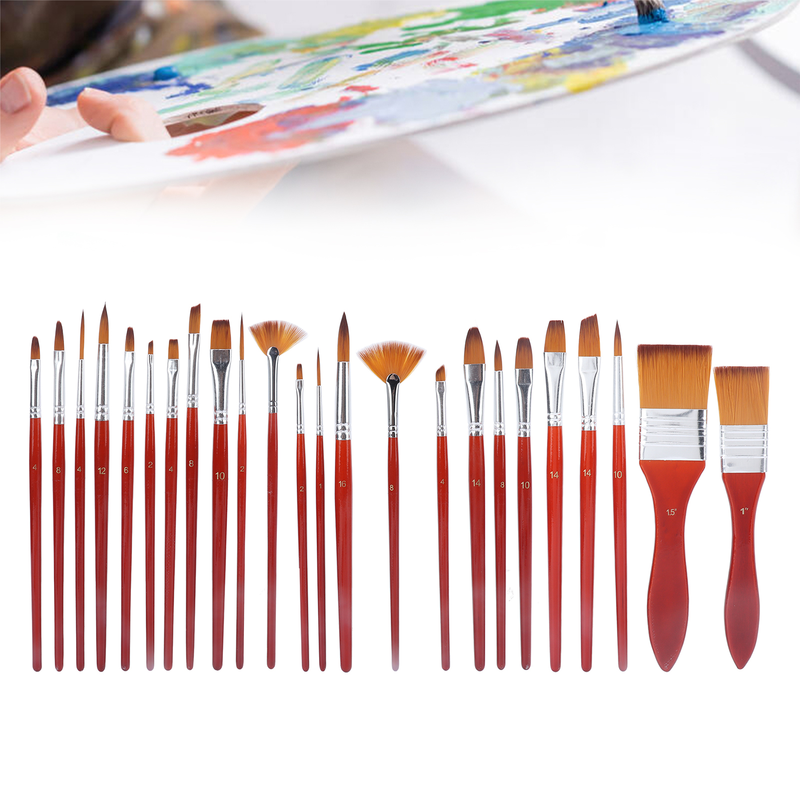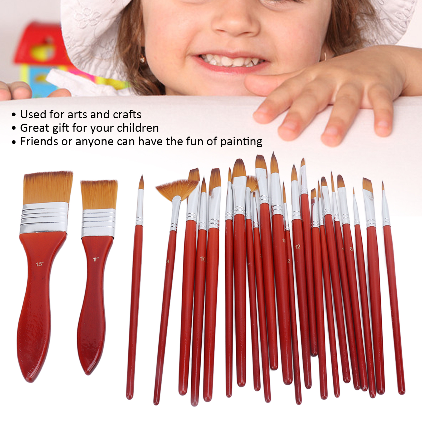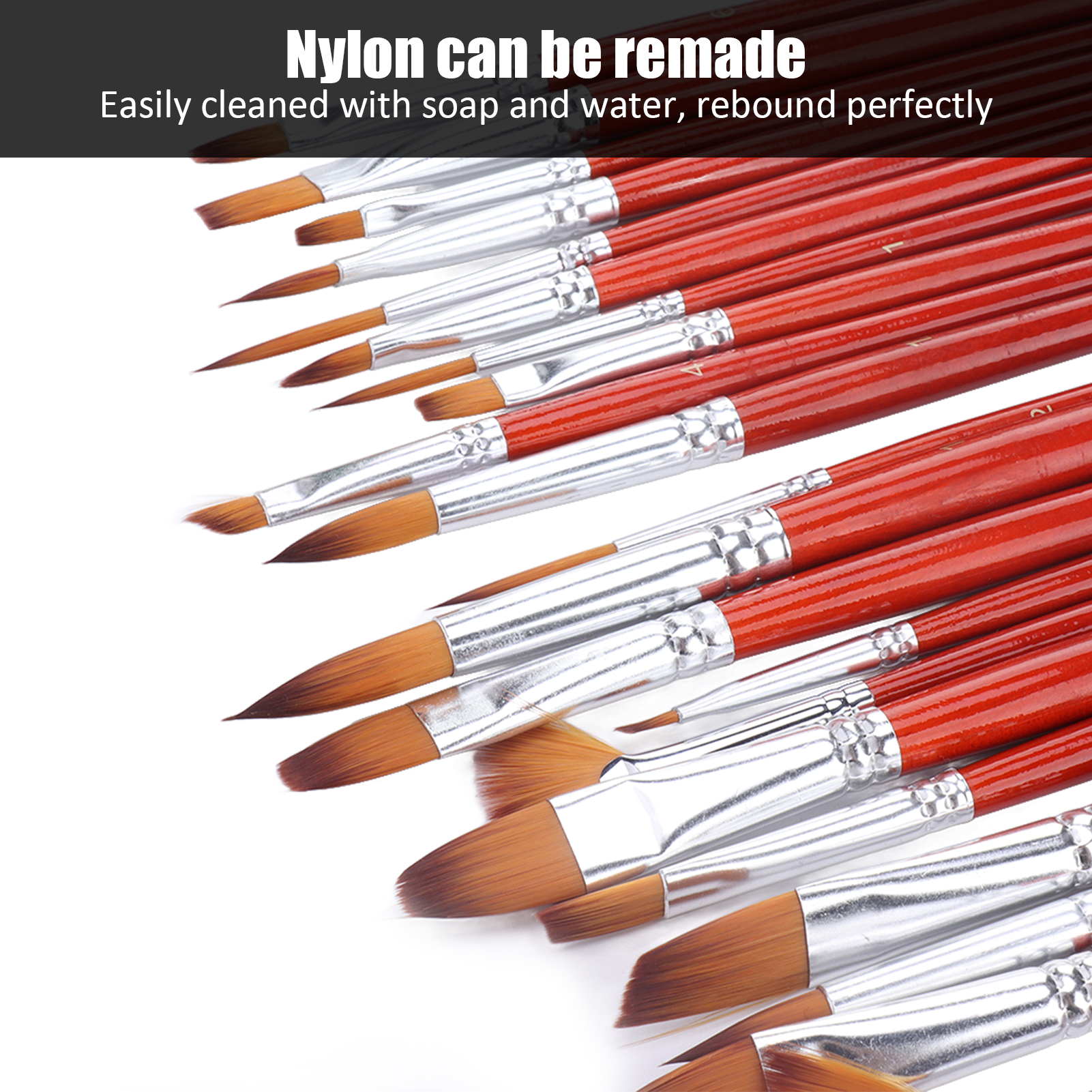 1、EASY TO CLEAN AND HAIR RESHAPING: Nylon can be remade, every time after you stroke, the brush can be easily cleaned with soap and water, and will rebound perfectly 2、MULTI SCENE USE: Suitable for watercolor oil painting, acrylic painting; body, nail art, facial painting; miniature, model, ceramics, craft art coloring, etc. 3、SHORT WOODEN HANDLE: The short wooden handle ensures smooth processing, perfection and better control of small details. This artist brush set is suitable for all media 4、QUALITY VALUE SET: Used for arts and crafts, great gift for your children, so that friends or anyone can have the fun of painting 5、SUPERIOR PERFORMANCE: Basic art supplies, possess soft and flexible hair, moderate elasticity, good adsorption, and comfortable holding