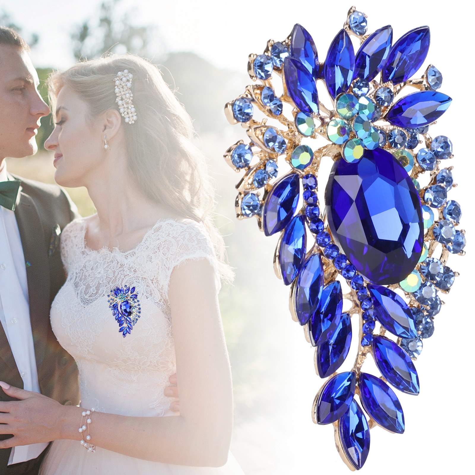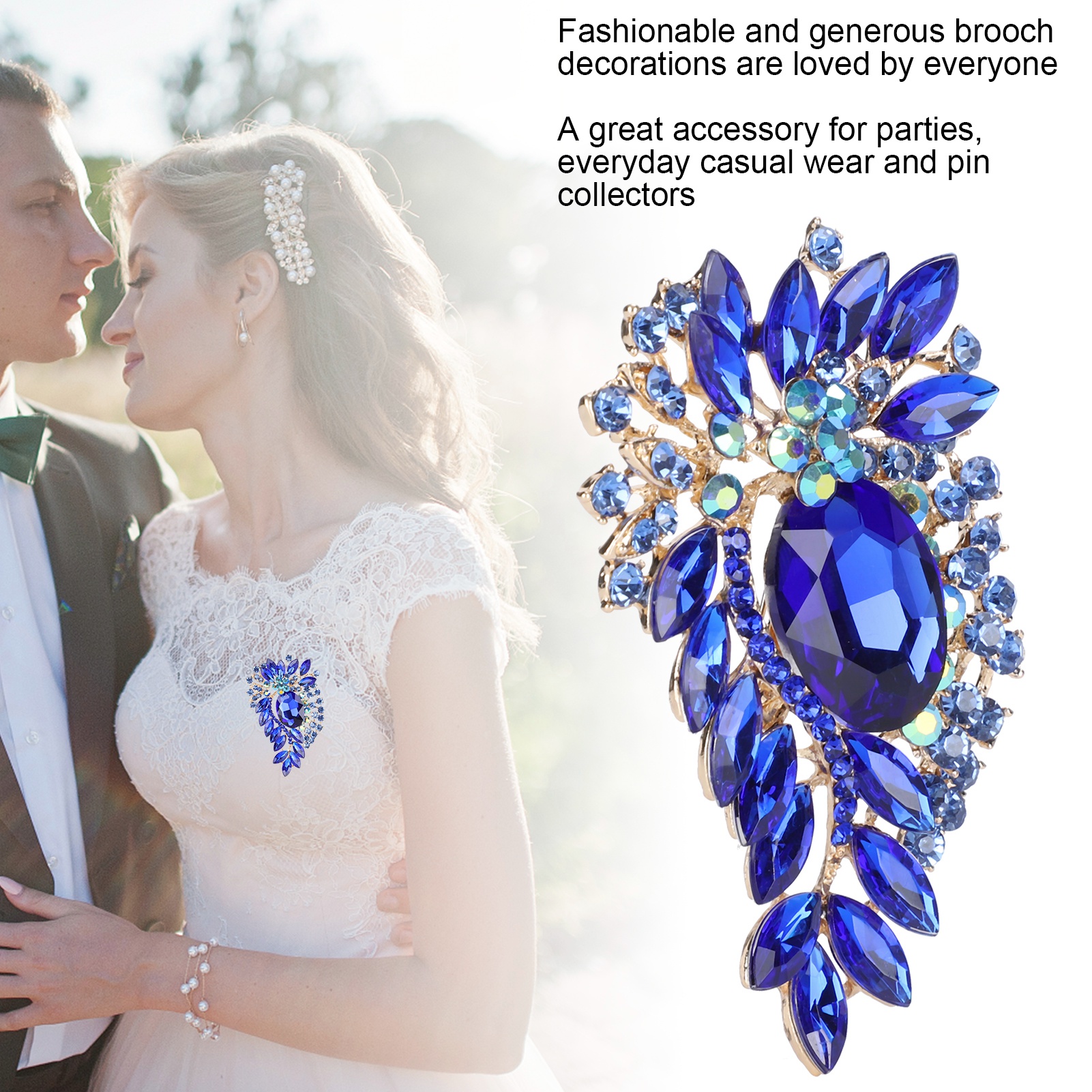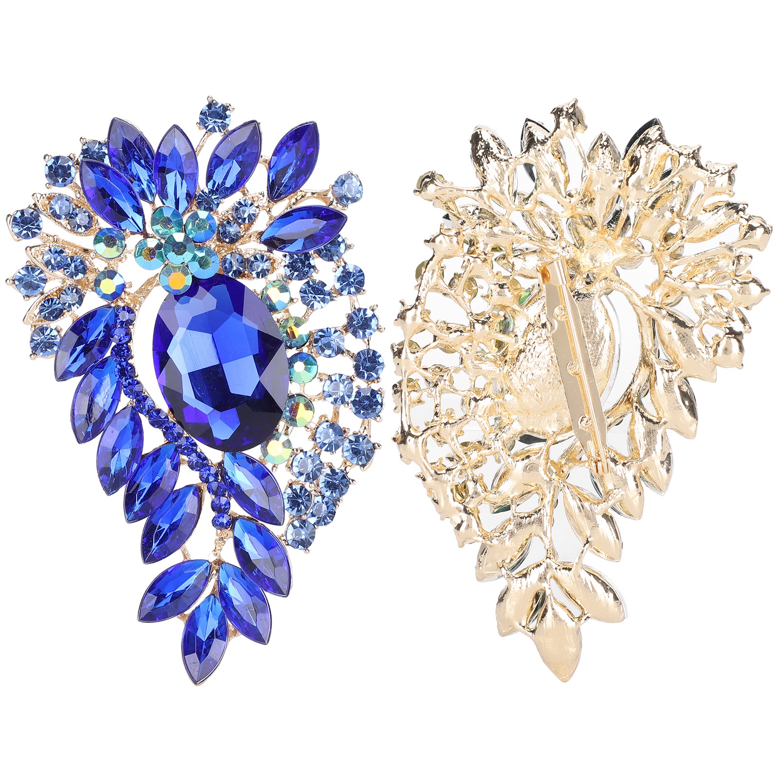 2Pcs Corsage Brooch Fashion Retro Exquisite Alloy Pins Applique Clothing AccessoriesBlue