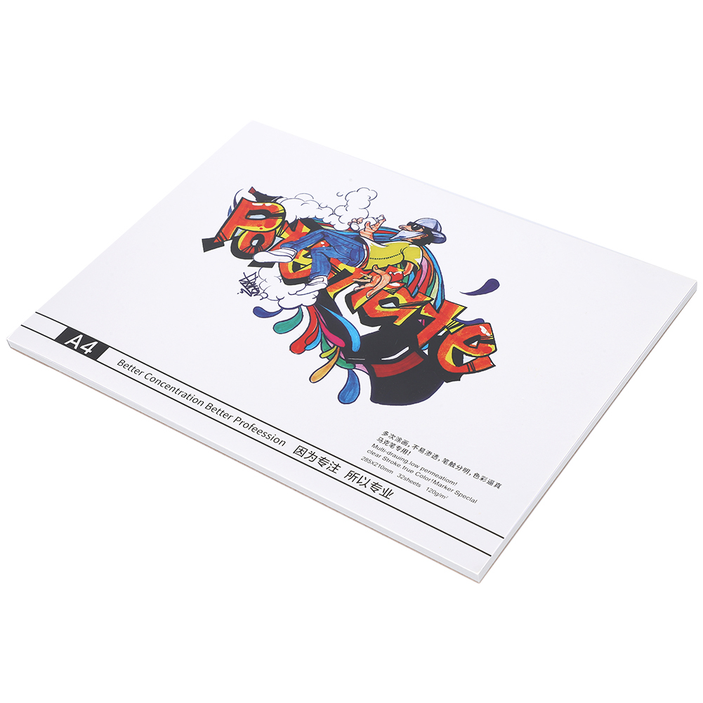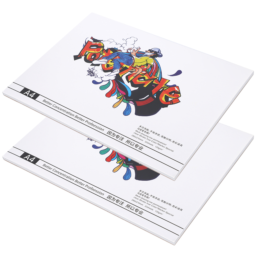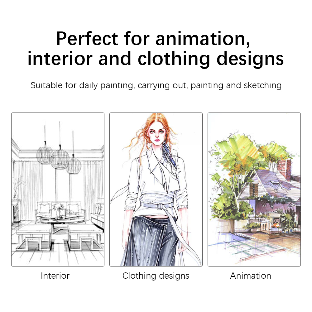 Function: The paper layer contains waterproof material, the back of the paper is impervious, can be painted multiple times, the clear brush strokes can be painted on both sides, and the colors are bright. The choice of animation, interior, clothing designs, etc., suitable for daily painting, carry out, painting and sketching.