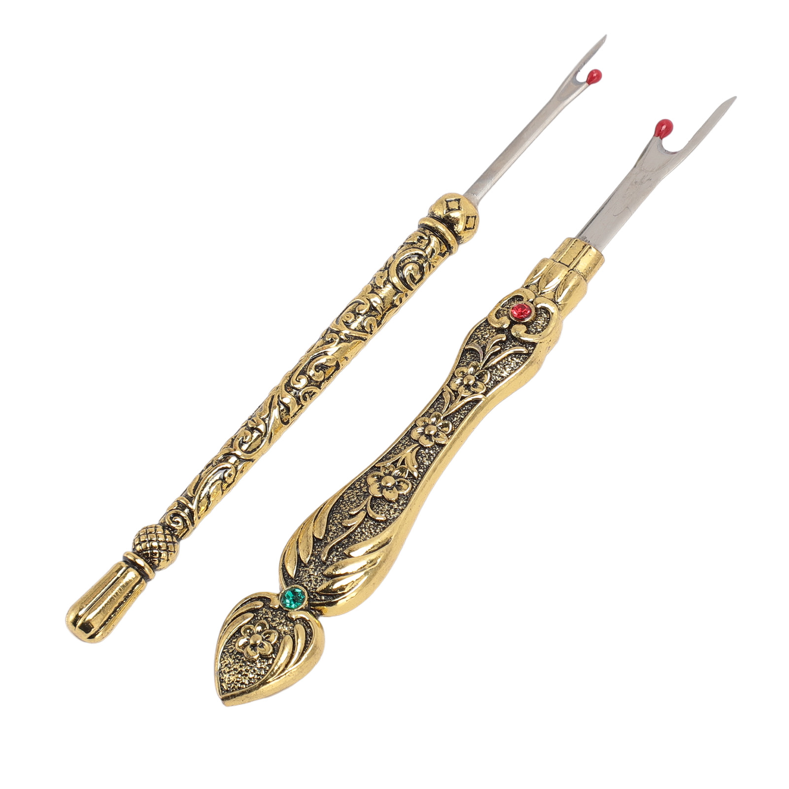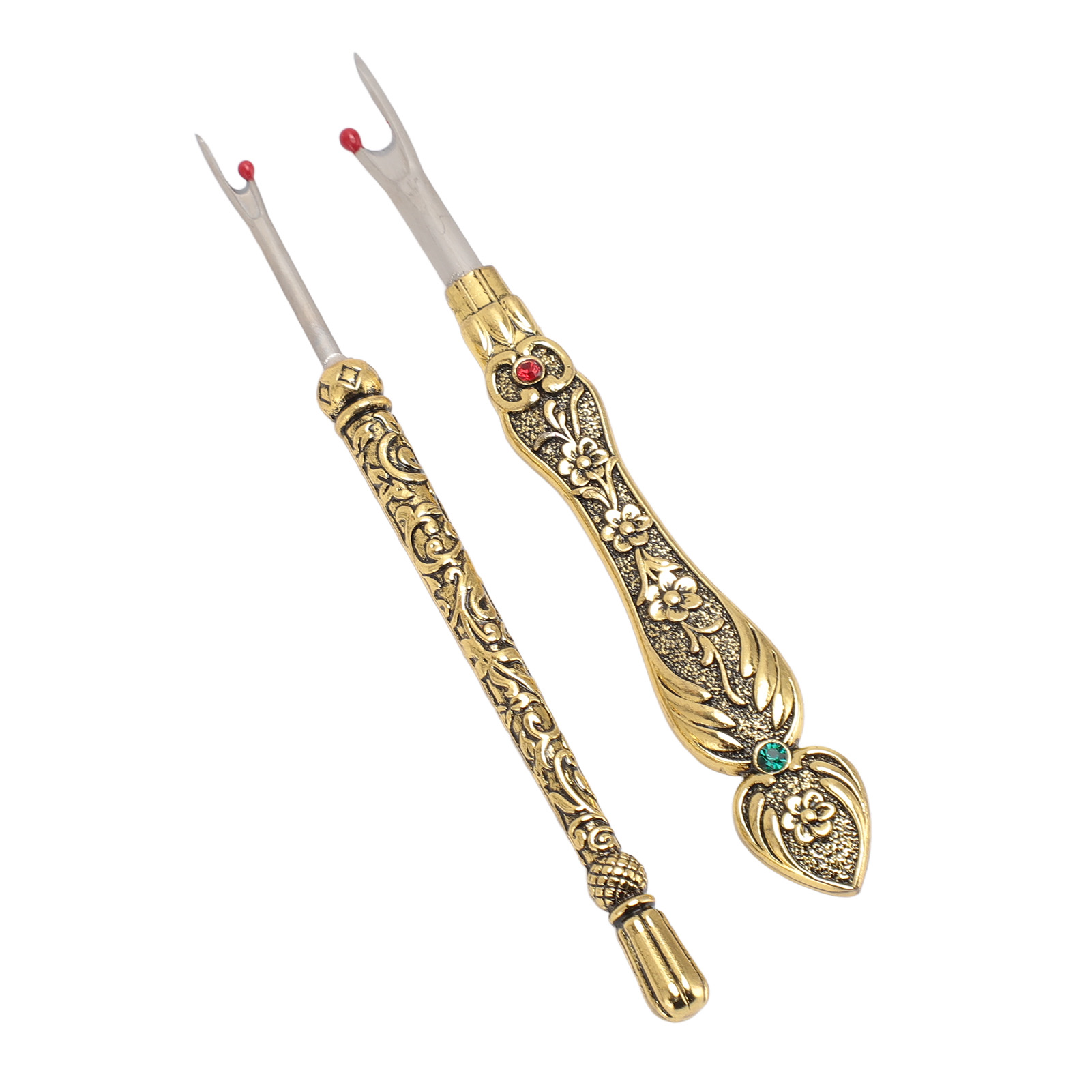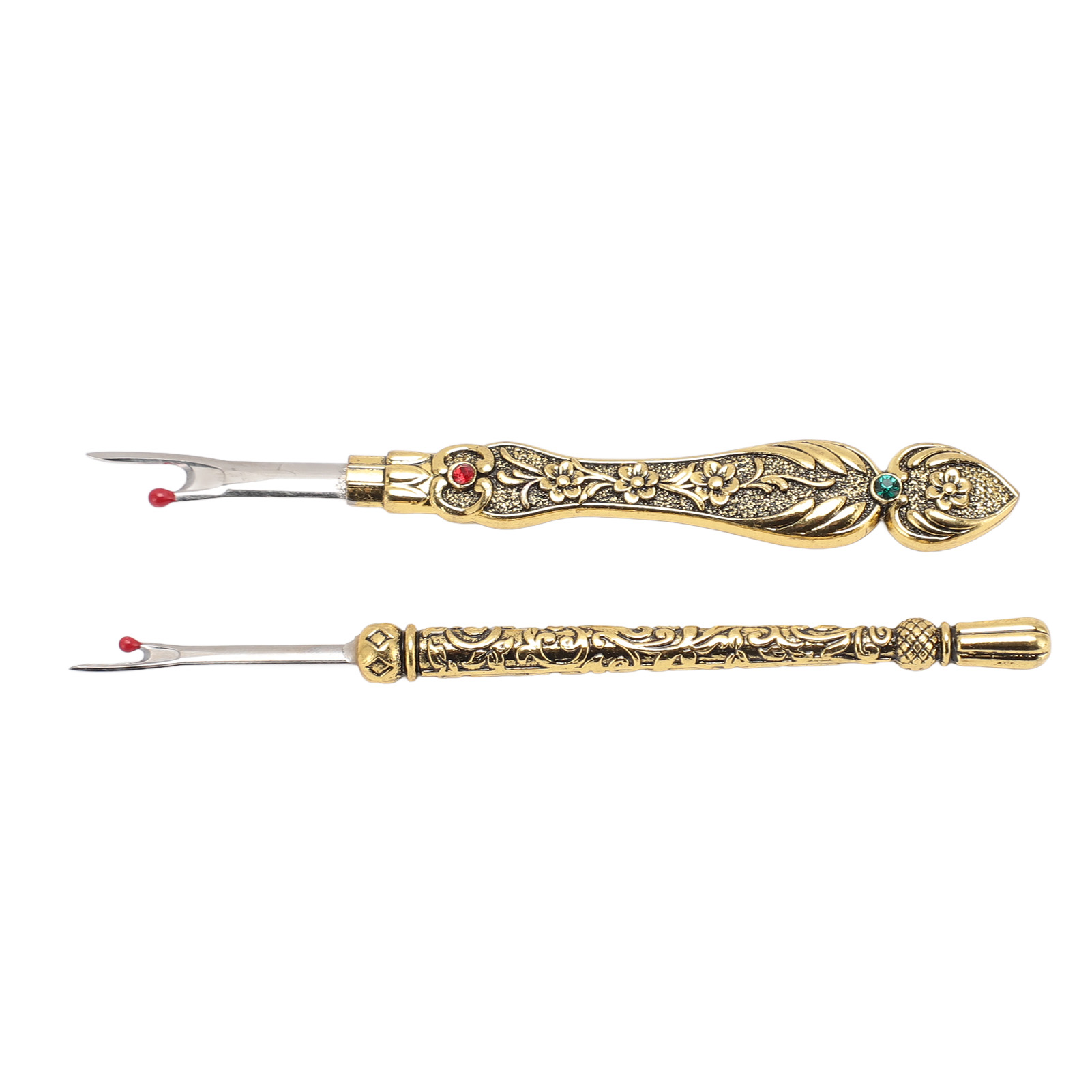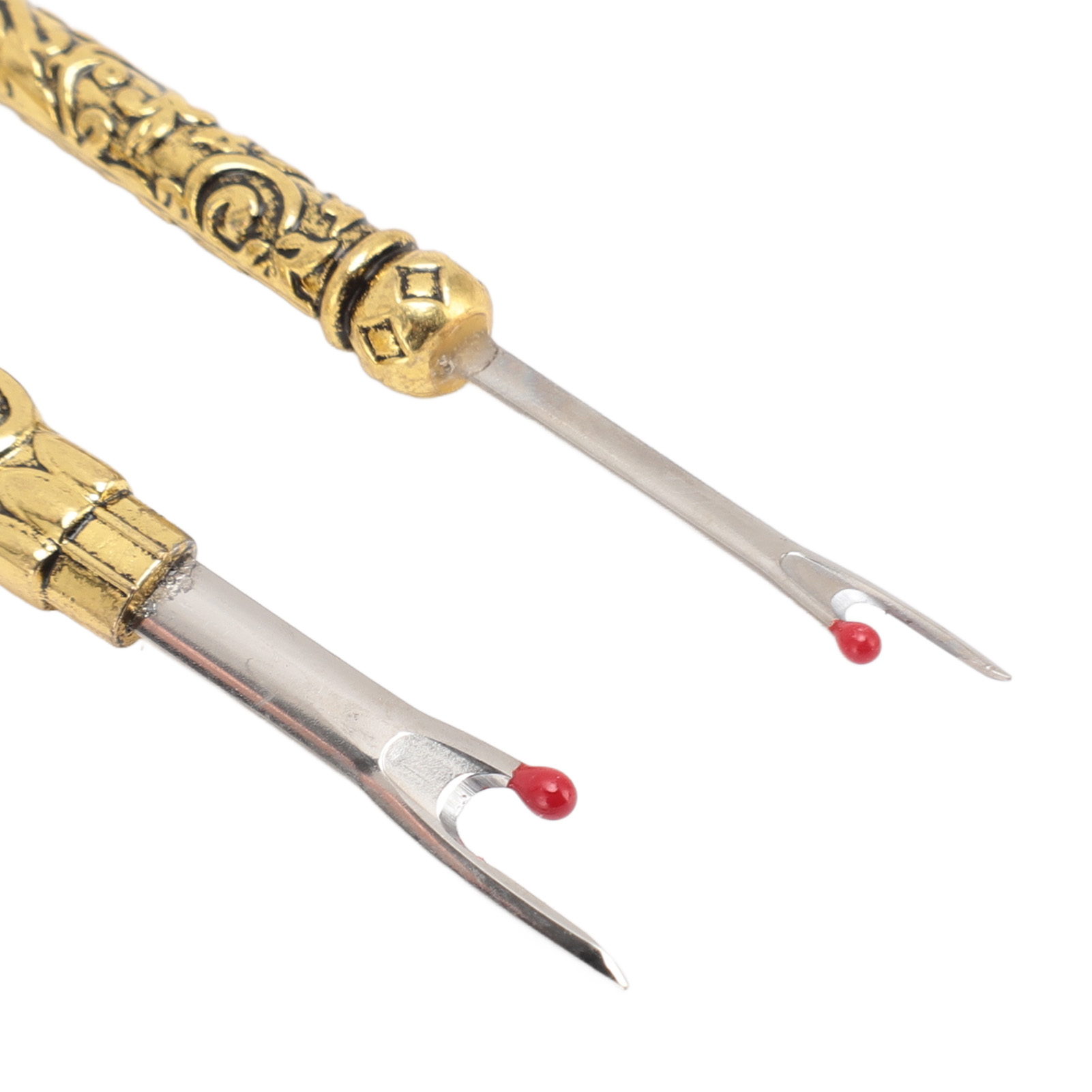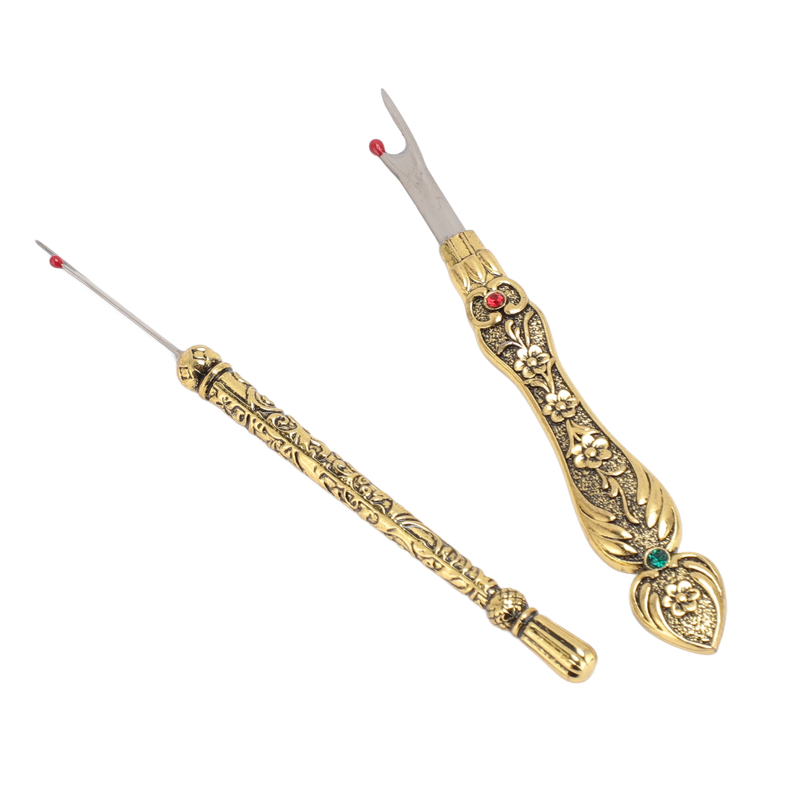 1、EASY TO REMOVE: Not only is it easy to use, but it also has an easy to grip and comfortable handle that makes it super simple to remove stitches quickly and easily. 2、VINTAGE DESIGN: The Seam remover tool features a vintage design with an exquisitely detailed 3D pattern on the handle, which is not only practical but also a lovely addition to your sewing collection. 3、SAFE TO USE: The Thread remover has a mini red ball on the end to defend the fabric from accidental damage. 4、CONVENIENT TOOL: Hand stitch remover is a handy tool for trimming threads, removing buttons, opening buttonholes and removing seams, it can handle any sewing task, allowing you to easily fix or make any sewing project. 5、WIDE APPLICATIONS: Vintage sewing seam remover is suitable for a wide range of applications including needlework, sewing, leatherwork and DIY crafts. This is a must have tool for any sewing enthusiast.