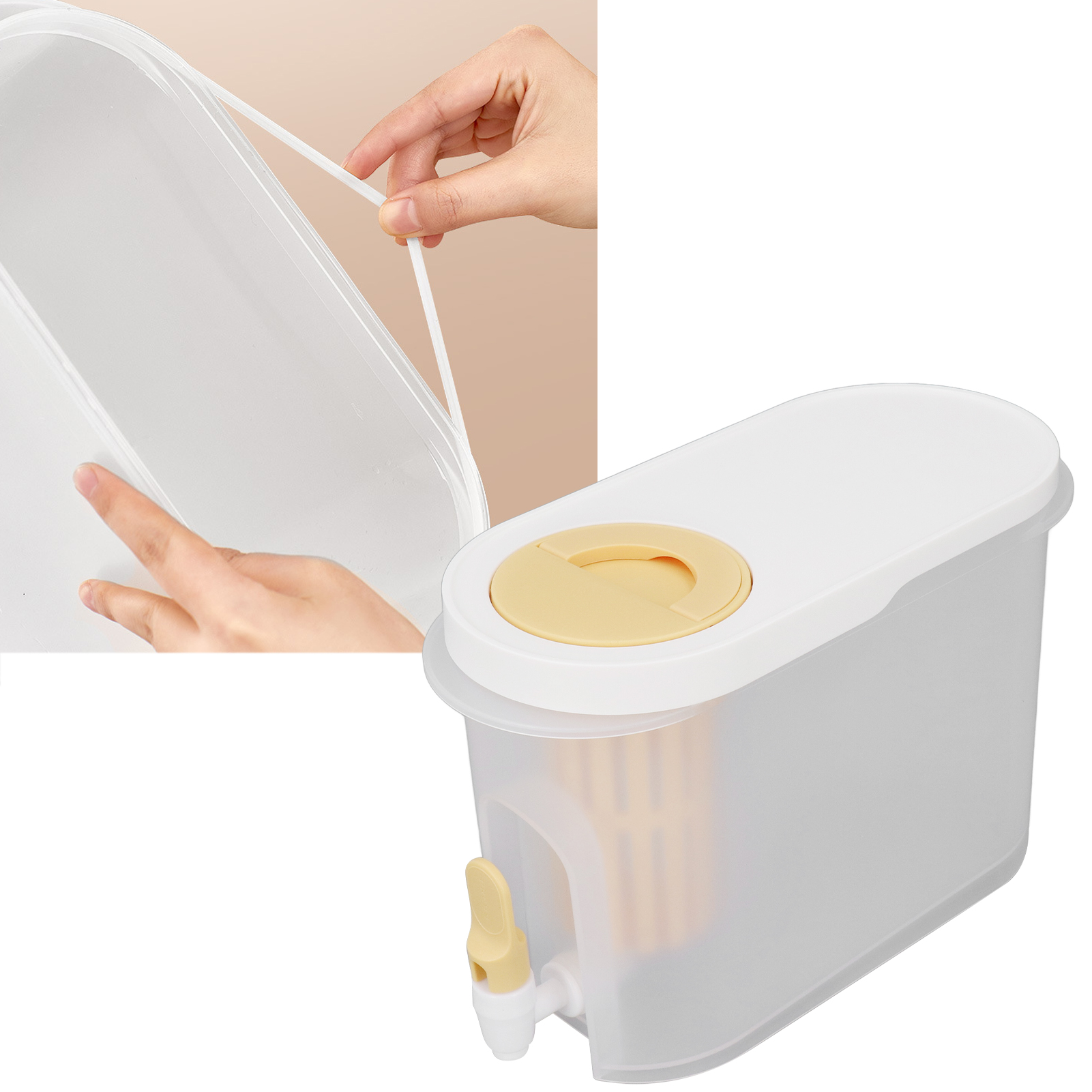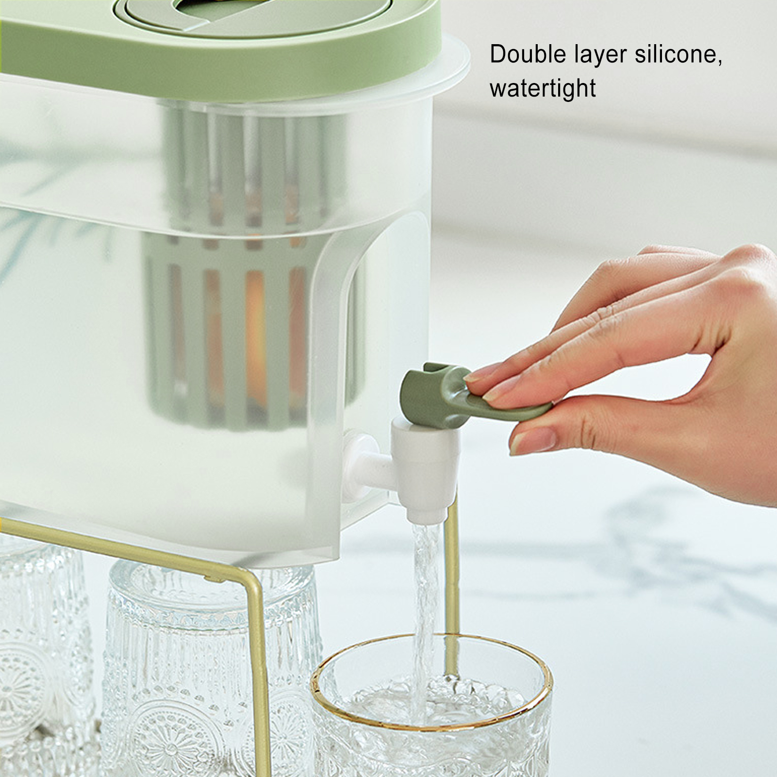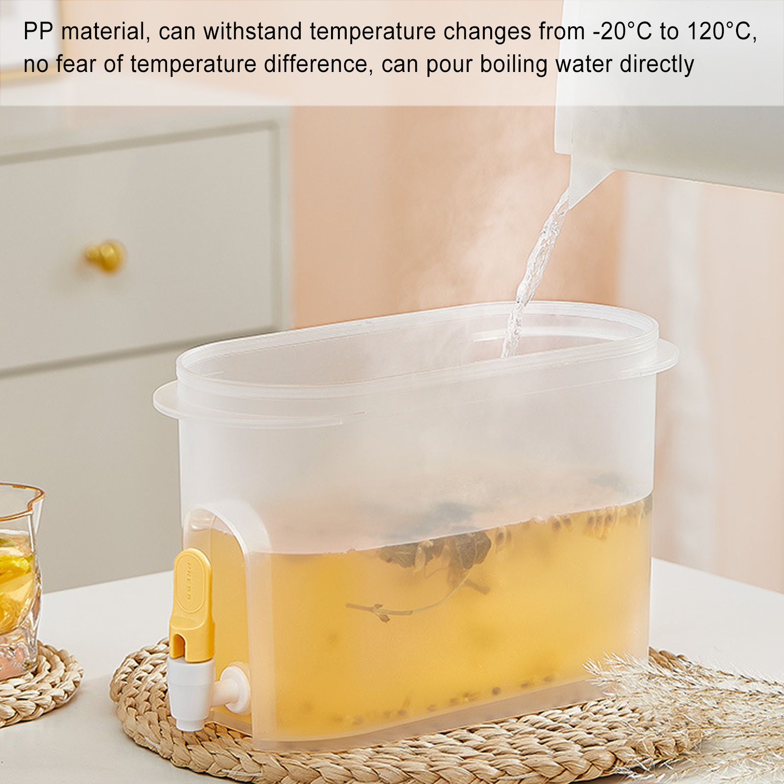 1、Large Capacity: Plastic cold kettle 3.9L increased capacity, filled once, equivalent to 18 cups of water, easily meet the drinking water needs of the whole family (about 250ml per cup of water). 2、Double Filtration: 3.9L water jug with faucet adopts double filtration design, which can effectively filter fruit residues, reduce clogging, press the faucet, and it is more convenient to use. 3、Space Saving: Cold kettle adopts a narrow body design, which saves space and can be used as an exclusive water dispenser in the refrigerator. Reasonable slope design, inclined bottom surfaces, easy to drain. 4、PP Material: 3.9L cold kettle with faucet is made of PP material, which can withstand temperature changes from ‑20°C to 120°C without fear of temperature difference, and can directly pour boiling water. 5、Silicone Rings: The drink dispenser is equipped with a double layer silicone ring, and the upper cover has a silicone ring, which has dual functions of locking the taste and keeping it brisk, and keeps it in the refrigerator without odor.