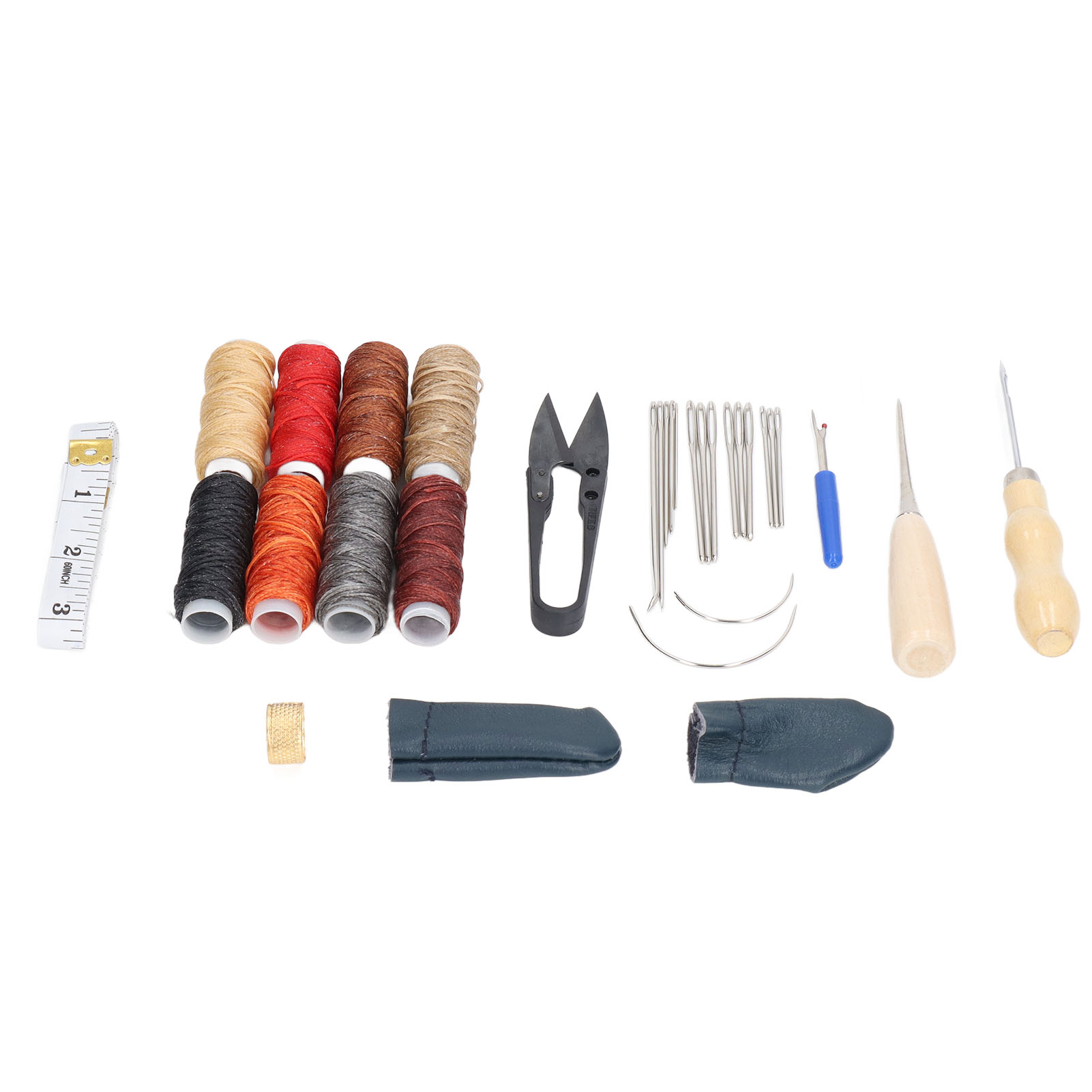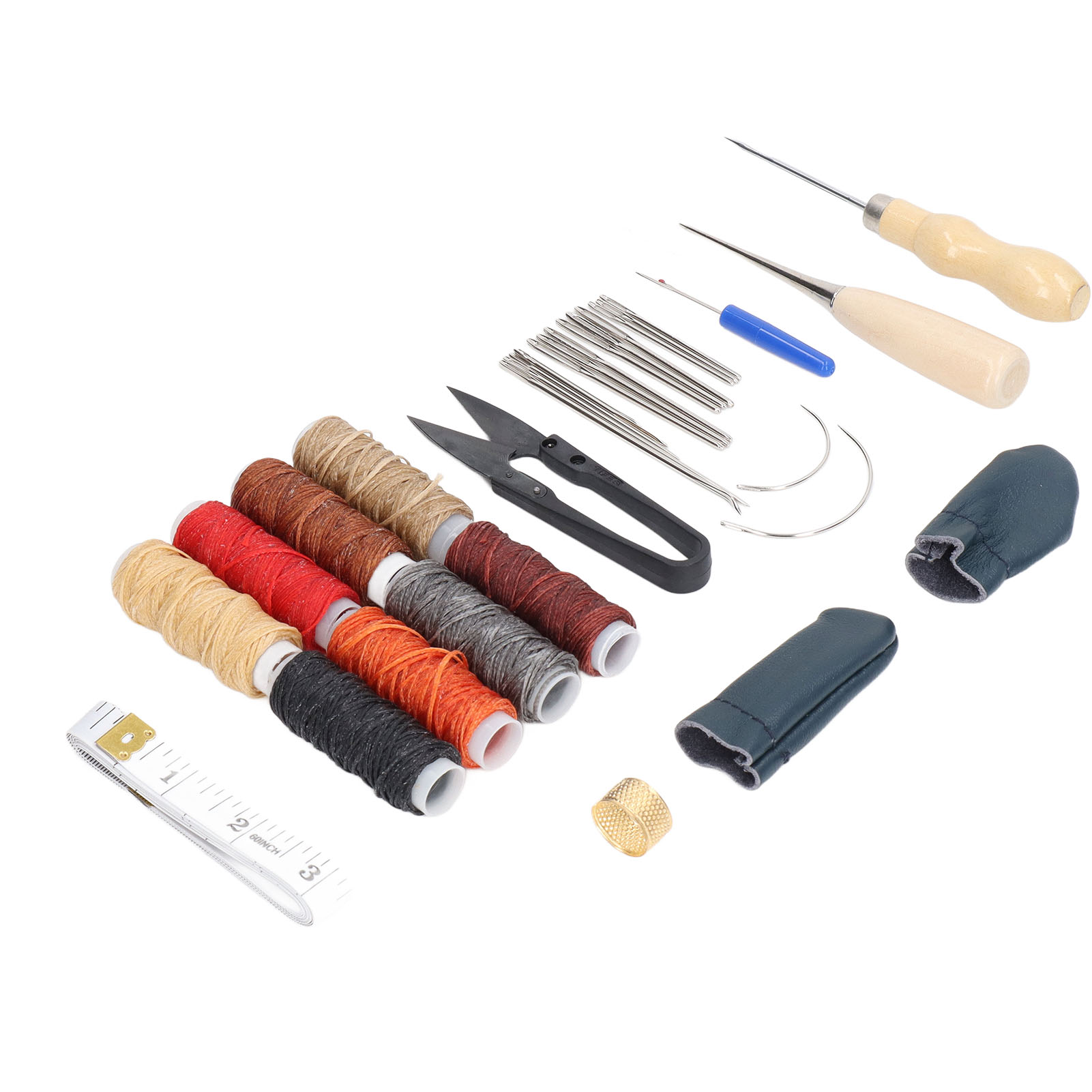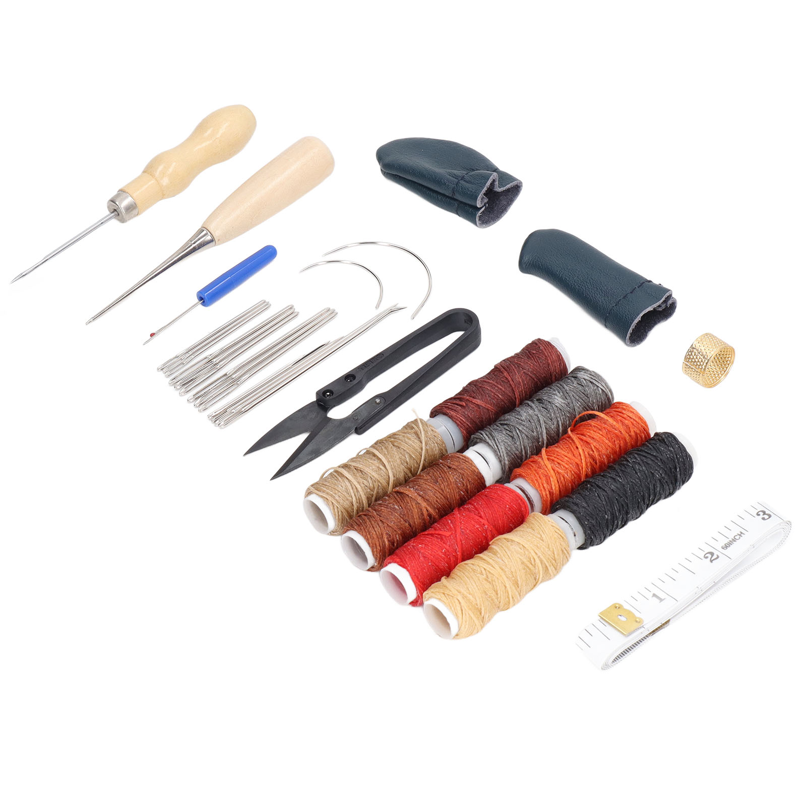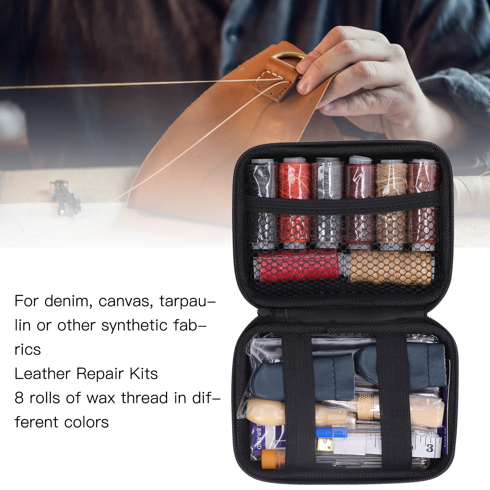 1、All in One Leather Kit: This kit is all you need for your leather crafting needs. It has a set of essential tools with all the necessary accessories and sewing supplies for leather crafts and repairs. 2、DIY Projects: With this all in one sewing supplies and accessories, you can do all kinds of DIY projects. You can use it not only on leather but also on any other fabric such as denim, canvas, tarpaulin or other synthetic fabrics. 3、Leather Repair Kits: For carpets, coats, mattresses, and even tents. Make your beloved leather furniture and other sensual items last longer. 4、8 Rolls of Wax Thread in Different Colors: Wine red, khaki, black, silver, dark coffee, light coffee, dark khaki, orange; size: 50m long; can match more colors of leather and fabric. 5、Multipurpose: Suitable for basic stamping sets, suitable for beginners and skilled. It is the perfect choice for small gifts for parents, family, friends, especially DIY hand sewing lovers.