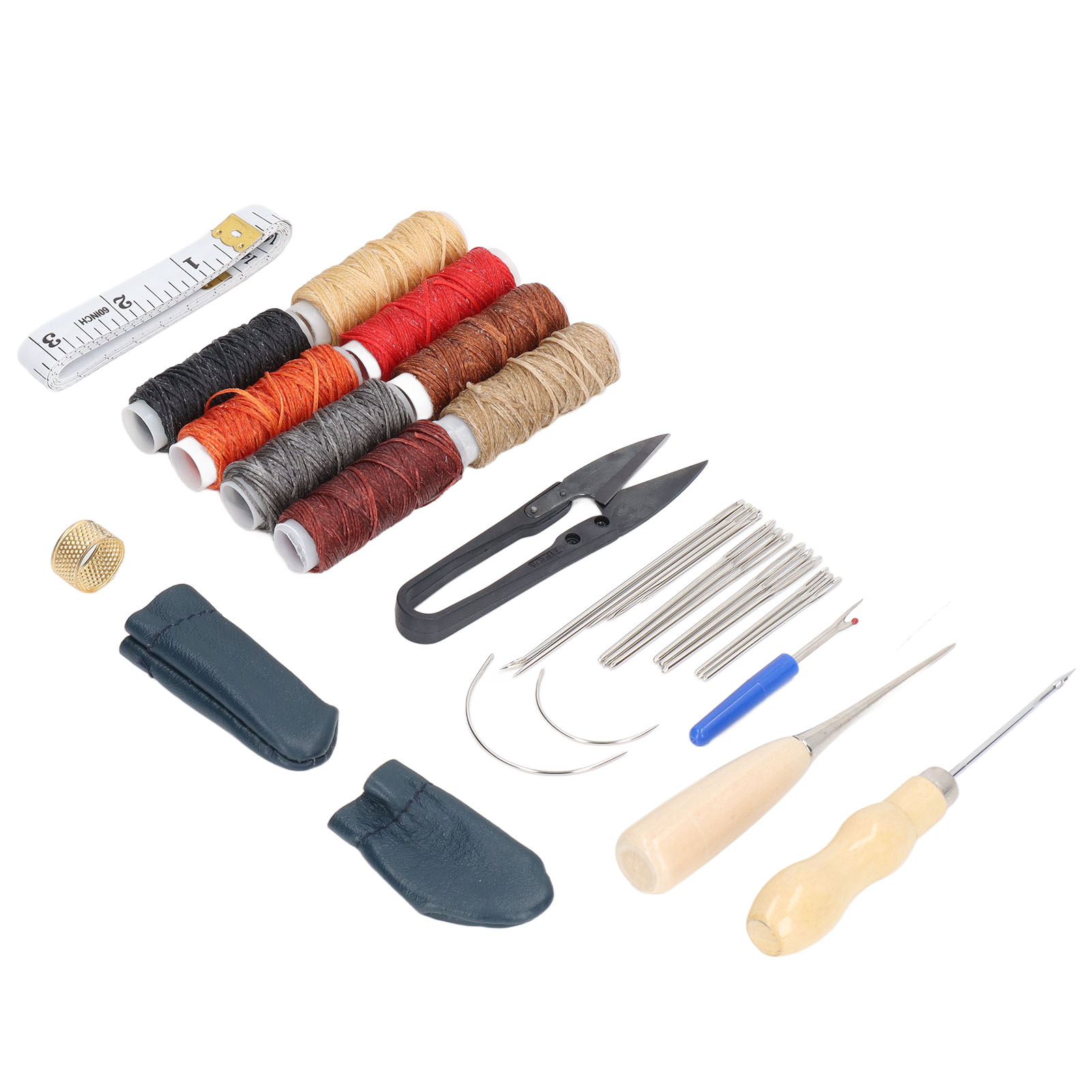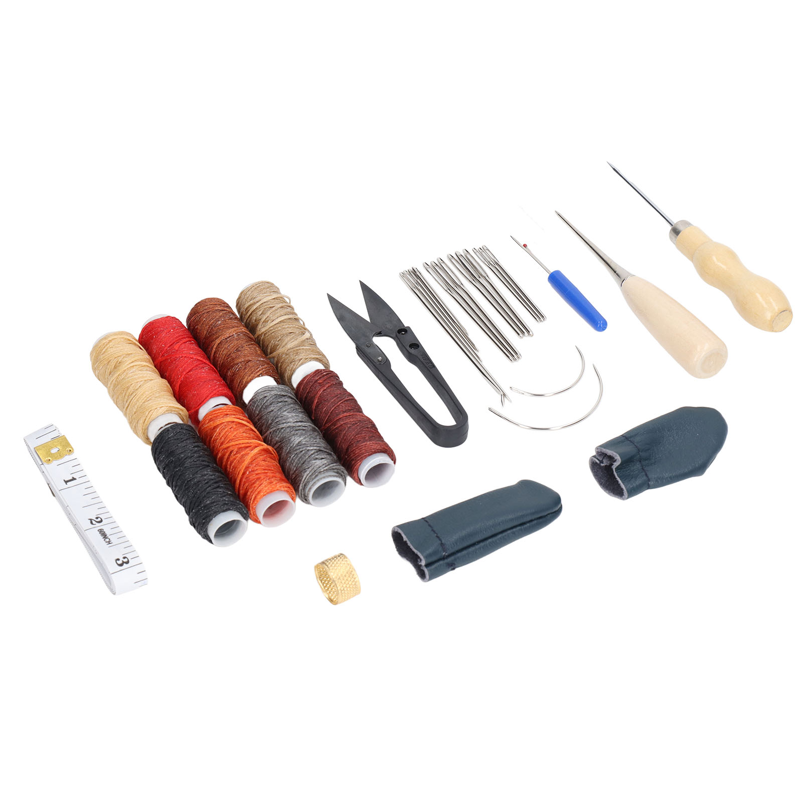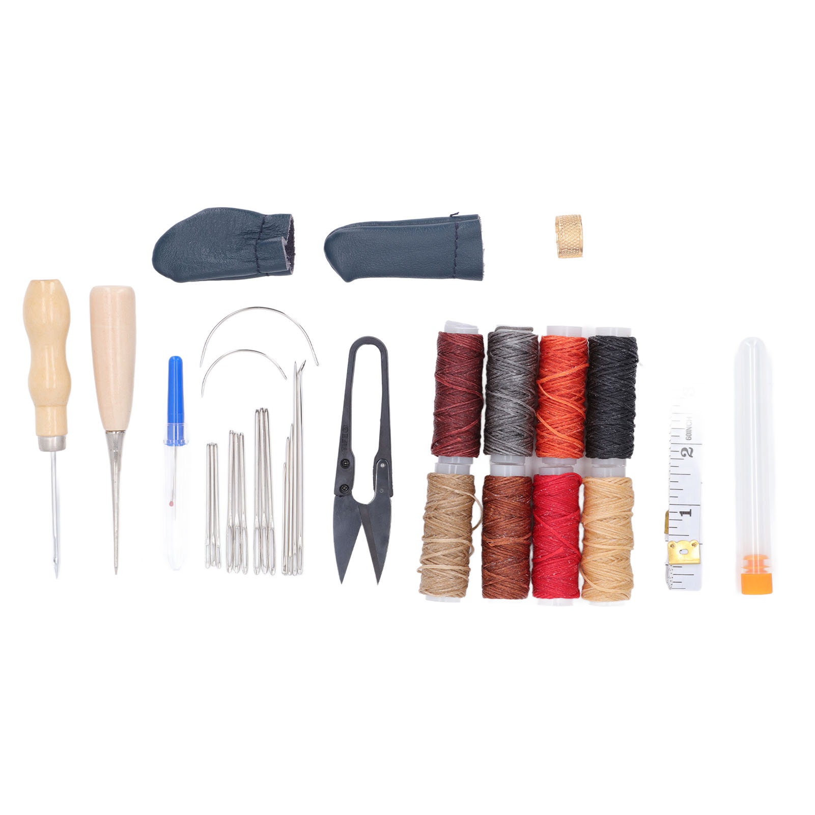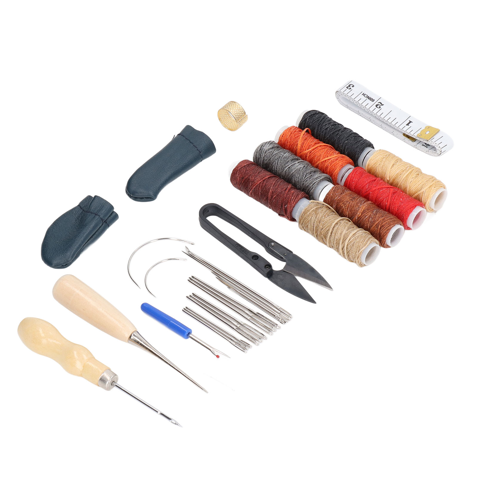 1、All in One Leather Kit: This kit is all you need for your leather crafting needs. It has a set of essential tools with all the necessary accessories and sewing supplies for leather crafts and repairs. 2、DIY Projects: With this all in one sewing supplies and accessories, you can do all kinds of DIY projects. You can use it not only on leather but also on any other fabric such as denim, canvas, tarpaulin or other synthetic fabrics. 3、Leather Repair Kits: For carpets, coats, mattresses, and even tents. Make your beloved leather furniture and other sensual items last longer. 4、8 Rolls of Wax Thread in Different Colors: Wine red, khaki, black, silver, dark coffee, light coffee, dark khaki, orange; size: 50m long; can match more colors of leather and fabric. 5、Multipurpose: Suitable for basic stamping sets, suitable for beginners and skilled. It is the perfect choice for small gifts for parents, family, friends, especially DIY hand sewing lovers.