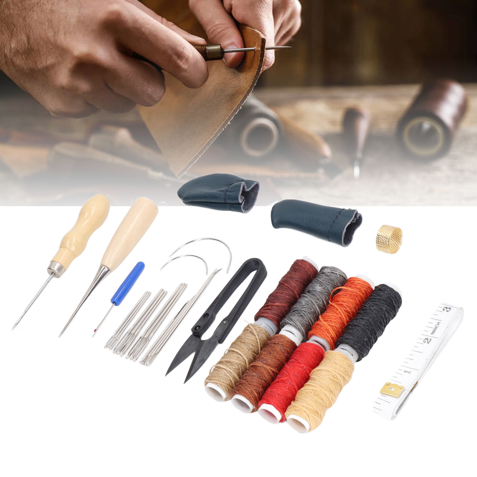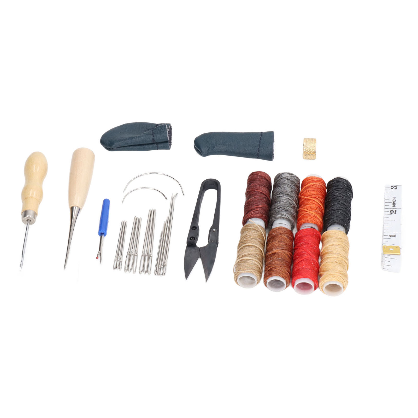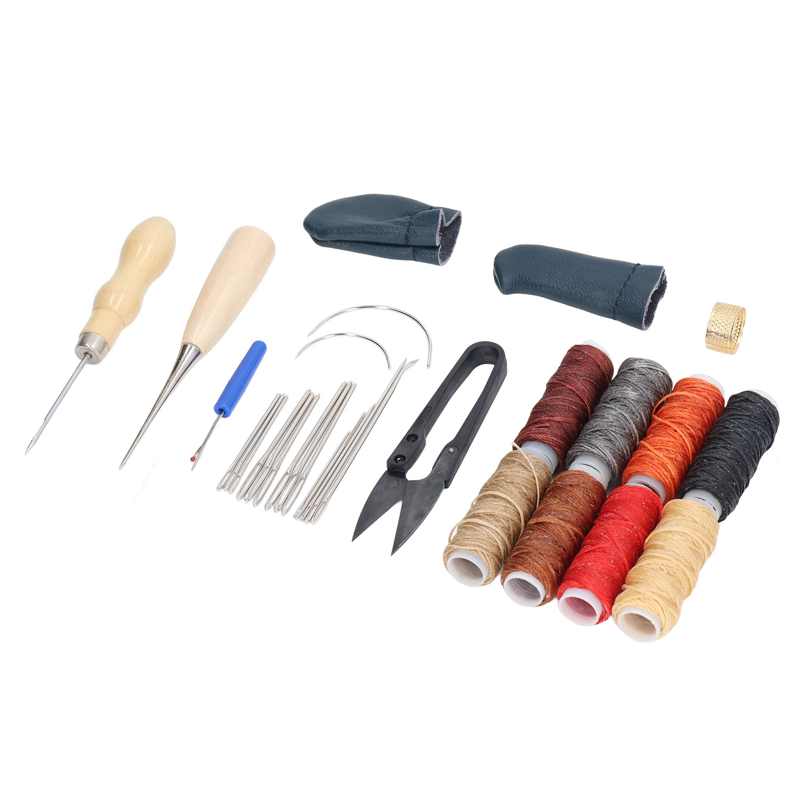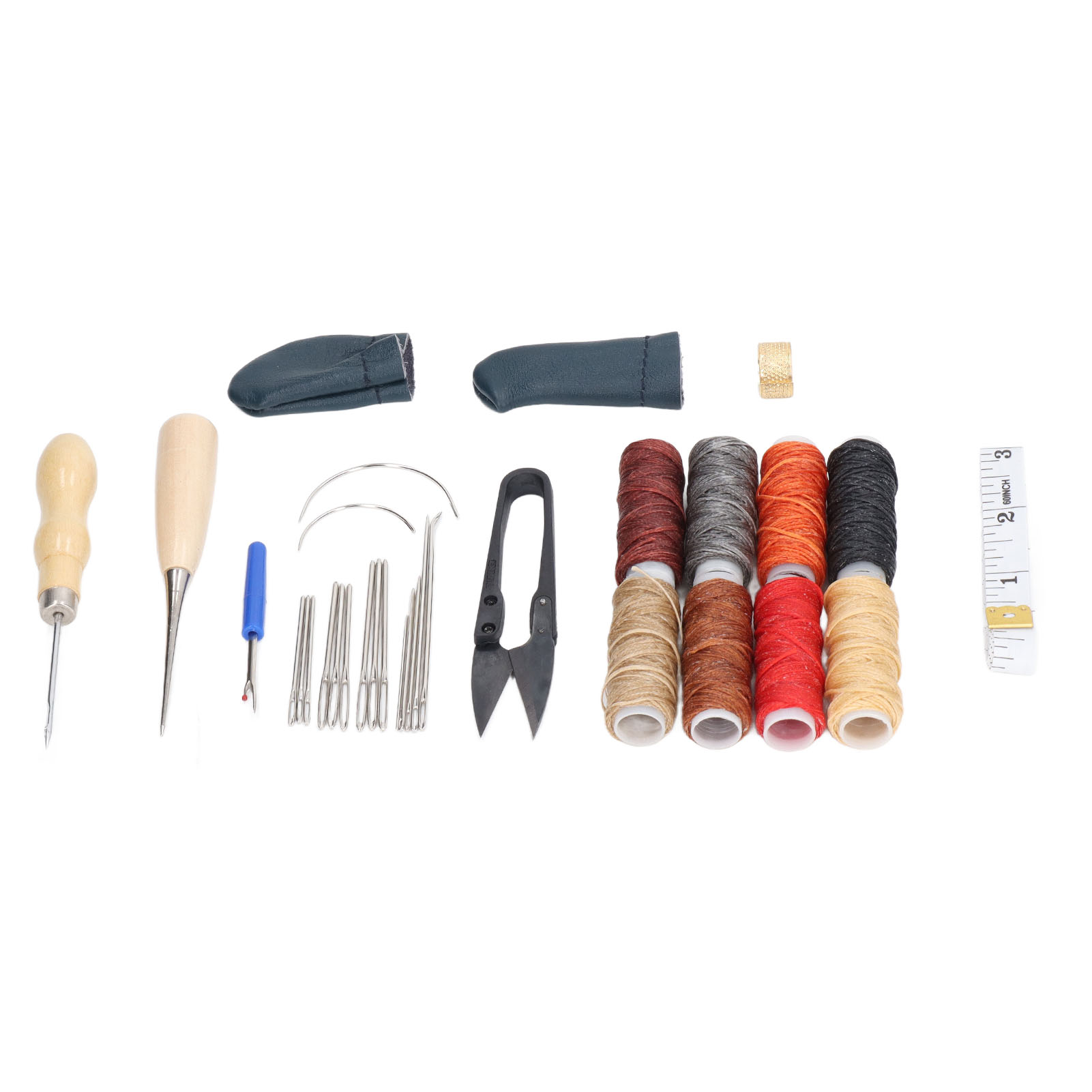1、All in One Leather Kit: This kit is all you need for your leather crafting needs. It has a set of essential tools with all the necessary accessories and sewing supplies for leather crafts and repairs. 2、DIY Projects: With this all in one sewing supplies and accessories, you can do all kinds of DIY projects. You can use it not only on leather but also on any other fabric such as denim, canvas, tarpaulin or other synthetic fabrics. 3、Leather Repair Kits: For carpets, coats, mattresses, and even tents. Make your beloved leather furniture and other sensual items last longer. 4、8 Rolls of Wax Thread in Different Colors: Wine red, khaki, black, silver, dark coffee, light coffee, dark khaki, orange; size: 50m long; can match more colors of leather and fabric. 5、Multipurpose: Suitable for basic stamping sets, suitable for beginners and skilled. It is the perfect choice for small gifts for parents, family, friends, especially DIY hand sewing lovers.