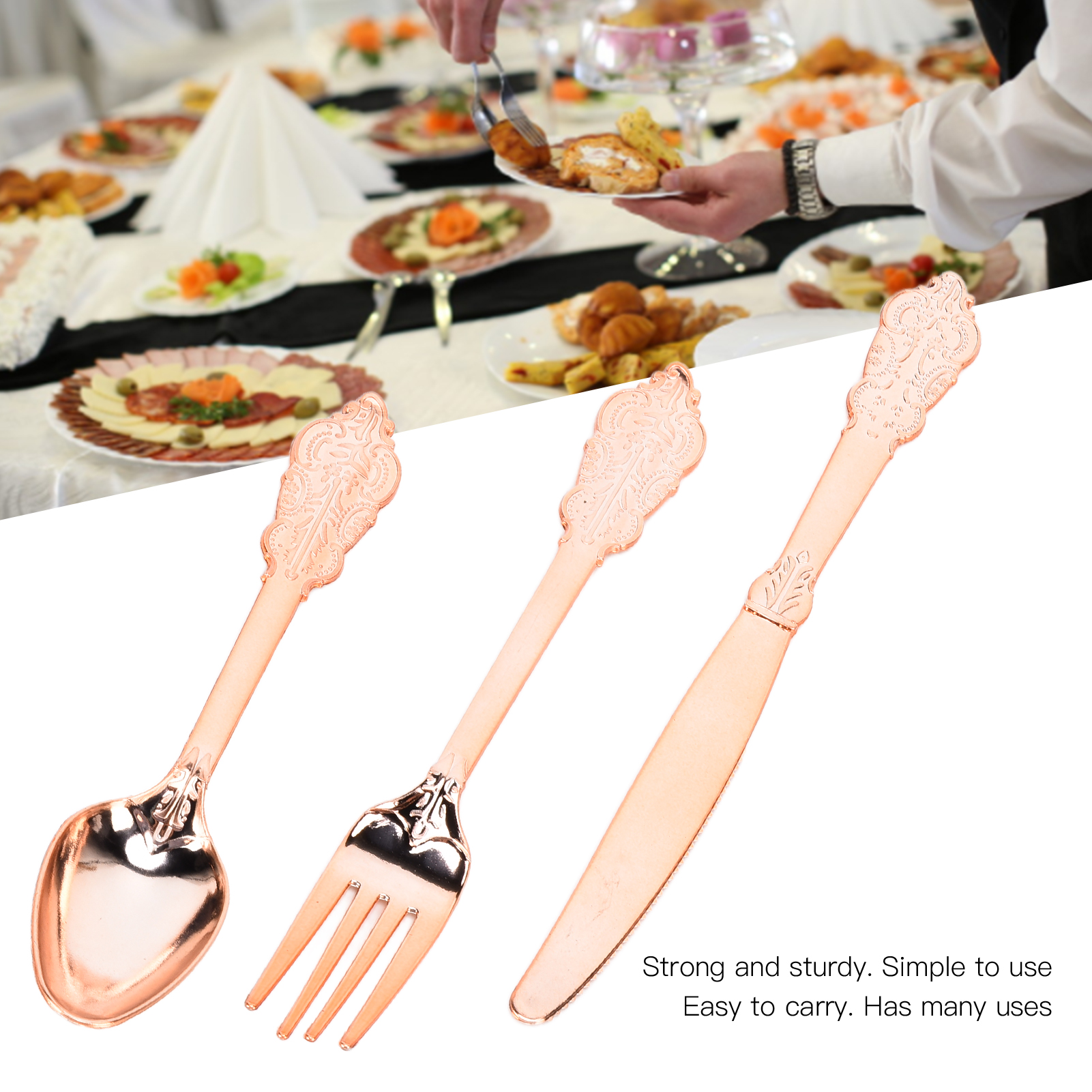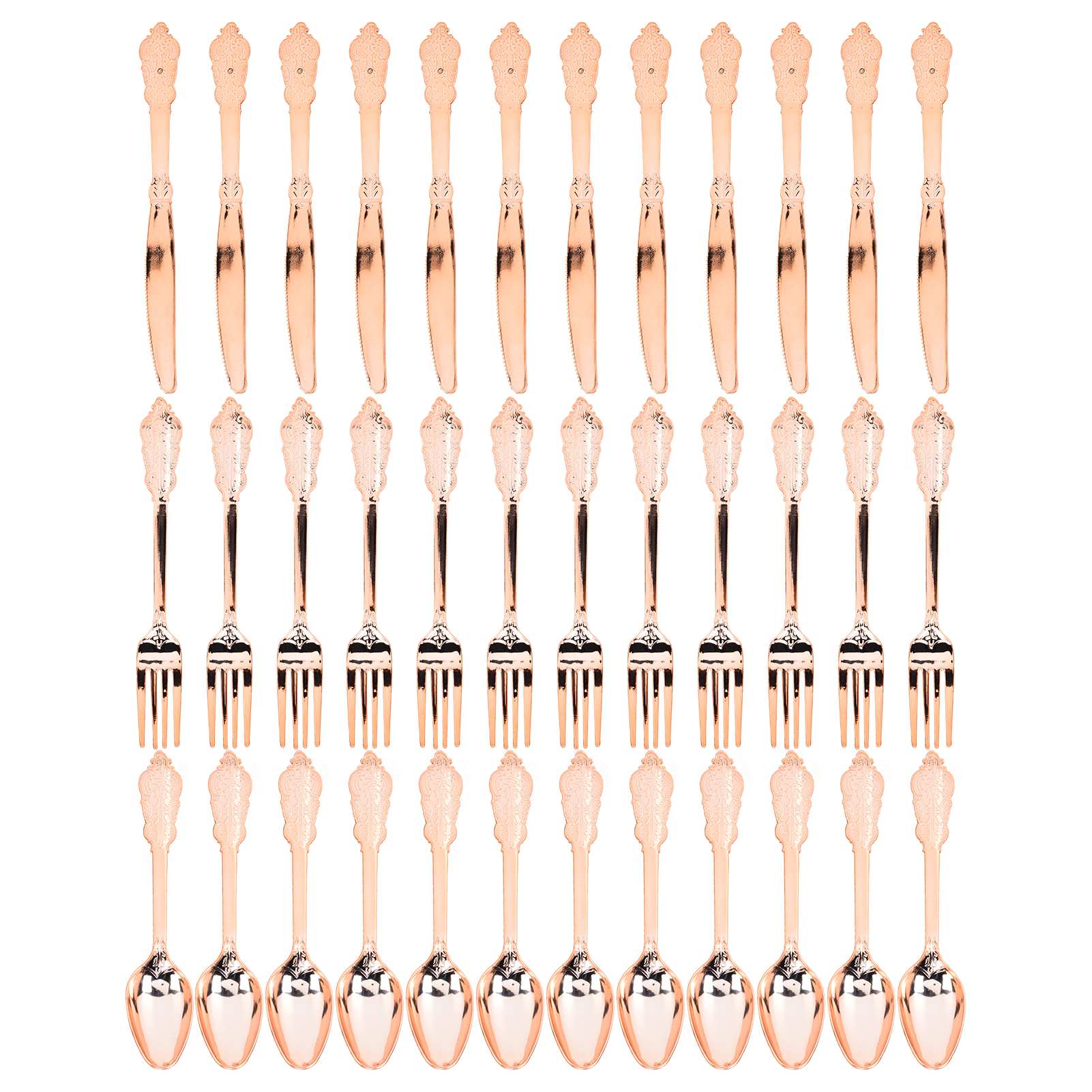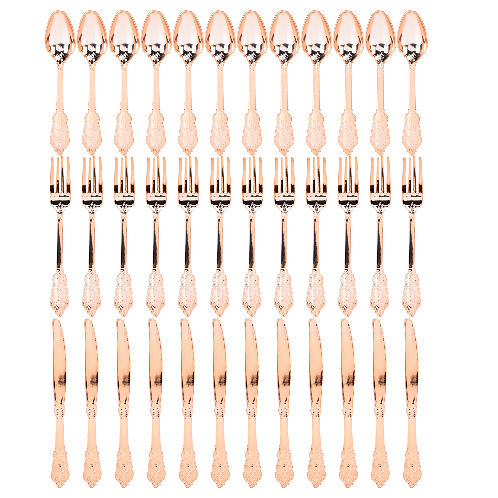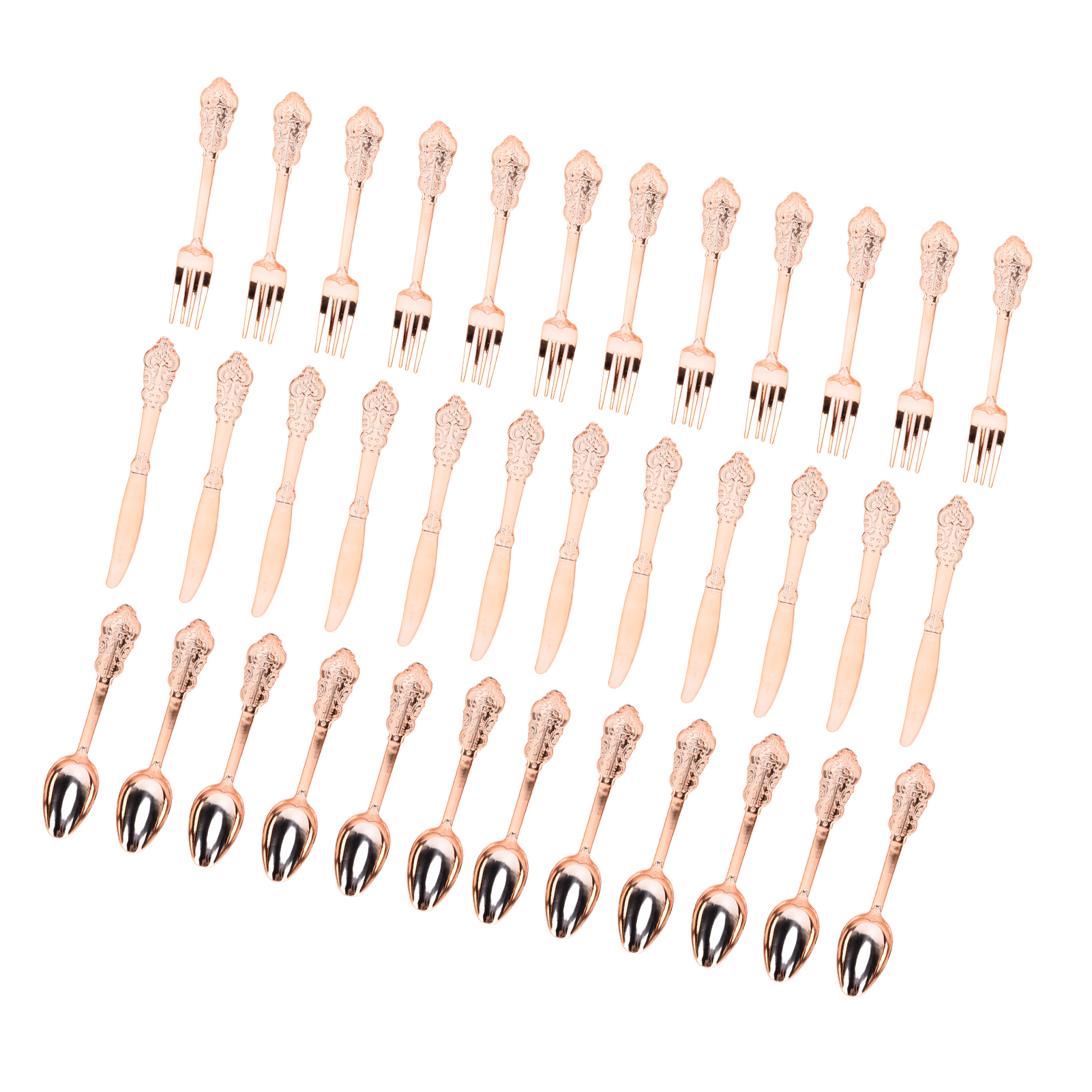 36pcs Plastic Silverware Strong Sturdy Portable Picnic Spoons Fork for Party FestivalRose Gold