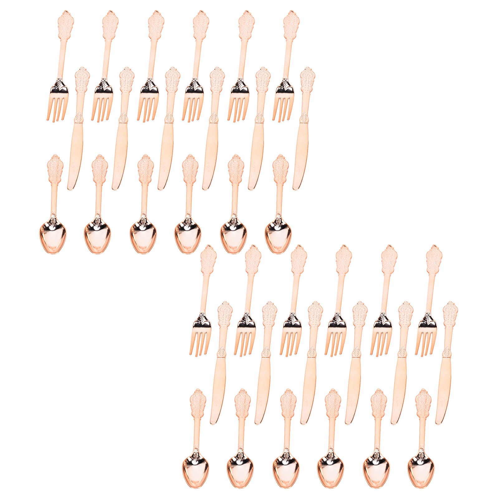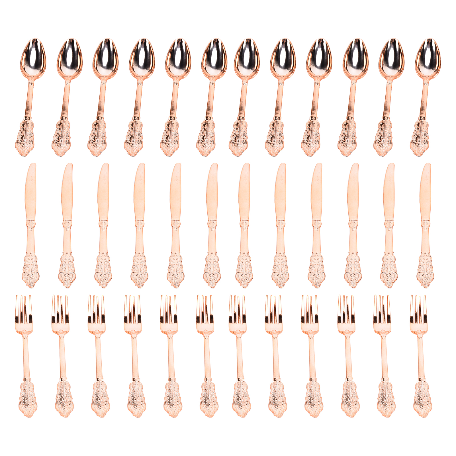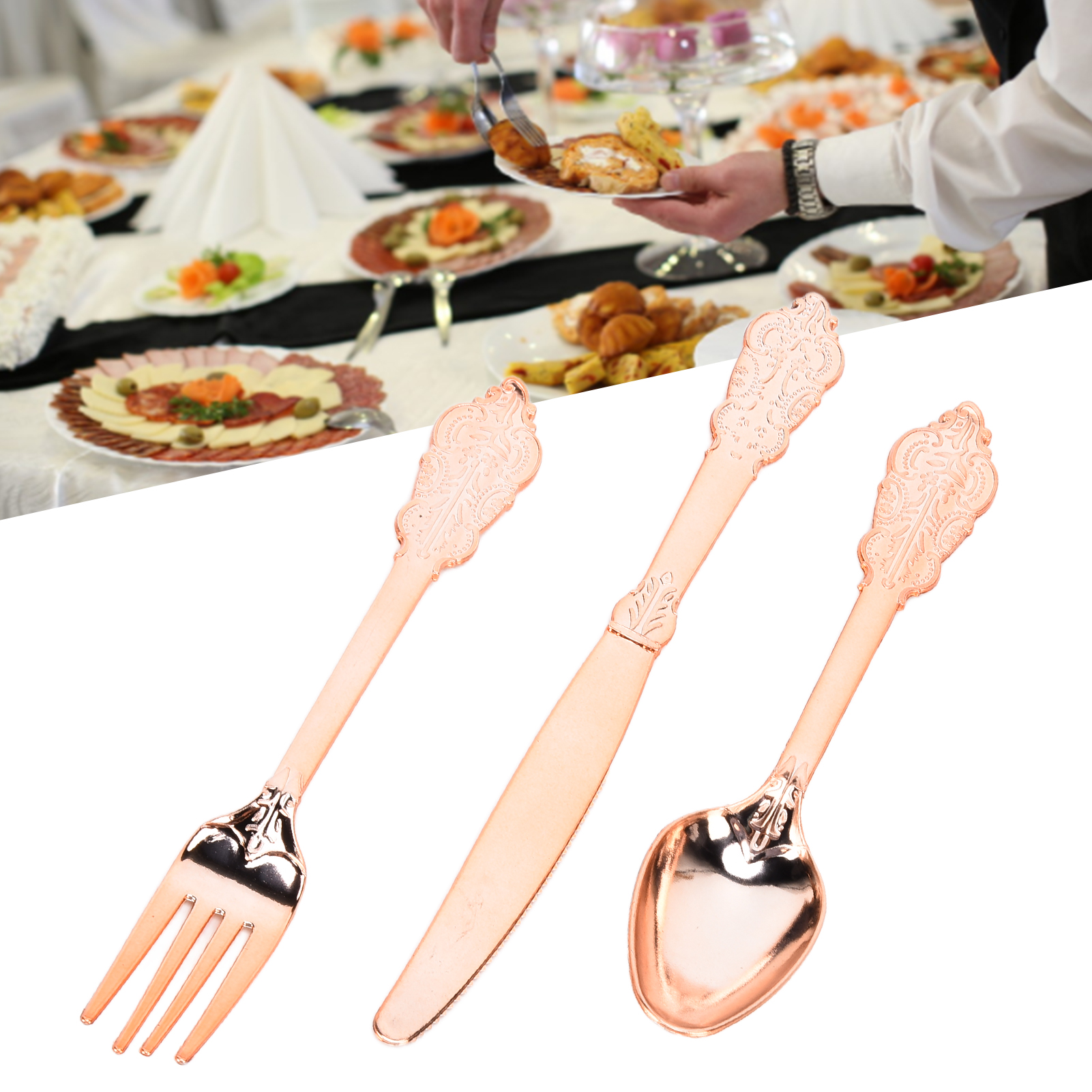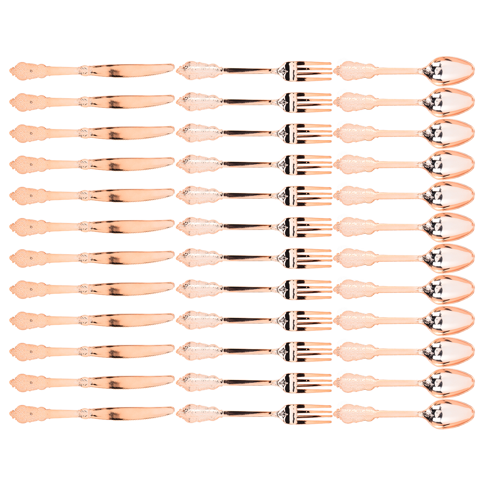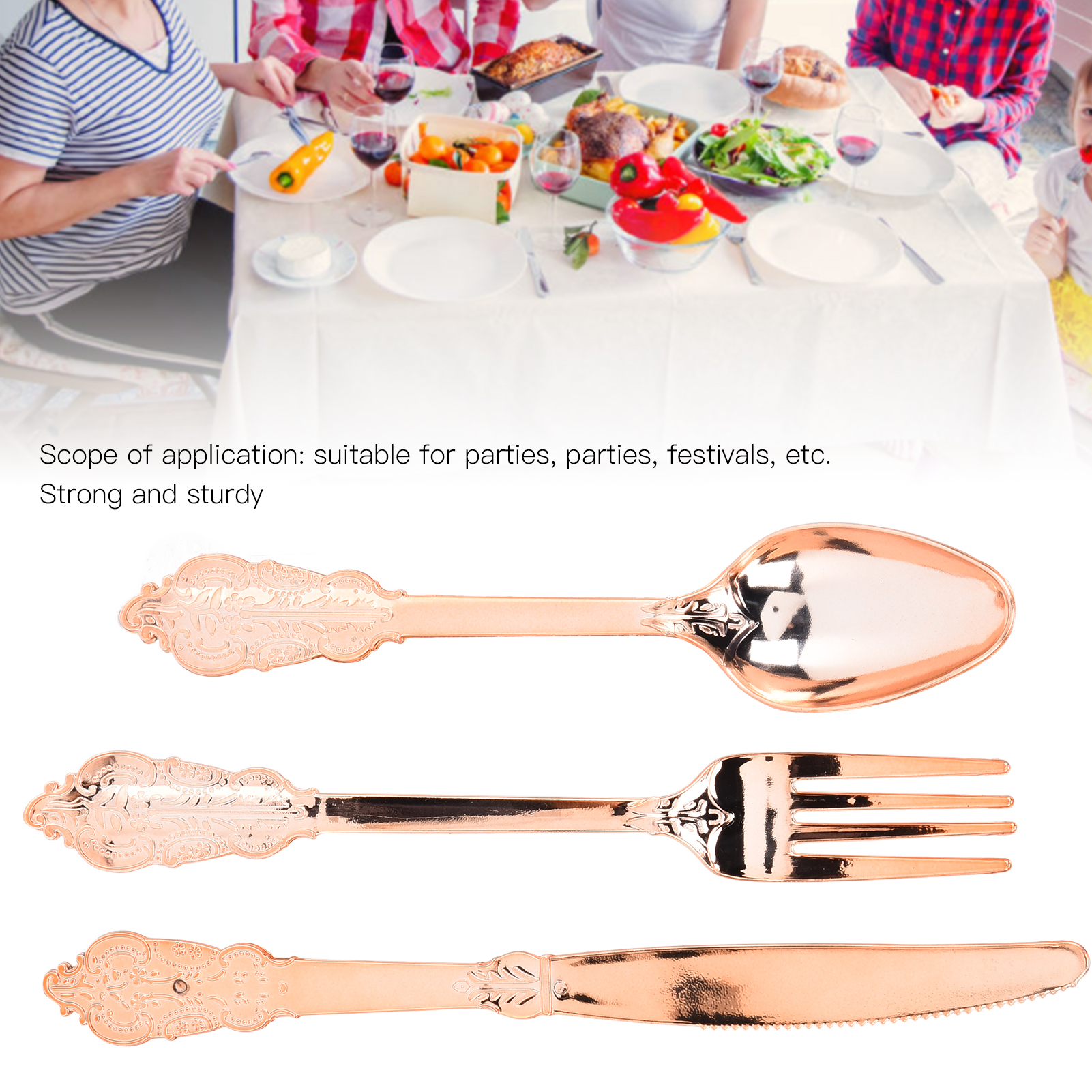 36pcs Plastic Silverware Strong Sturdy Portable Picnic Spoons Fork for Party FestivalRose Gold