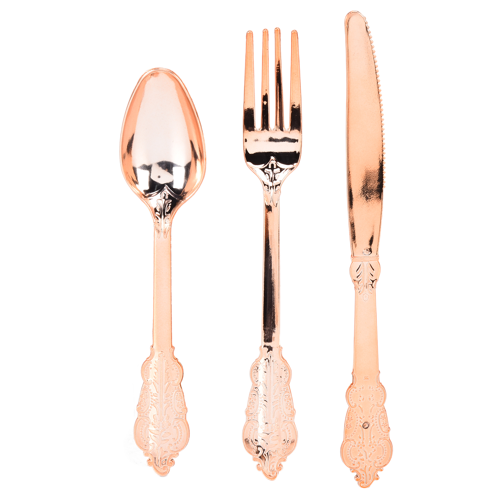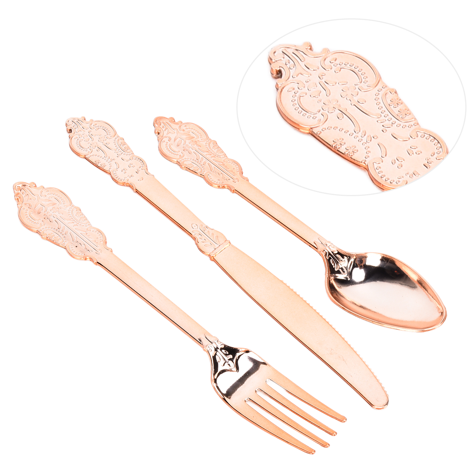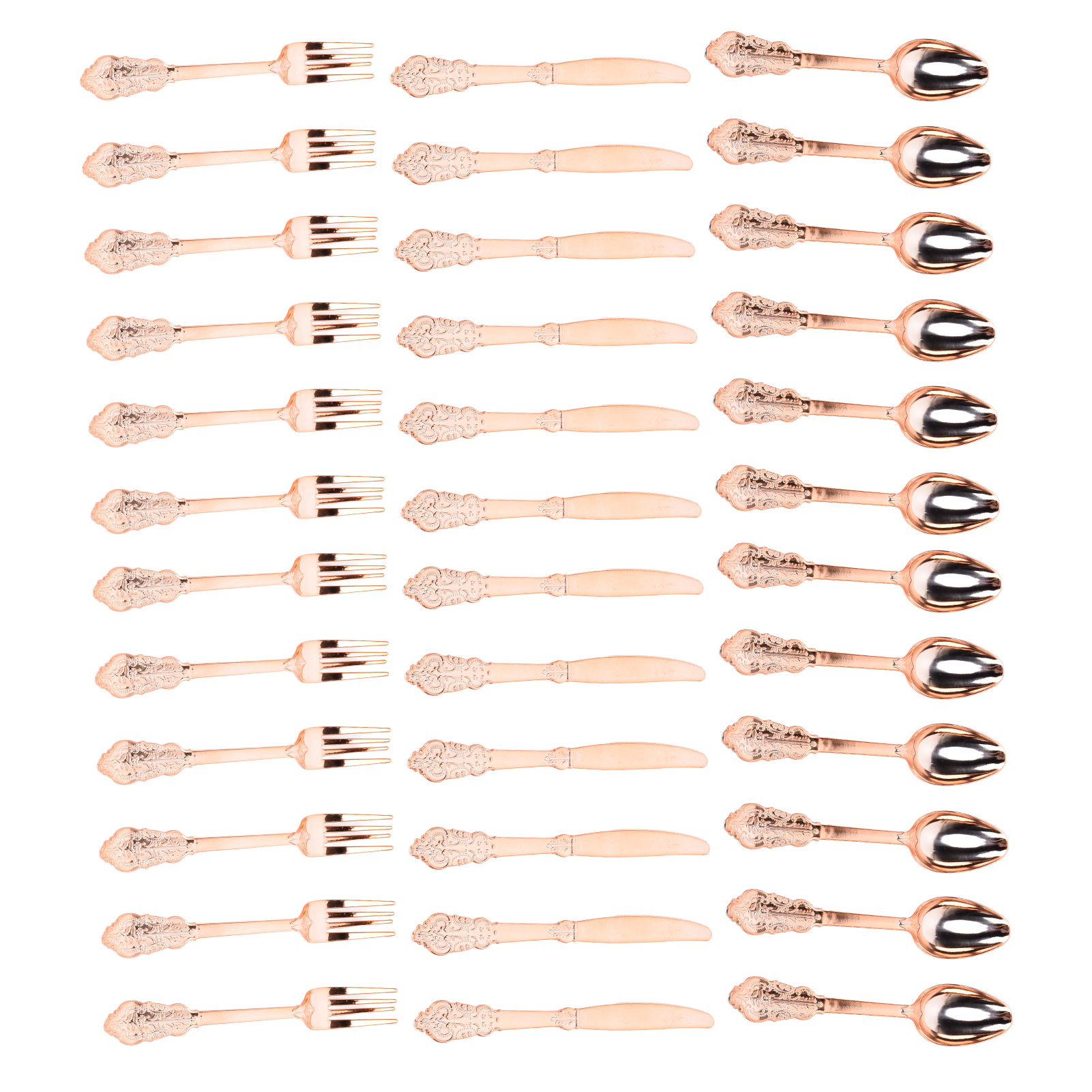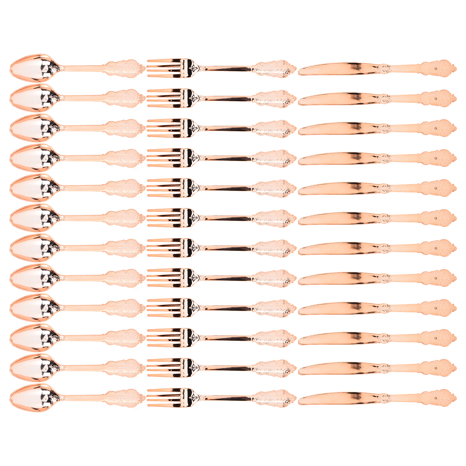 36pcs Plastic Silverware Strong Sturdy Portable Picnic Spoons Fork for Party FestivalRose Gold