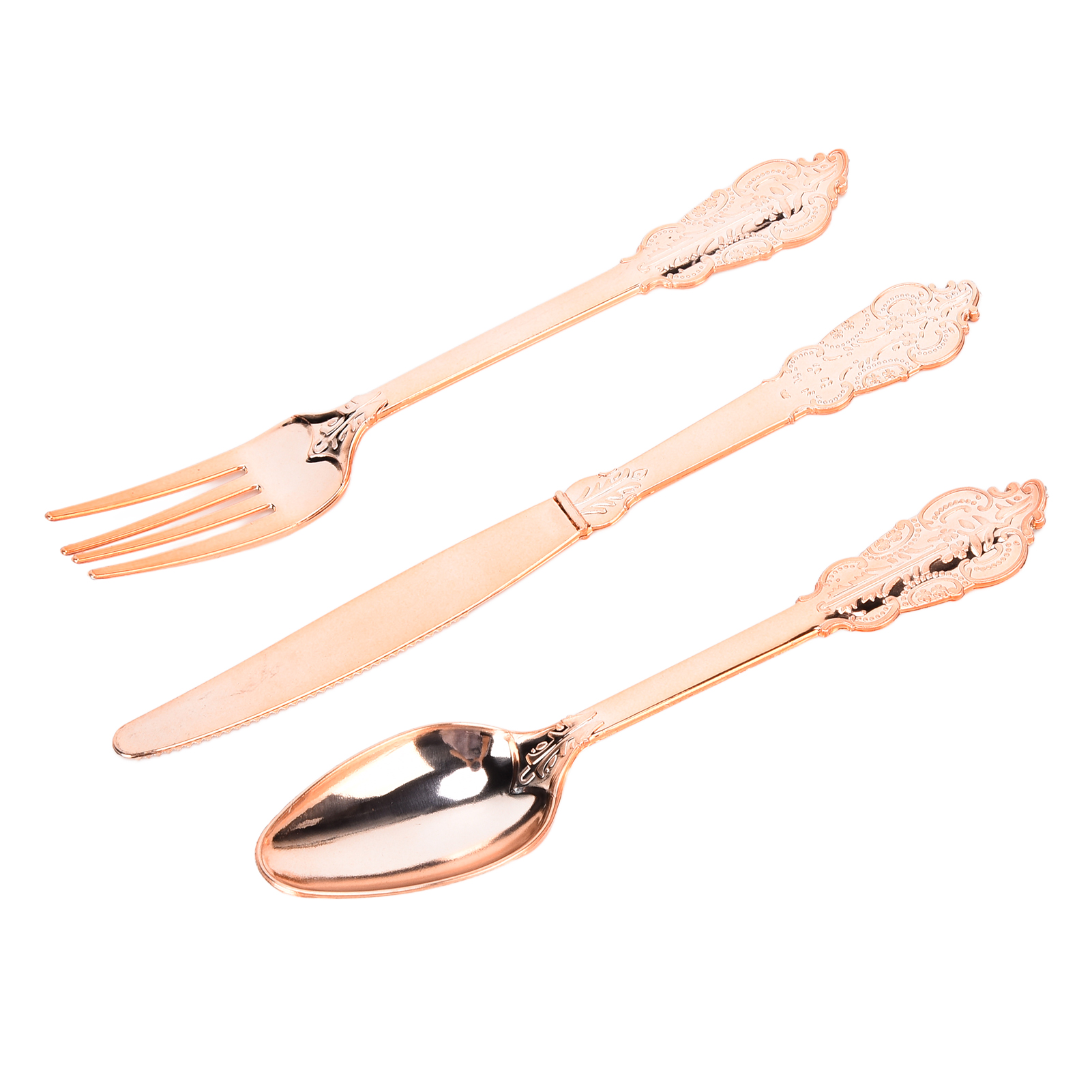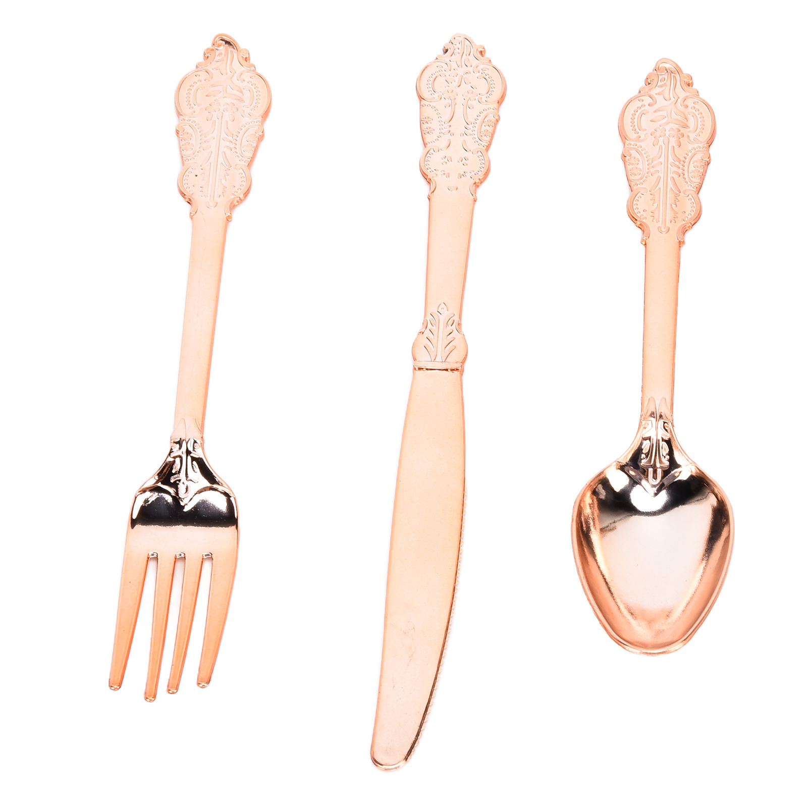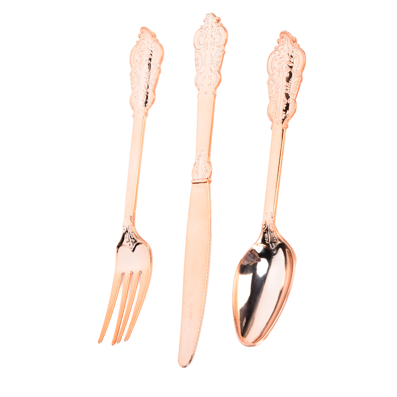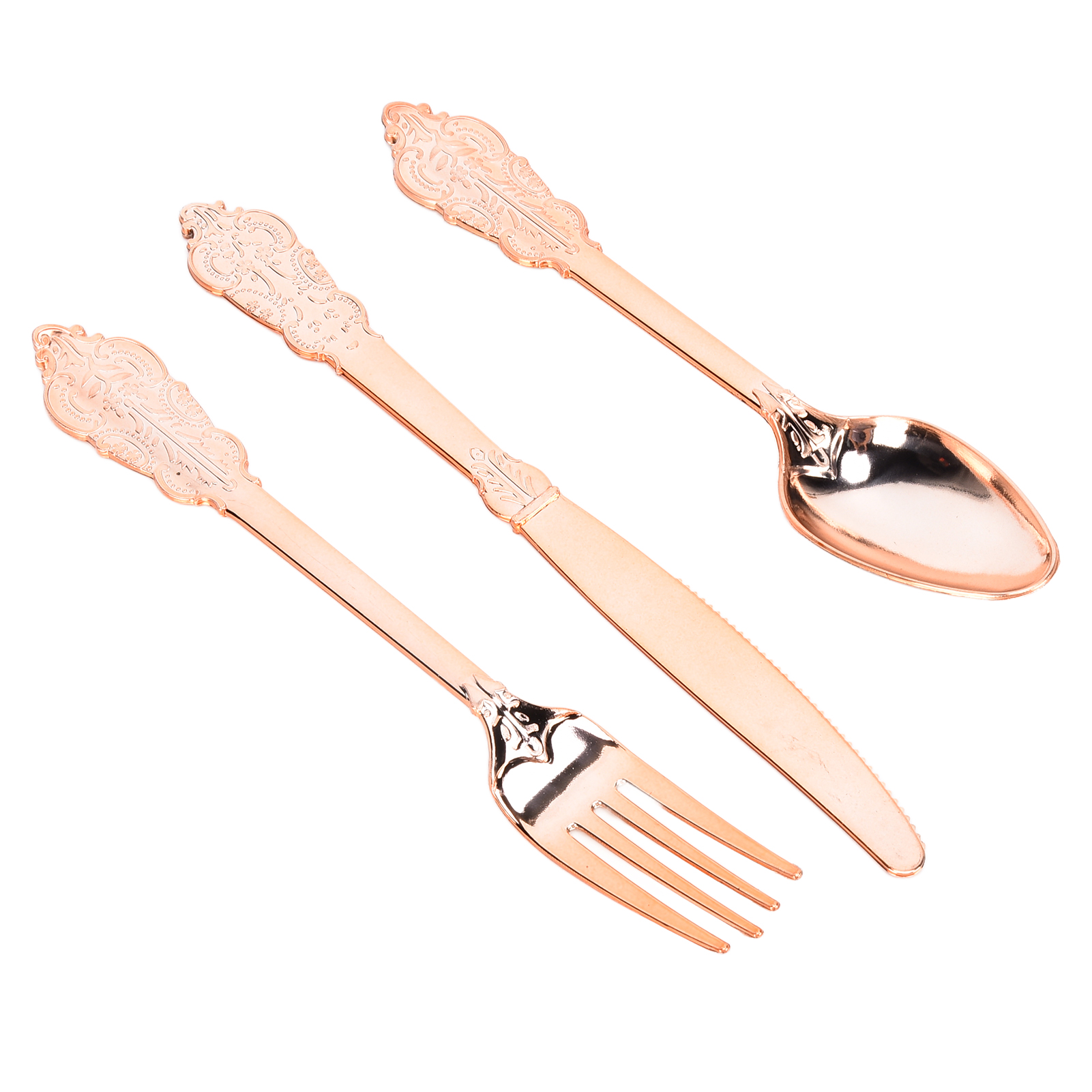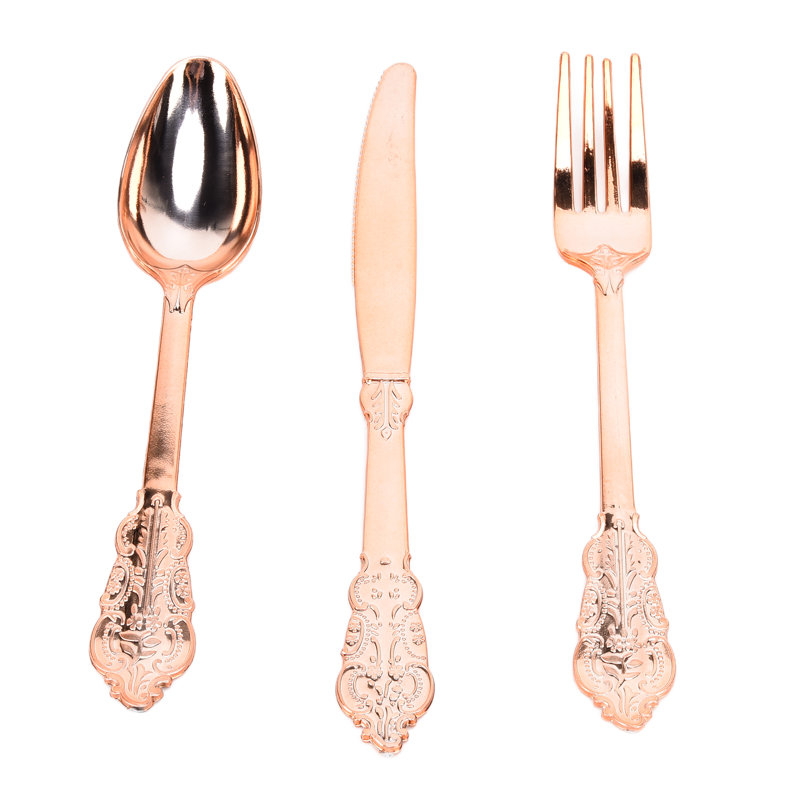 36pcs Plastic Silverware Strong Sturdy Portable Picnic Spoons Fork for Party FestivalRose Gold