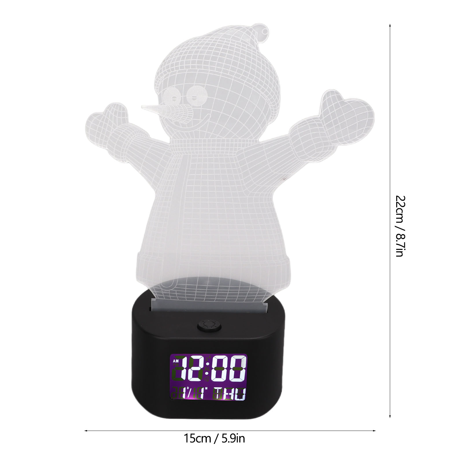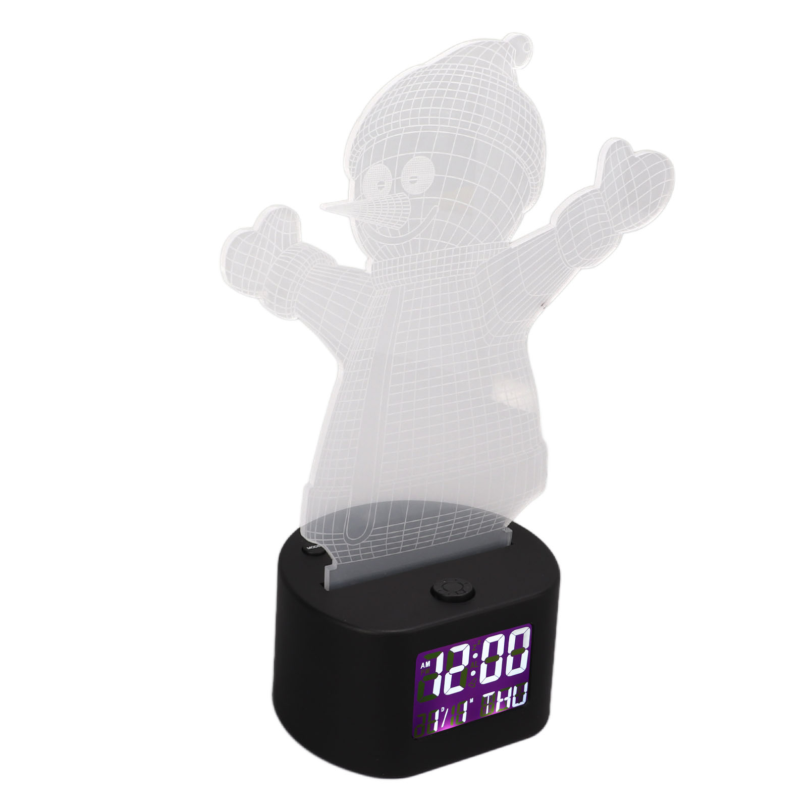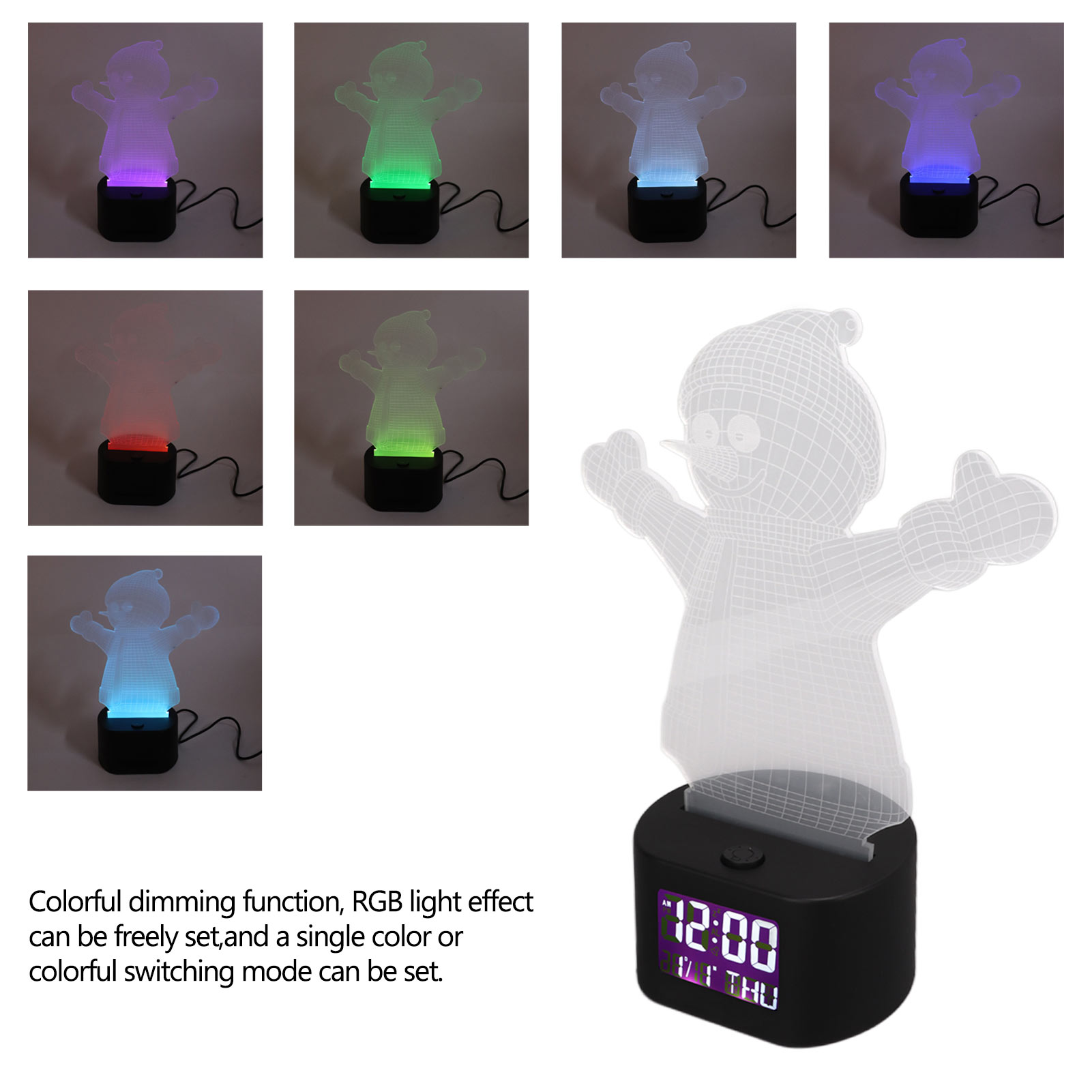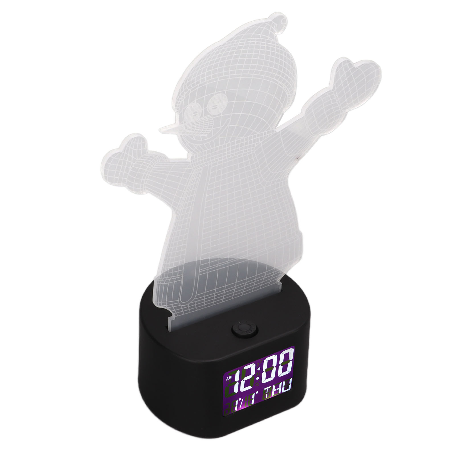 3D Snowman Acrylic Night Light Perpetual Calendar Digital Clock Alarm Clock Colorful Light LED Cartoon Night Light with Base
