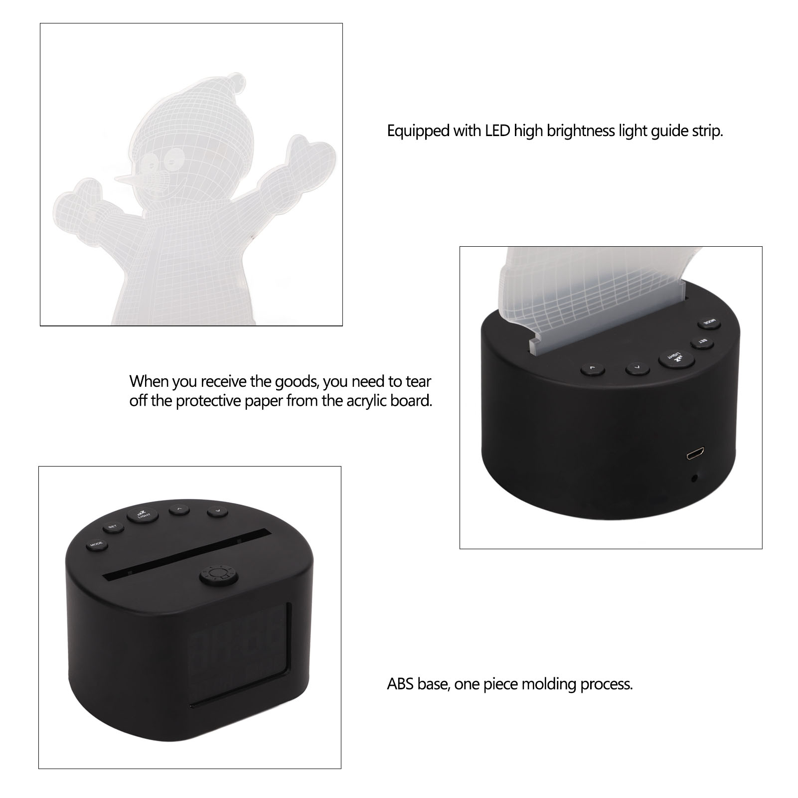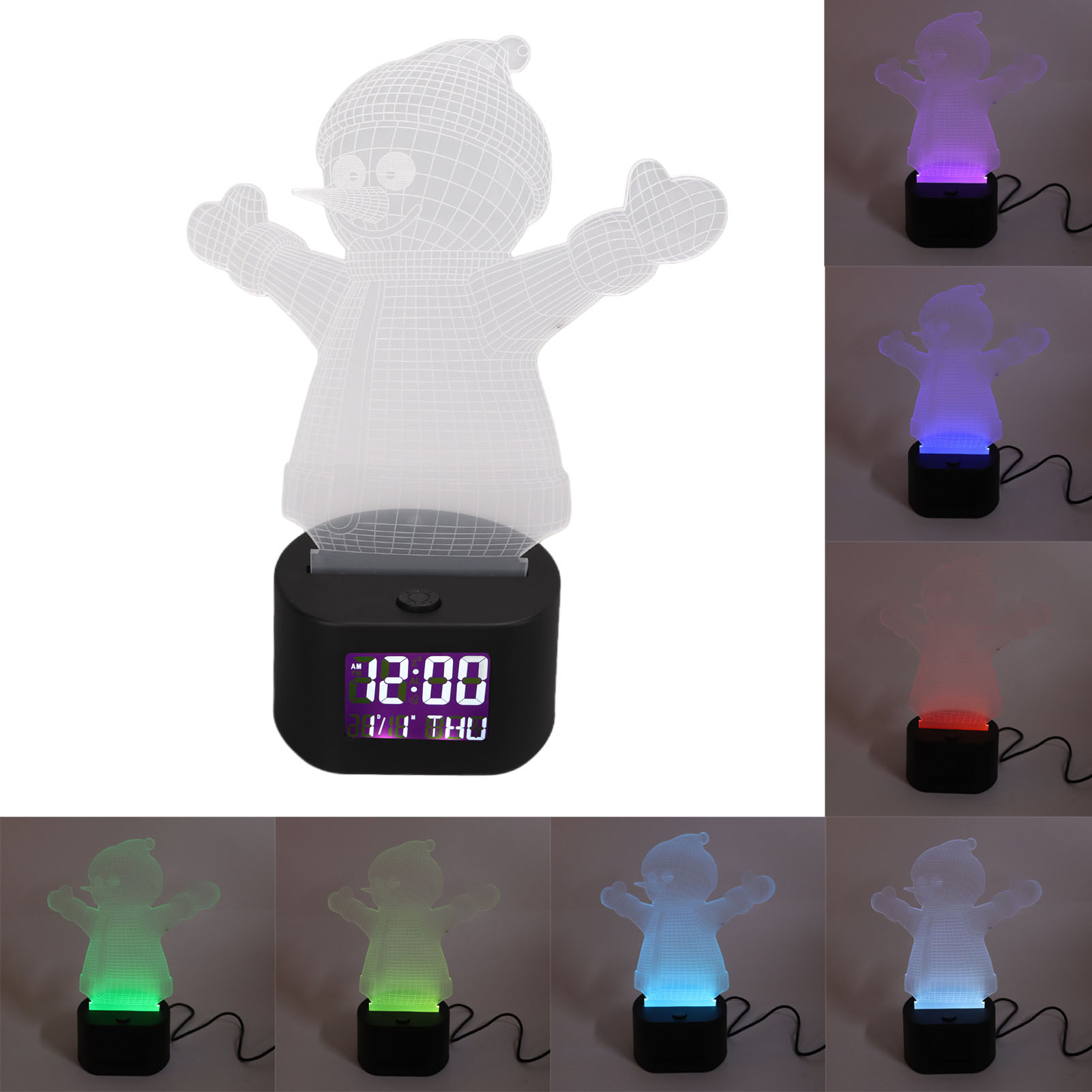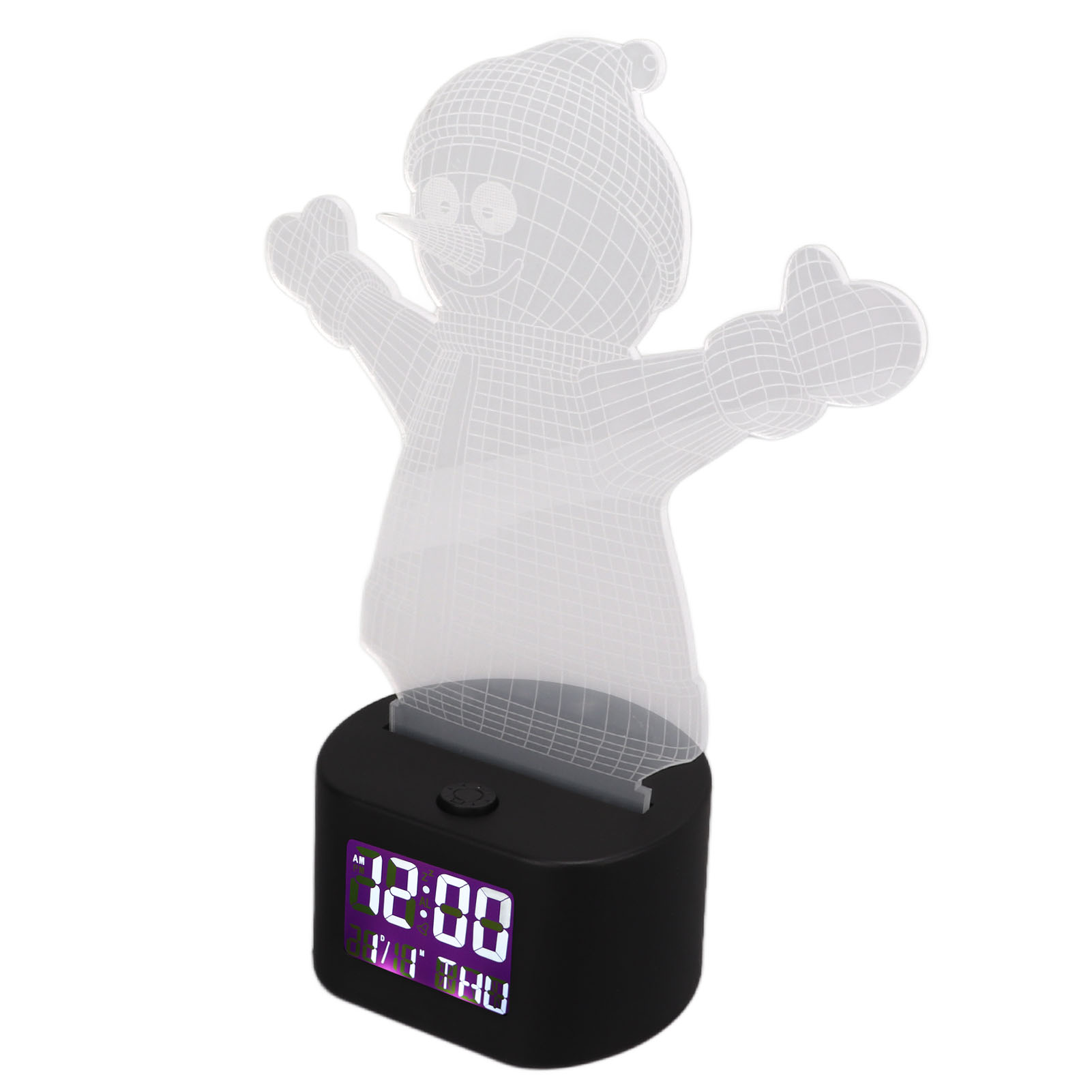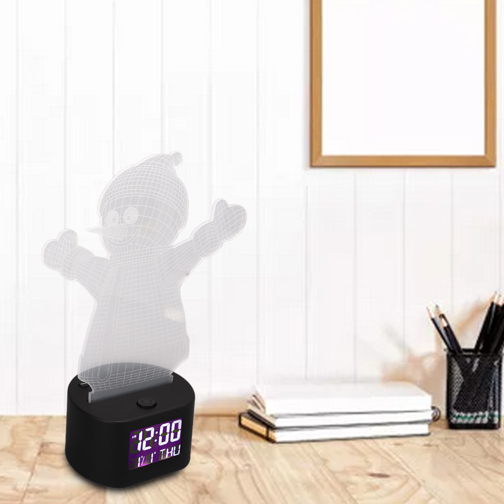 3D Snowman Acrylic Night Light Perpetual Calendar Digital Clock Alarm Clock Colorful Light LED Cartoon Night Light with Base
