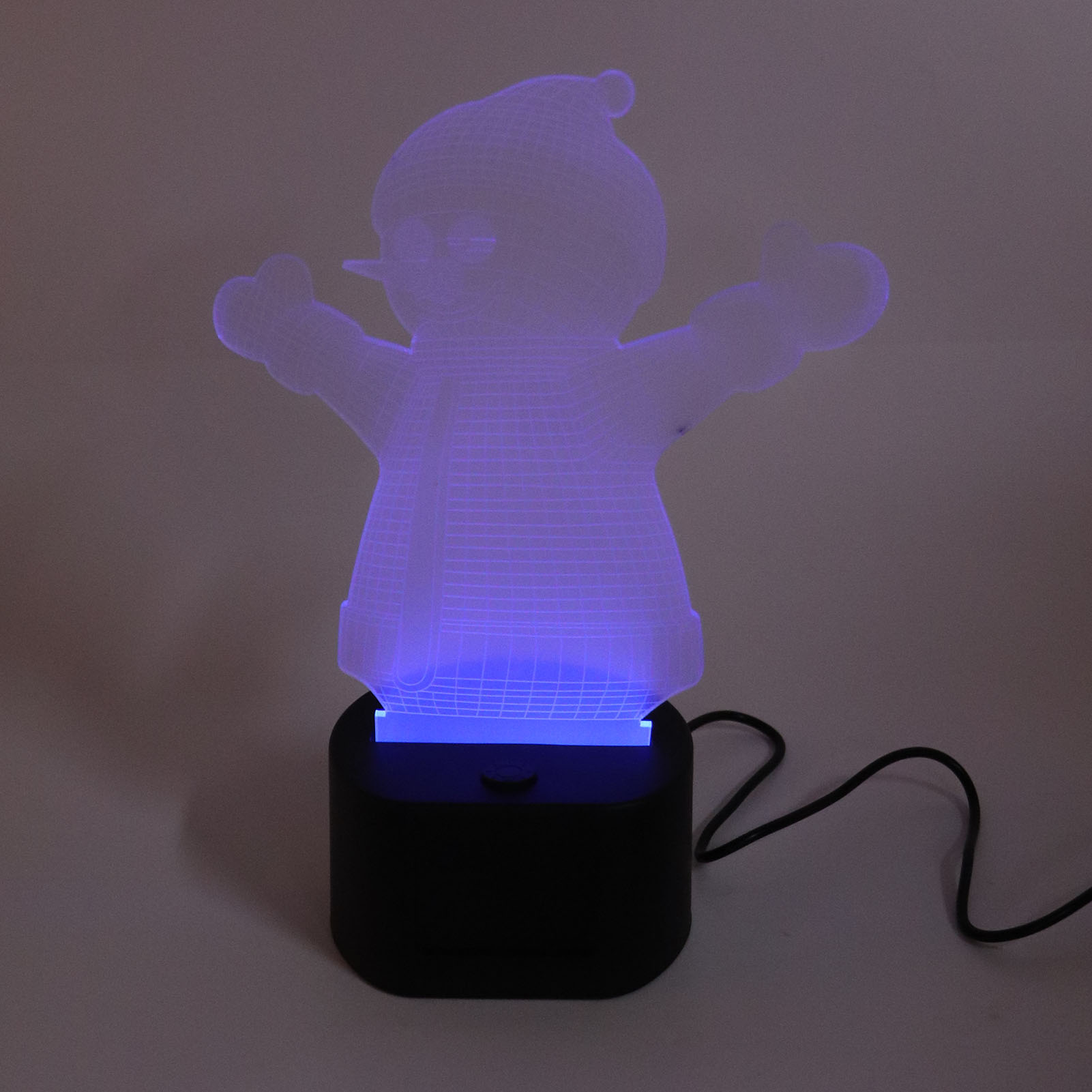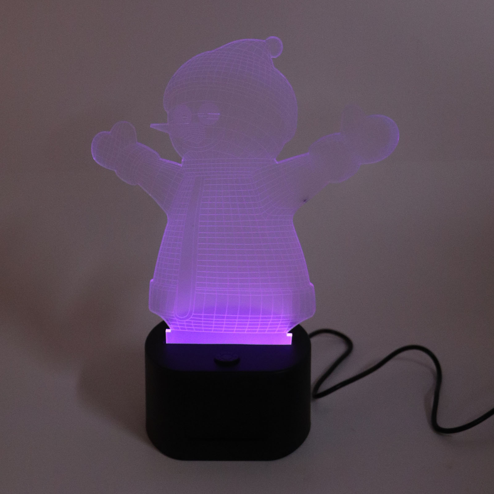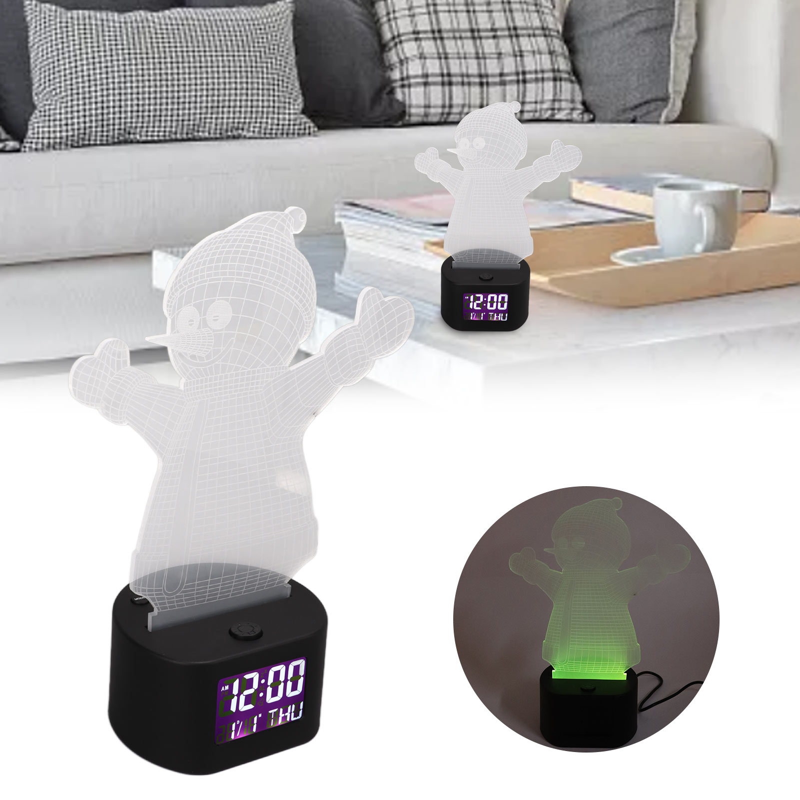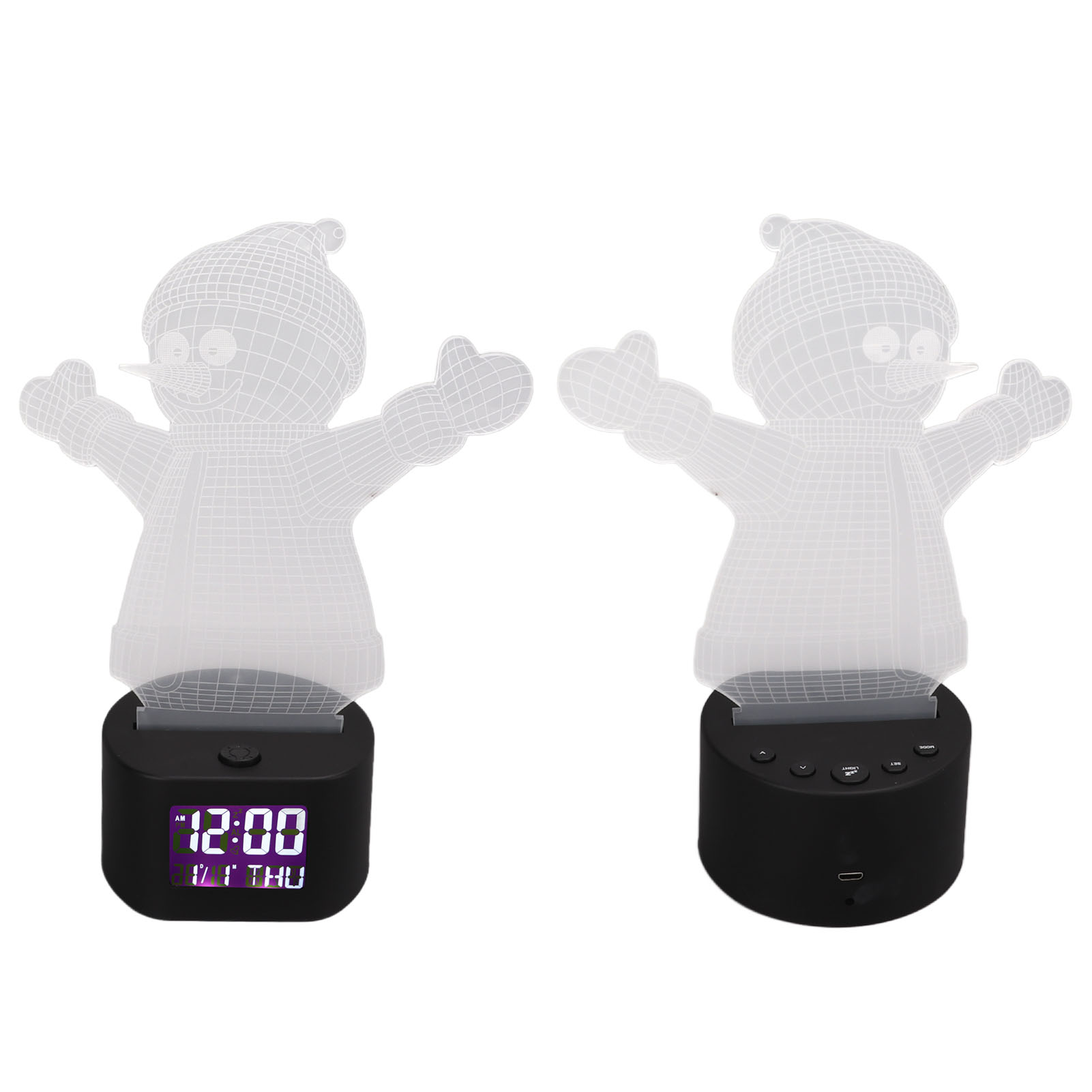 3D Snowman Acrylic Night Light Perpetual Calendar Digital Clock Alarm Clock Colorful Light LED Cartoon Night Light with Base