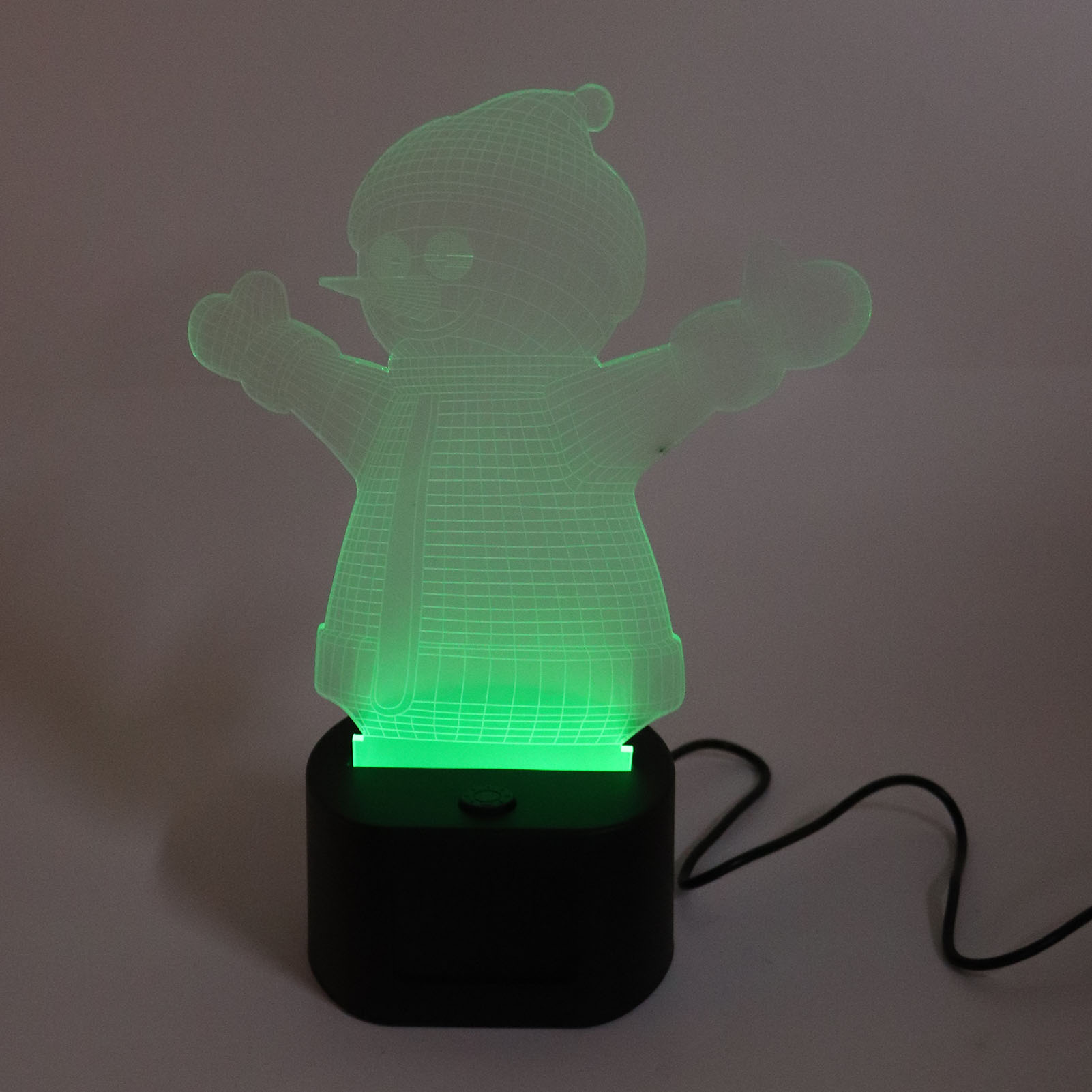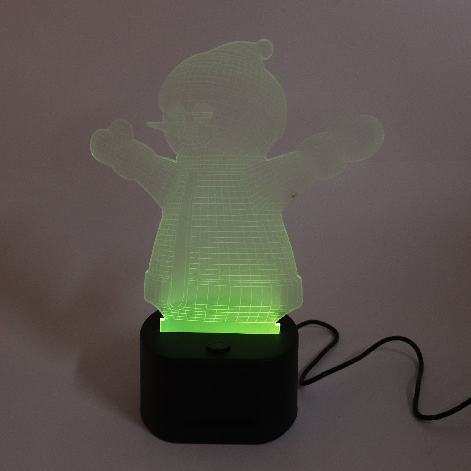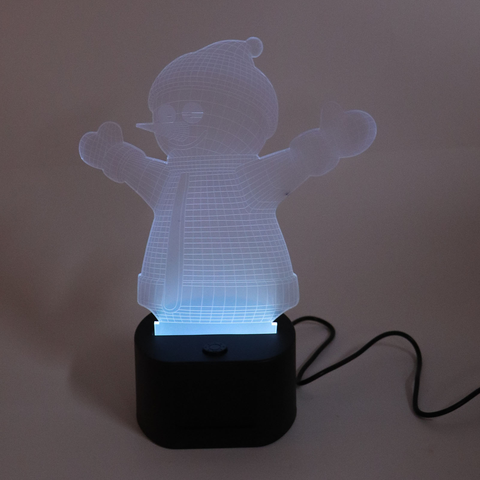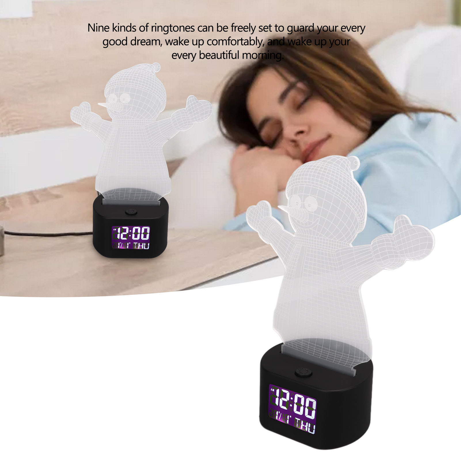 3D Snowman Acrylic Night Light Perpetual Calendar Digital Clock Alarm Clock Colorful Light LED Cartoon Night Light with Base