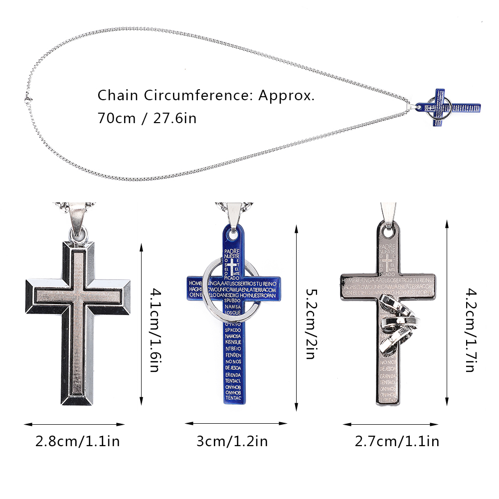 Package List: 3 x Cross Pendant Necklace(1 x A Style, 1 x B Style, 1 x C Style)