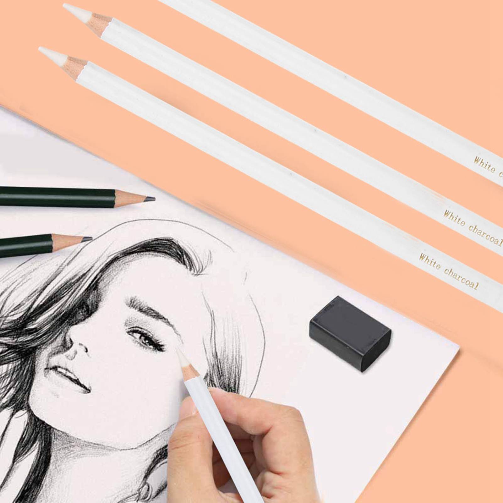 1、The white charcoal pencil can be used for finishing touches, hooking lines, lighting and adding highlights when painting 2、Suitable for using in clothing pattern making 3、Carbon drawing pencil lead, moderate softness, easy to color 4、The pencil is easy to cut, not easy to break when cutting 5、Wood pencil holder for comfortable grip and smooth drawing 6、Ideal for using on dark or colored paper, smooth to use