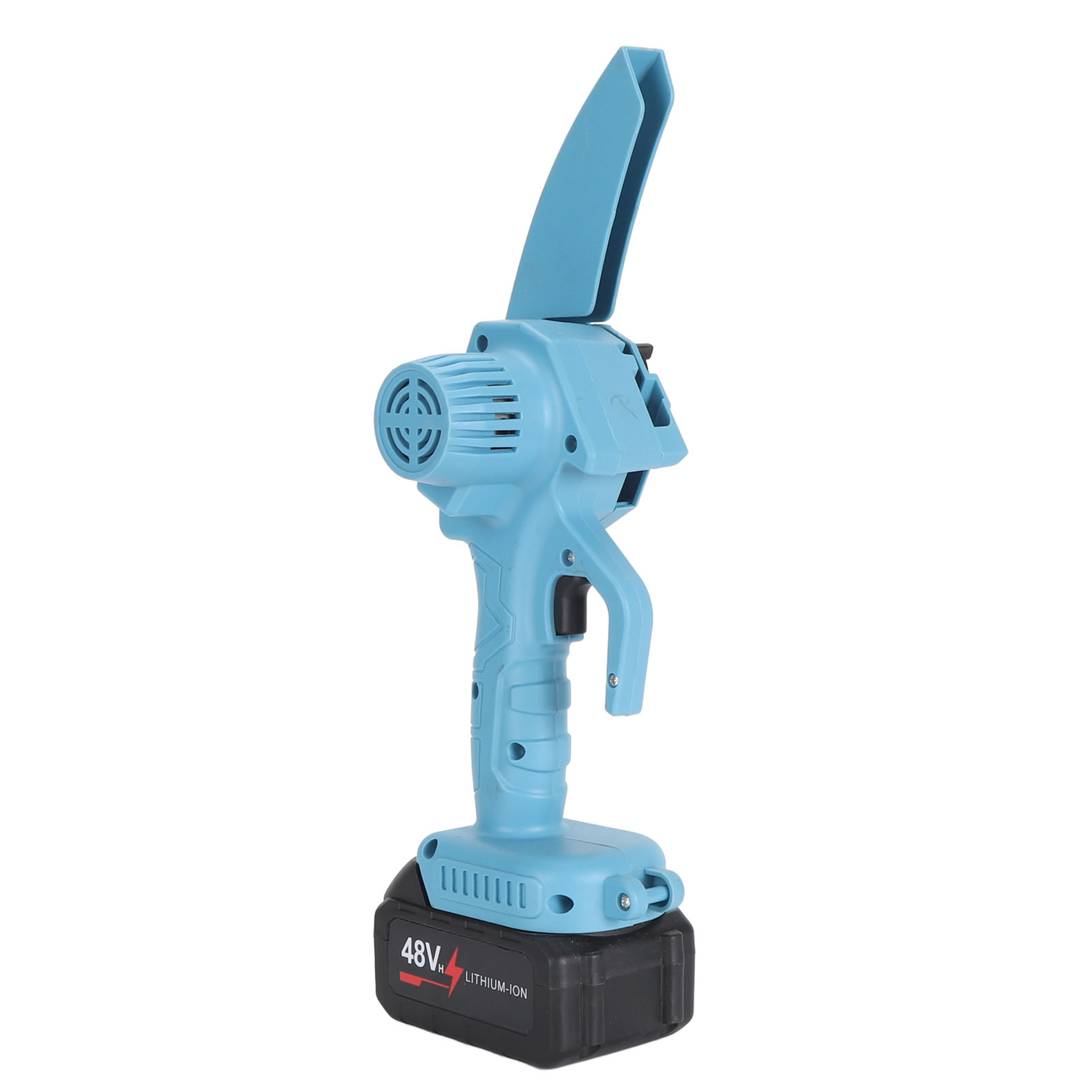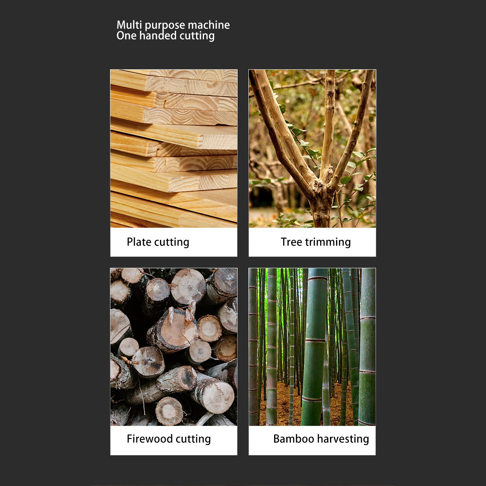 1、FAST CUTTING SPEED: High working efficiency, high position accuracy, low noise, can give you a better using experience, fast cutting speed, practical, low power consumption, high stability. 2、RAPID HEAT DISSIPATION: Enlarge the cooling port, rapid heat dissipation, to avoid burning the machine, intelligent switch button, strong power, nonslip handle, comfortable grip and nonslip, to avoid blisters due to the use of time over the wear out of the blisters. 3、DURABILITY: The chain is hardened by deep quenching, with strong wear resistance and durability. Built in control circuit board with overload defend, the motor will automatically stop working when it is overheated, so you can use more assured and safer. 4、WIDE RANGE OF USES: Mini chainsaw one hand cutting, pure copper motor, very high power, wide range of uses, can be used for forest harvesting, firewood cutting, pruning, gardening, etc. 5、EASY OPERATION: Portable electric chainsaw cordless simply adjust the chain tension with the included screwdriver, plug in the batteries and you're prepare to go.