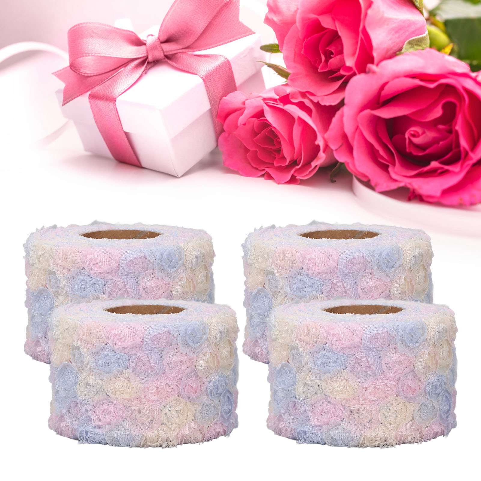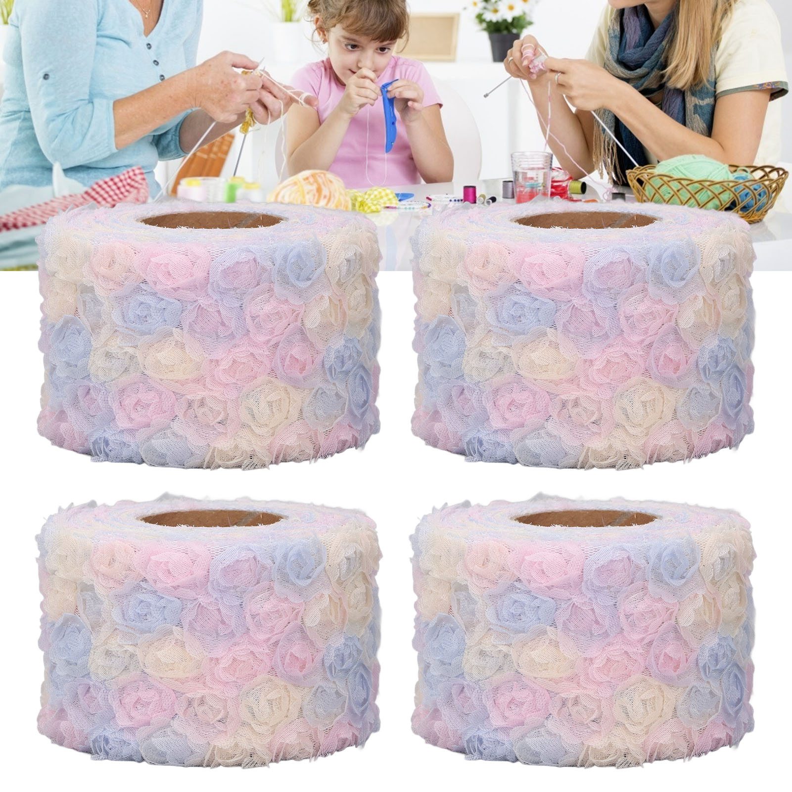 4 Rolls Flower Lace Ribbon 5 Yards Each 5.8cm Width Wrinkle Resistant Breathability Colorful Lace Ribbon for Crafts Sewing