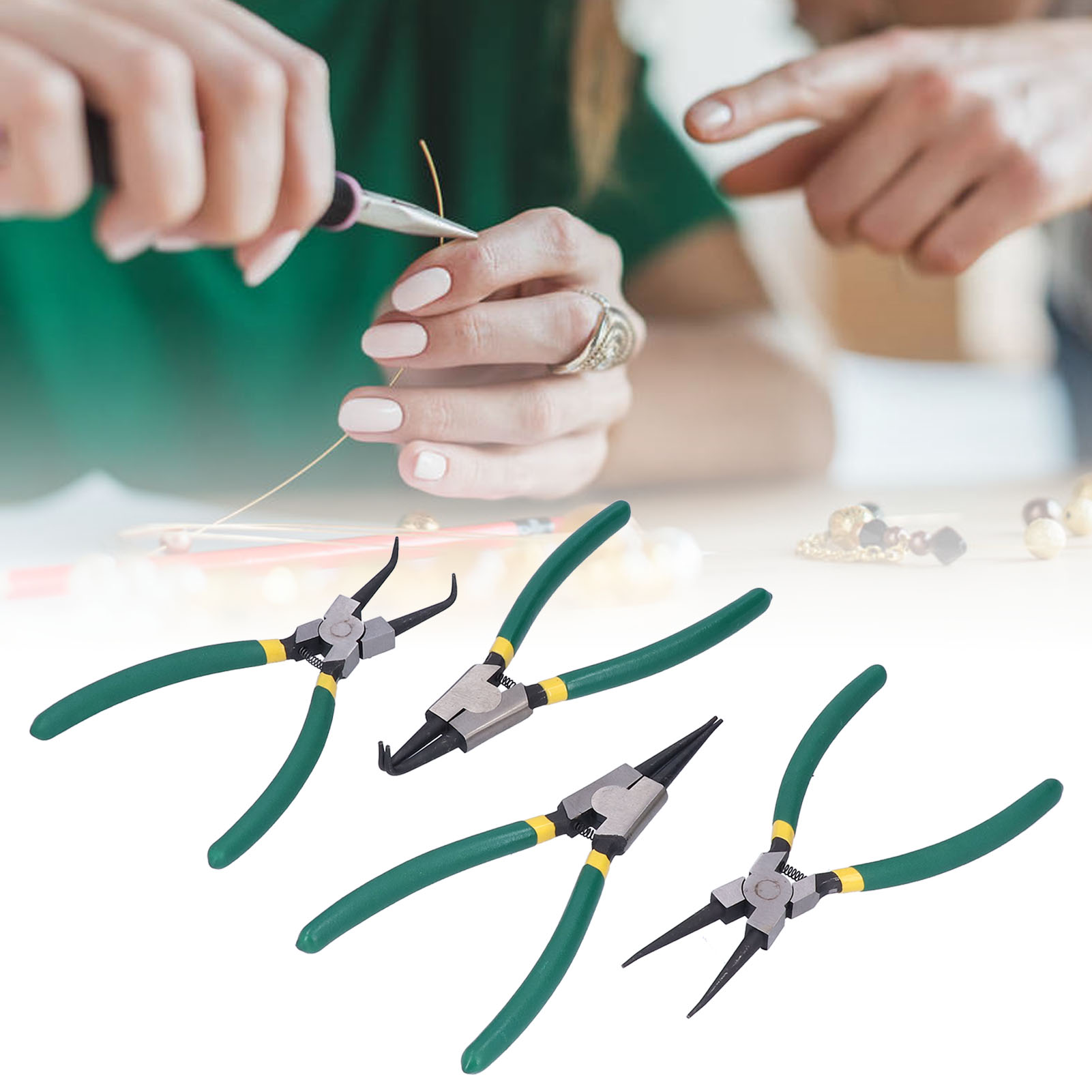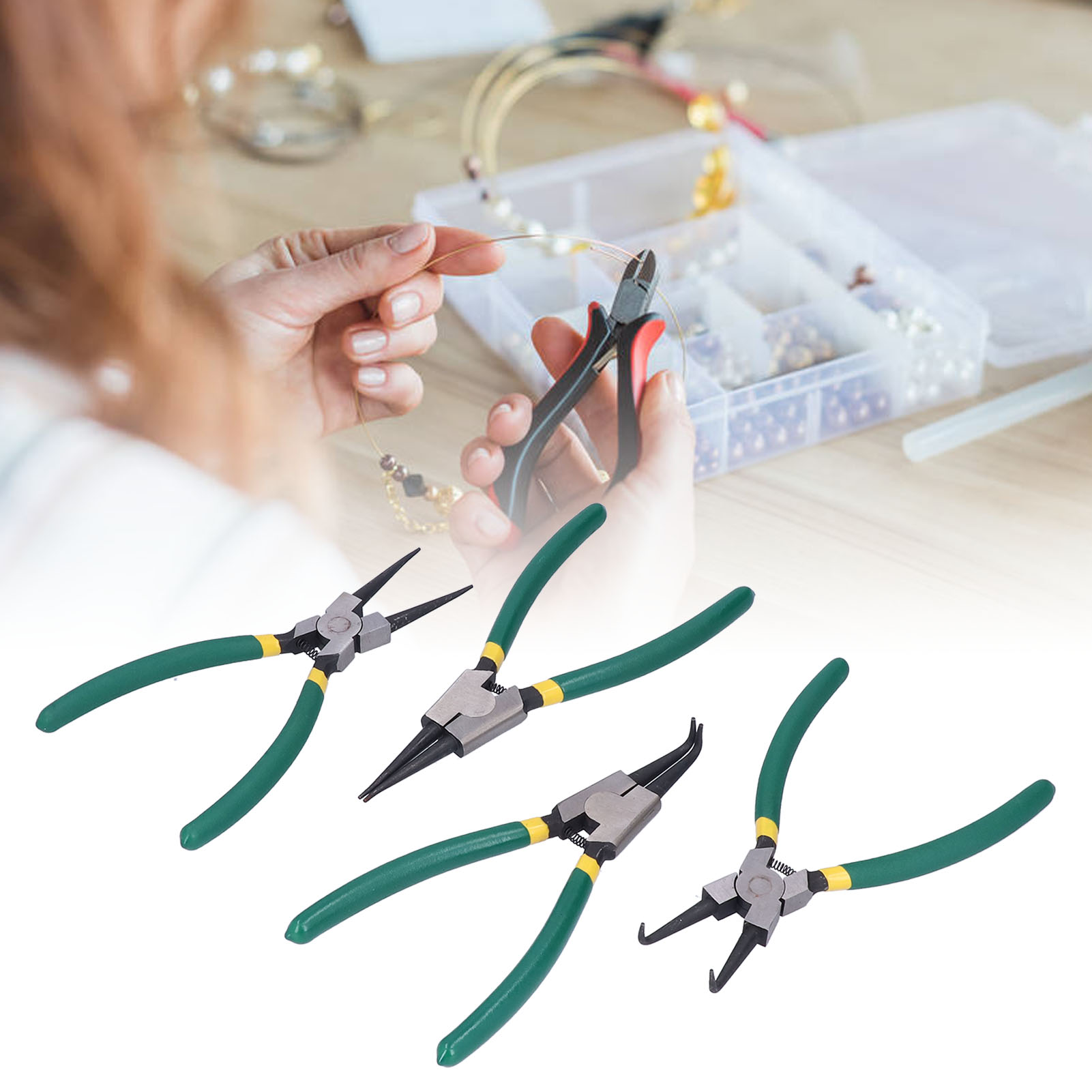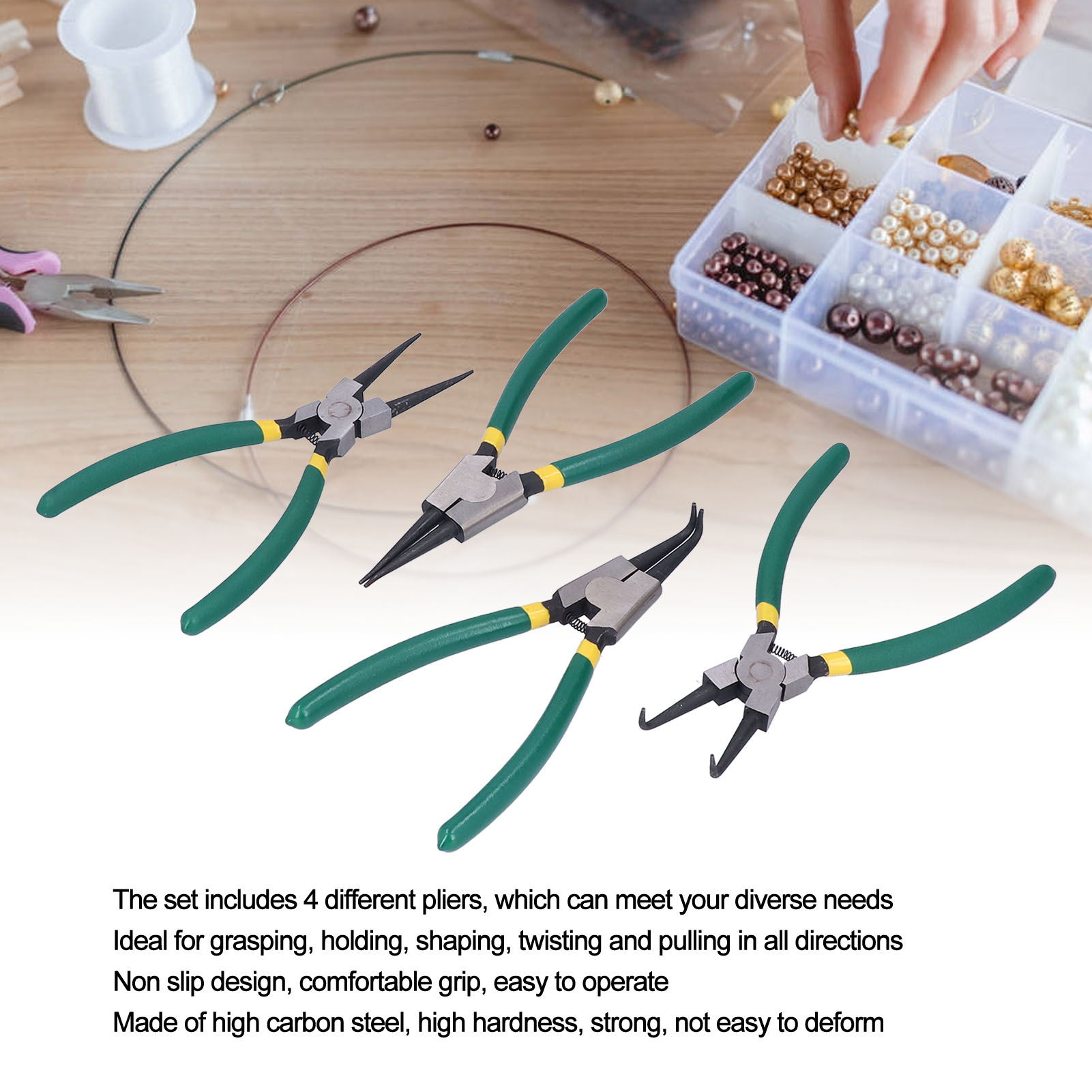 1、Curved Nose Pliers: Very suitable for grasping, holding, shaping, twisting and pulling in all directions. 2、Anti Slip Design: Even in a small space, it can provide extra strength and accuracy, a comfortable grip, and easy operation. 3、Complete Tools: The set includes 4 different pliers, which can meet your diverse needs. 4、4 Different Pliers: They very suitable for jewelry making and repairing, and also for other DIY crafts. 5、Material: The pliers set is made of high carbon steel, high hardness, strong, not easy to deform and damage.