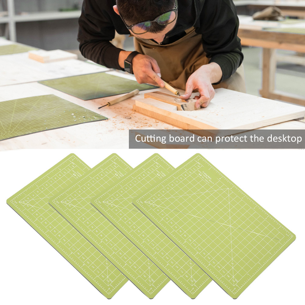 1、Using high‑quality materials, good self‑healing ability, repeated cutting is not affected. 2、This product has high blade durability, extremely durable and does not reflect light or slip. 3、Wide range of applications, suitable for engraving seals, manual pads, craft paper carvings, negative film cutting, etc. 4、The cutting board can protect the desktop from injury during cutting work. 5、With 4 cutting mat, can meet your use and replacement needs, very practically.