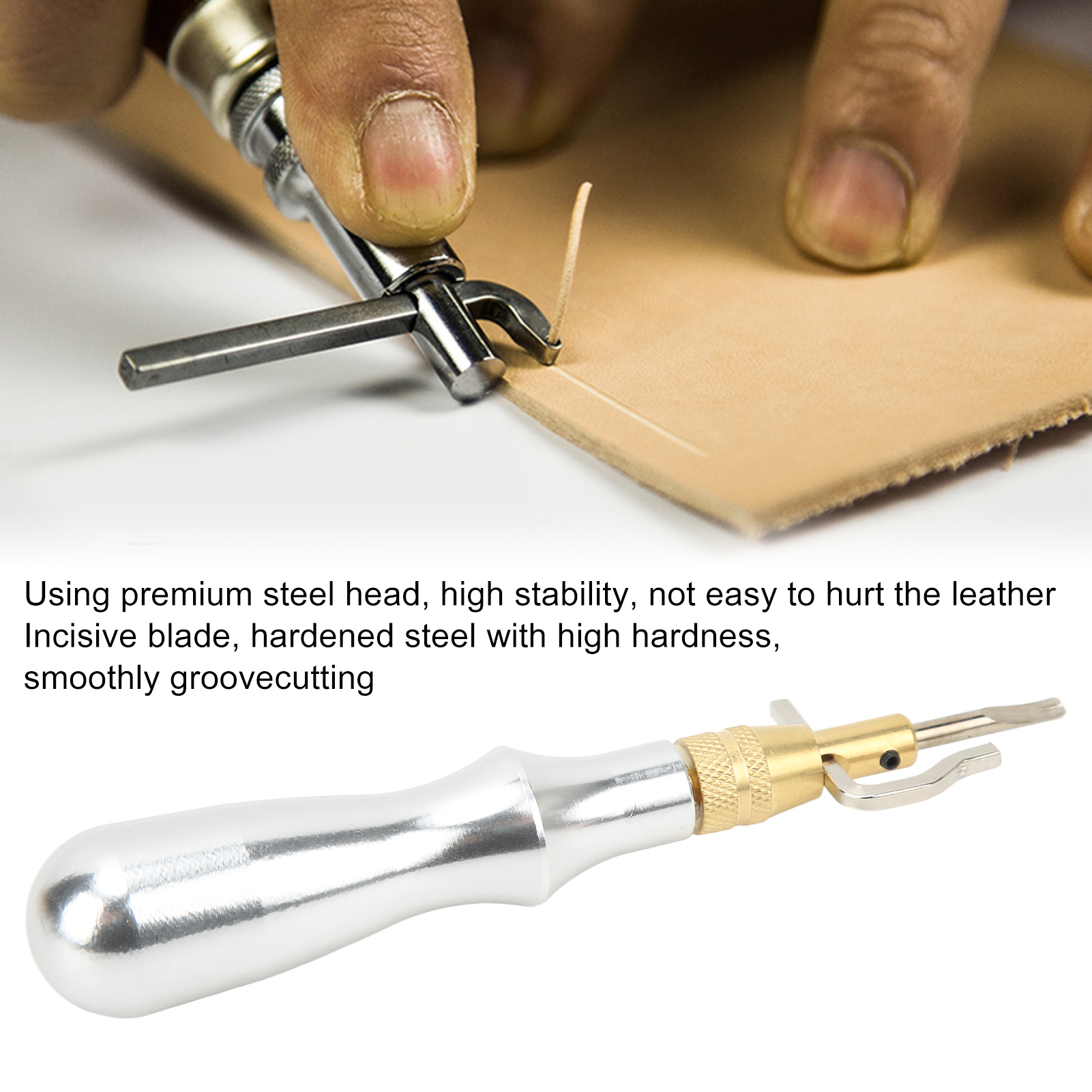 1、Leather Professional Tools: This is a practical tool set for both professionals and amateurs. 2、Premium Material: Leather groover Using premium steel head, high stability, not easy to hurt the leather. 3、Simple and Practical: Adjust a space and make a groove with proper force, simple and practical for long time work. 4、Blade Incisive: Quenched steel with high hardness, grooves cut smoothly, will not clog the blade due to leather fracture. 5、Applicability: You can easily and quickly punch, groove, crimp and trim the edges of belts, wallets, handbags, leather, table mats, etc.