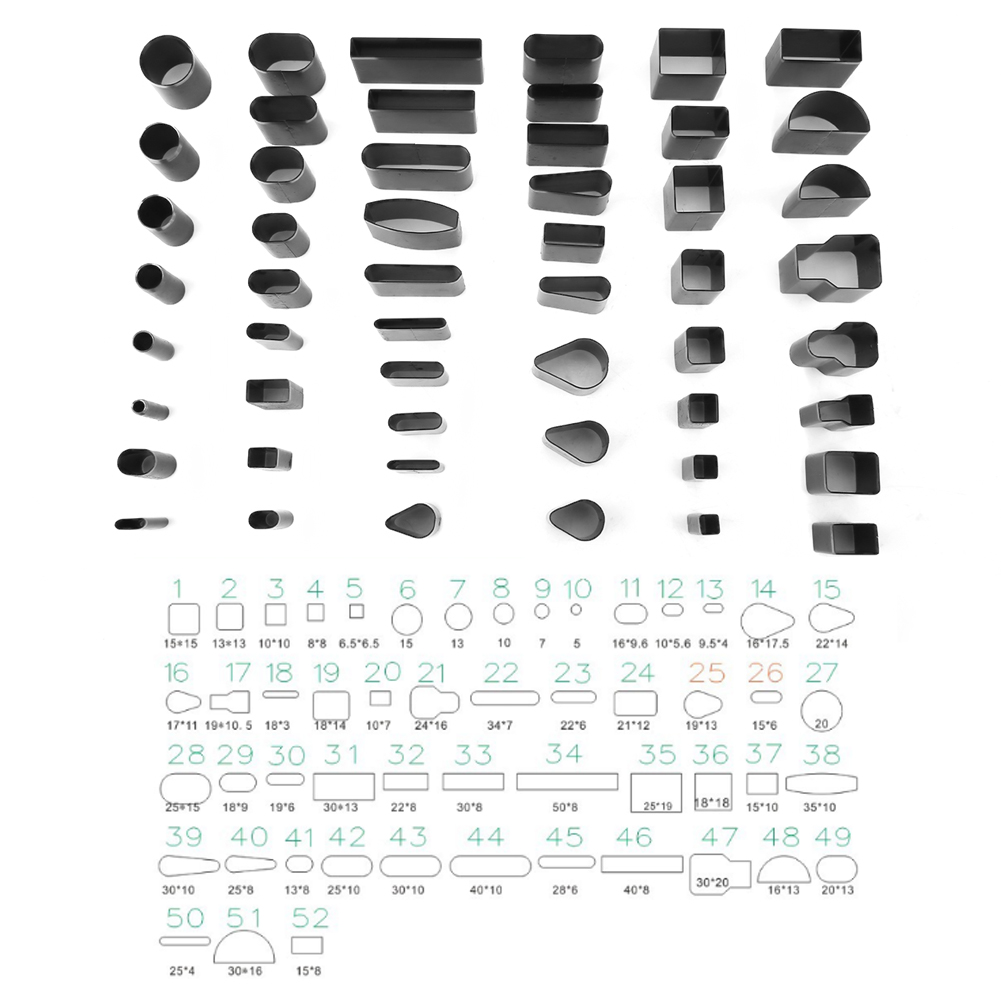 1、Made from premium alloy steel, is high density, anti-oxidation, rugged and durable. The incision position is specially designed, thin and sharp without leaving marks. 2、There are 52 shapes as picture, including rectangle, oval, square, round, and so on. You can choose any leather punch shapes and make out what you want. 3、The punch cutter tool is great for handmade DIY, like layered fabric, leather or polymer clay. 4、This tool can make all kinds of hole for camera of phone, leather belt or other small leather craft. 5、The punch cutter tool is made from alloy steel, which is high density, not easily deformed, durable.