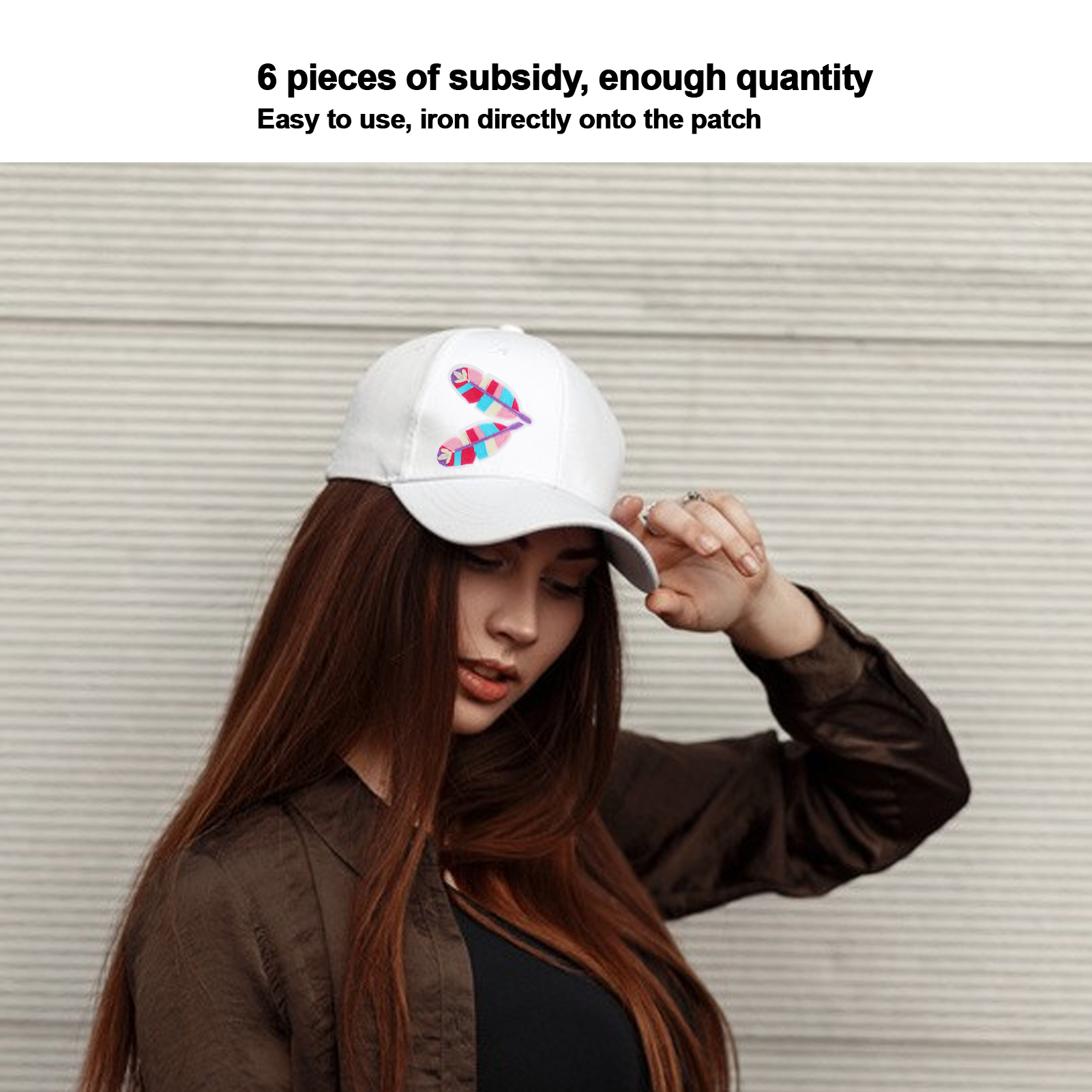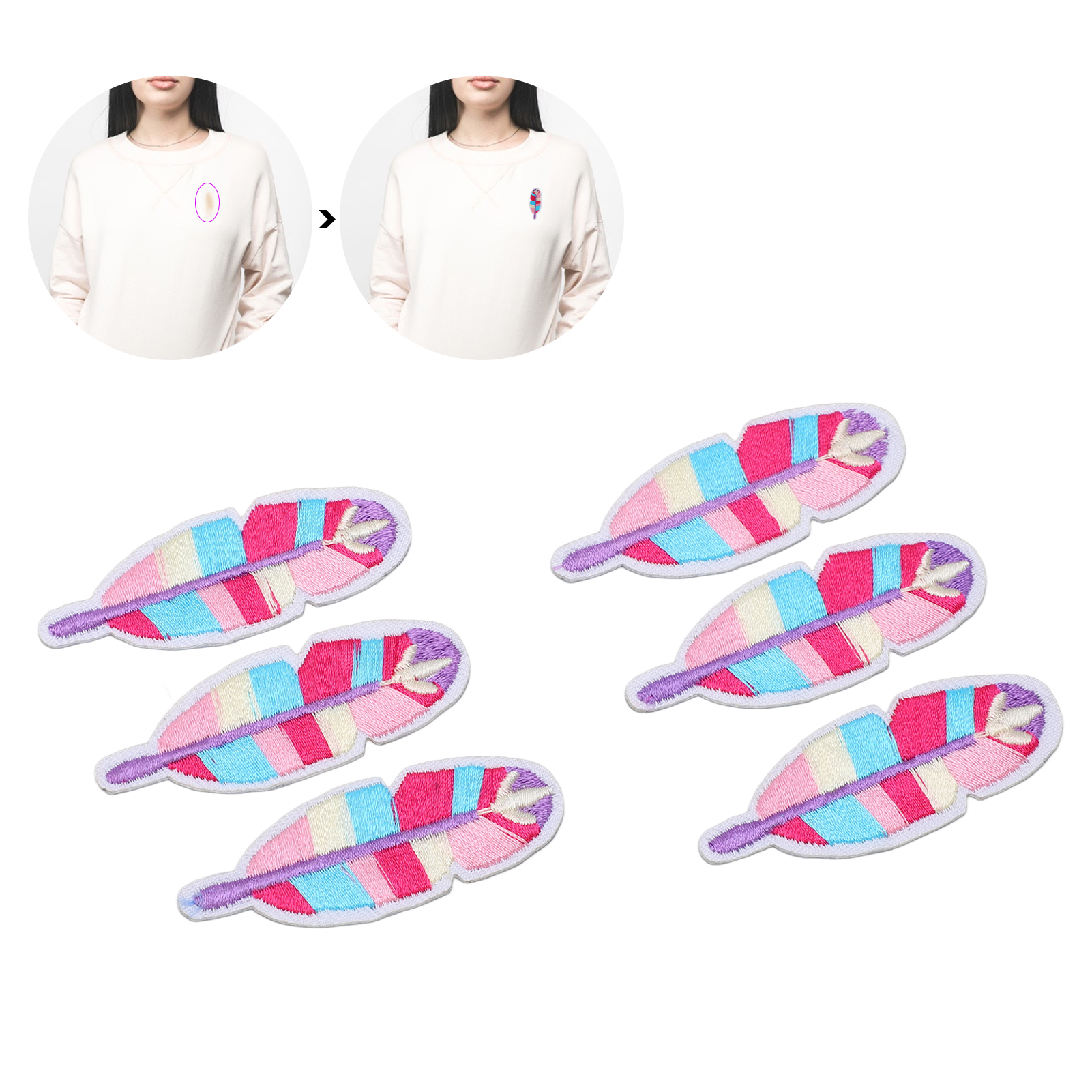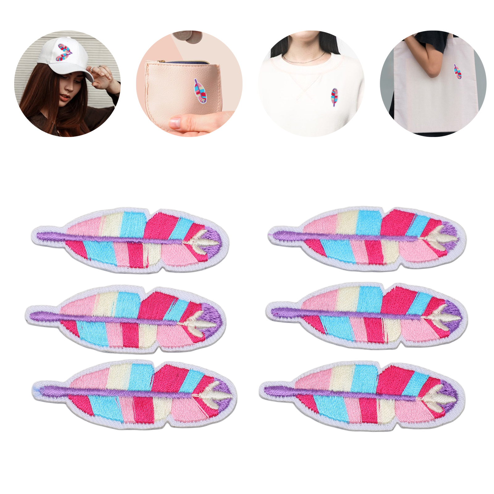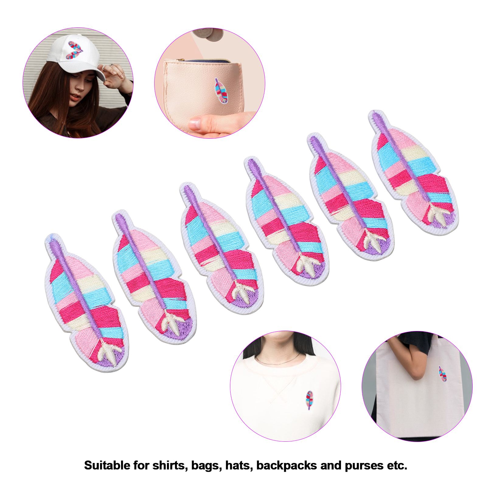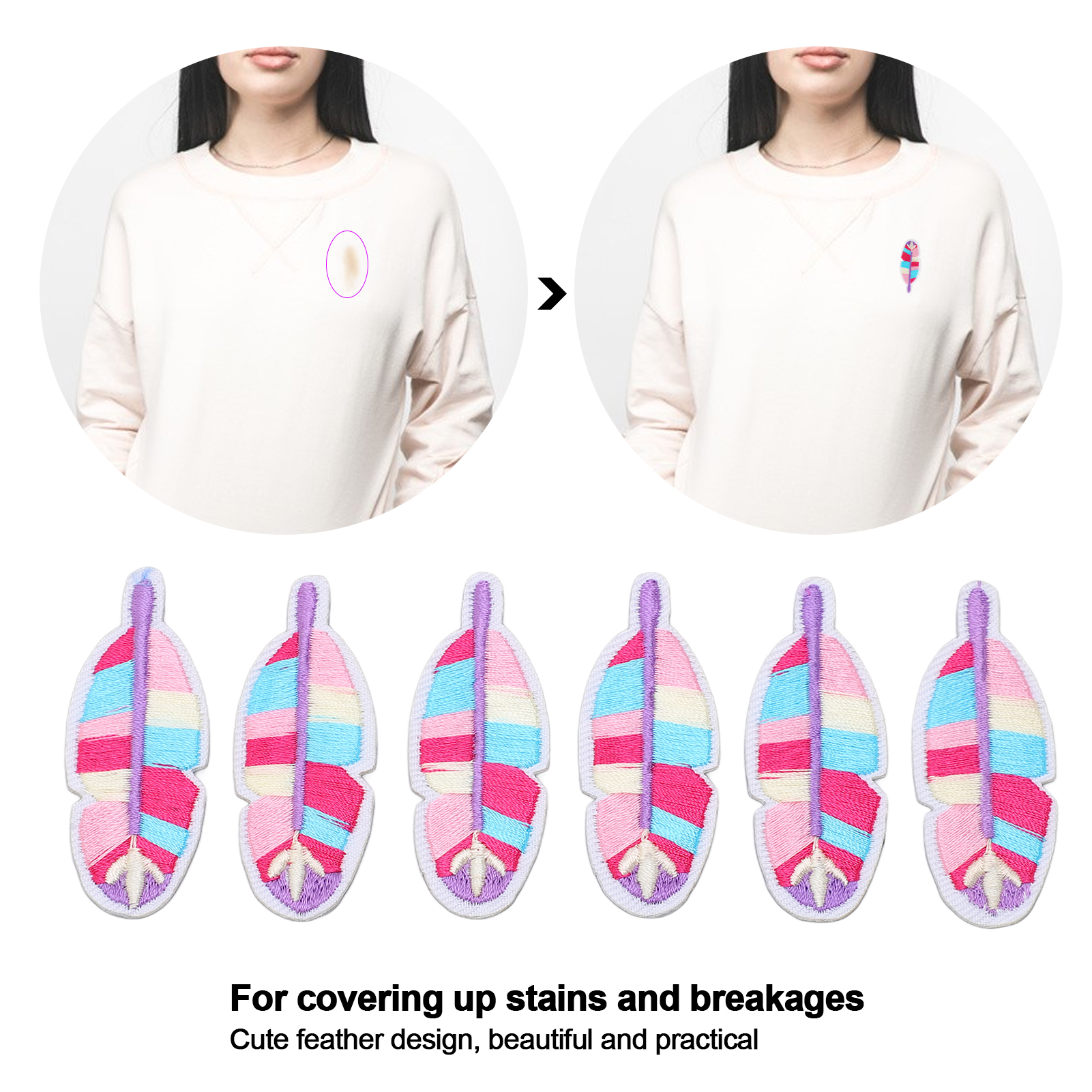 6Pcs Colorful Feather Patch Shading Blemishes Damage Feather Cute Iron On Patches for DIY Shirts Bags Hats Backpacks