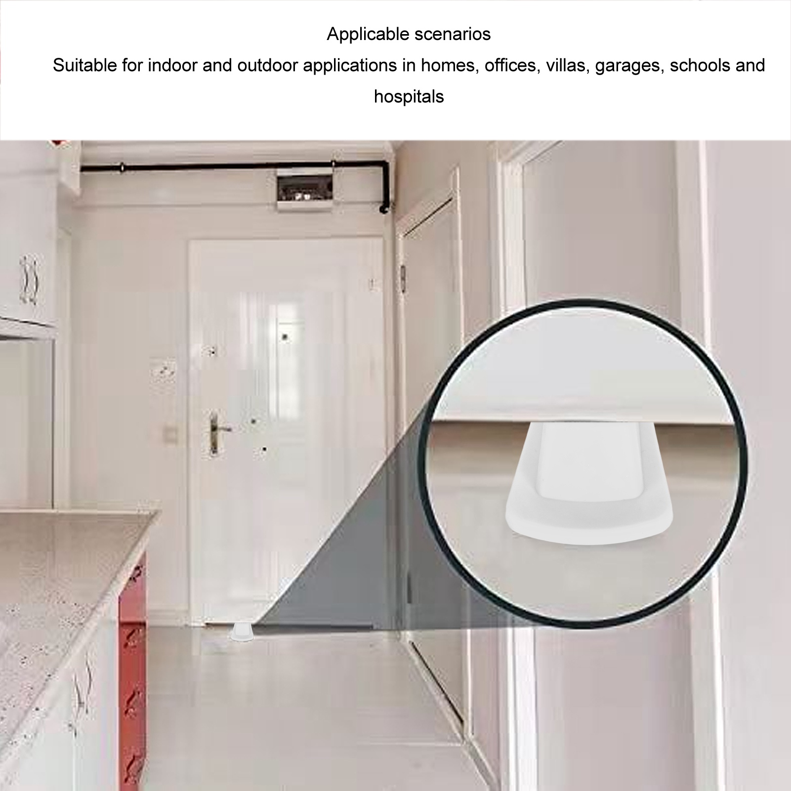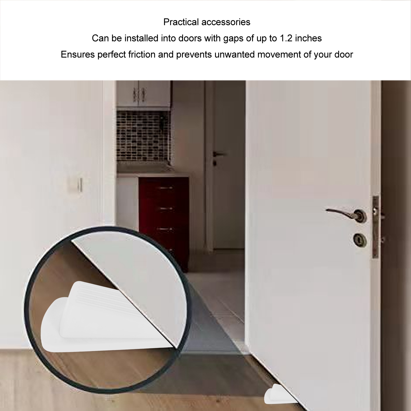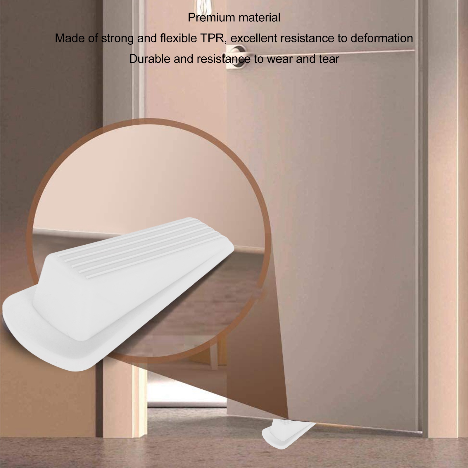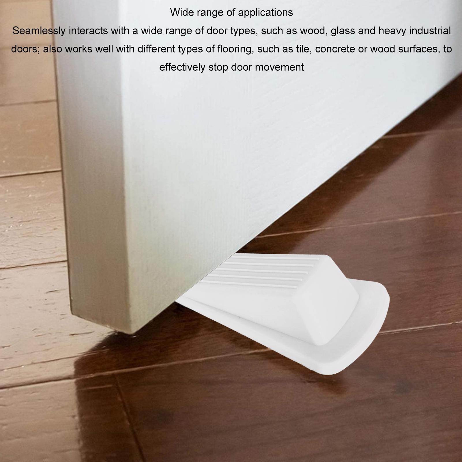 1、PREMIUM MATERIAL: The door stop wedge is made of solid and flexible TPR material, excellent resistance to deformation, durable and wear resistance. 2、PRACTICAL ACCESSORIES: Door stopper is able to fit into doors with gaps up to 1.2 inches, ensuring perfect friction and preventing unwanted movement of your door. 3、WIDE APPLICATION: Interacts seamlessly with various door types such as wood, glass and heavy duty industrial doors; also works well with different types of flooring such as tile, concrete or wood surfaces to effectively stop door movement. 4、APPLICATION SCENARIO: The door stop wedge is suitable for indoor and outdoor applications in homes, offices, villas, garages, schools and hospitals. 5、6PCS: The package includes 6 pieces of door stop wedge in total, enough quantity to meet your actual needs.