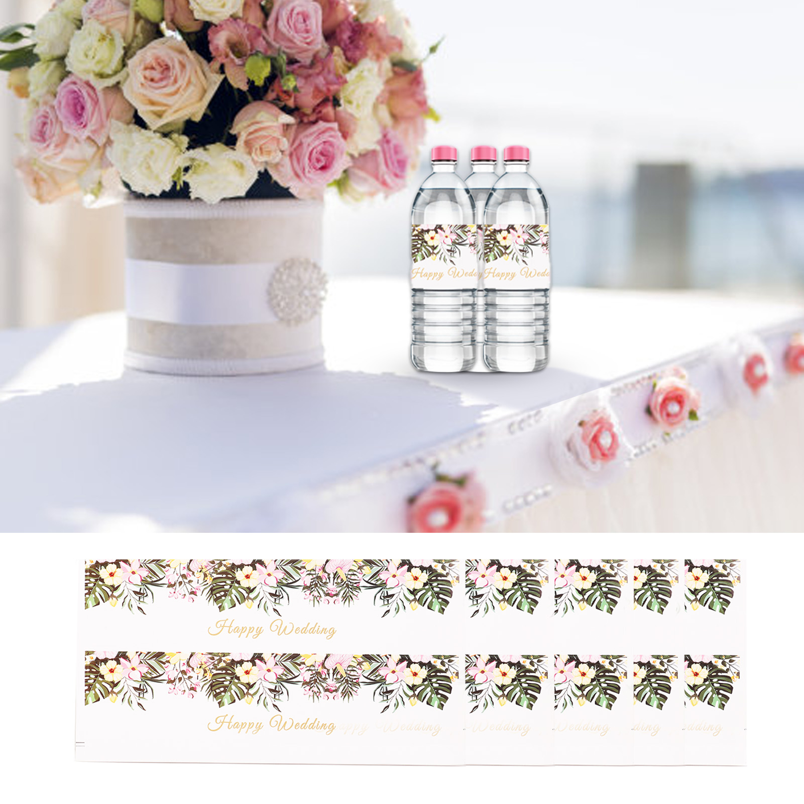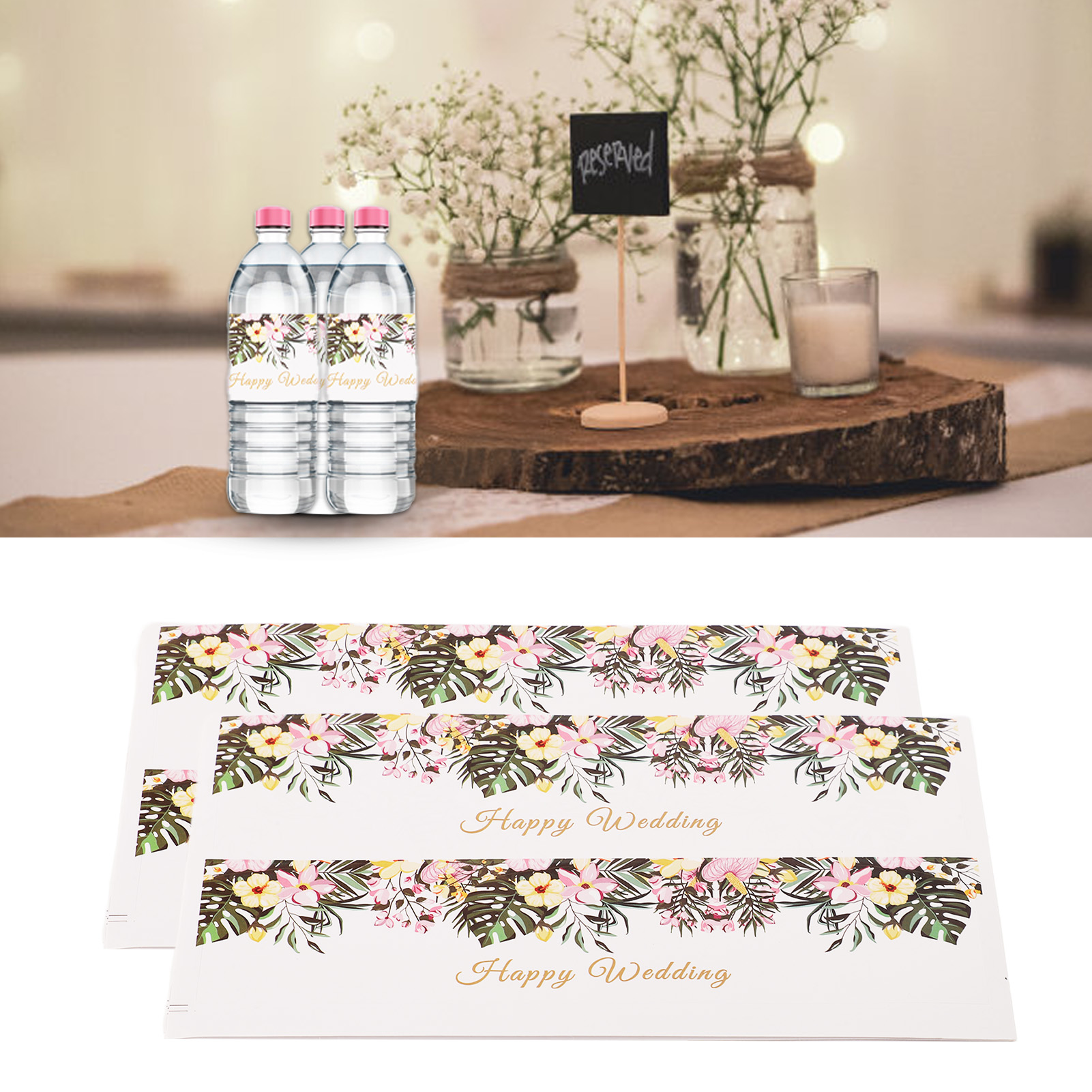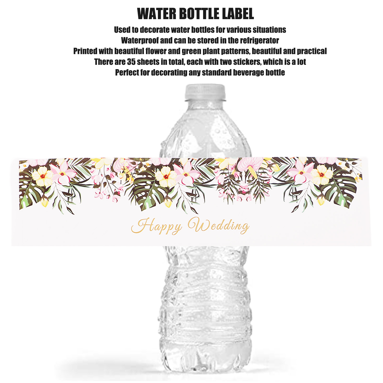 70Pcs Wedding Water Bottle Label Waterproof Flower Green Plant Pattern Wedding Bridal Shower Bottle Wraps for Party HM220505007
