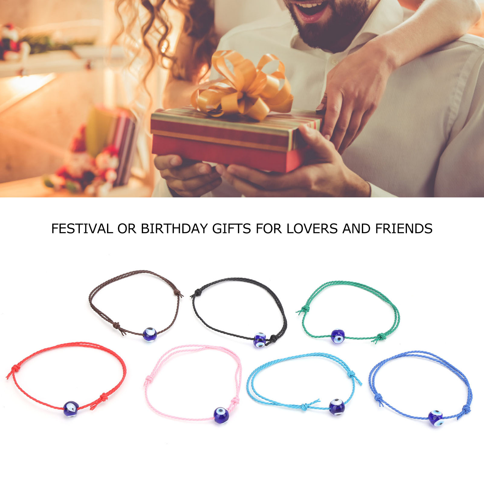1、There are 7 bracelets, which are red, green, blue, black, pink, light blue, brown, you can choose any color according to your preference. 2、The length of the bracelet is adjustable, so it can fit for most wrist, you can adjust it according to your own size. 3、Special design of the bracelet makes it beautiful and meaningful, the blue eye is so unique to attract people's attention. 4、Give this pretty bracelet bangle as a unique present to your loved ones, like lover, wife, fiancee or parents to express your love to them. 5、Fits for you to attend any special situations, such as dinner party, birthday party, wedding,etc. Just show your own style and make you bling.