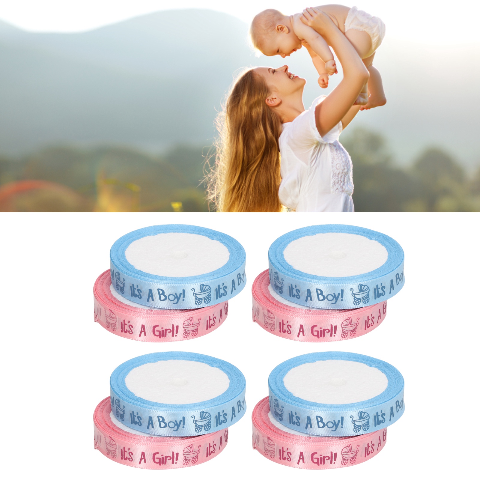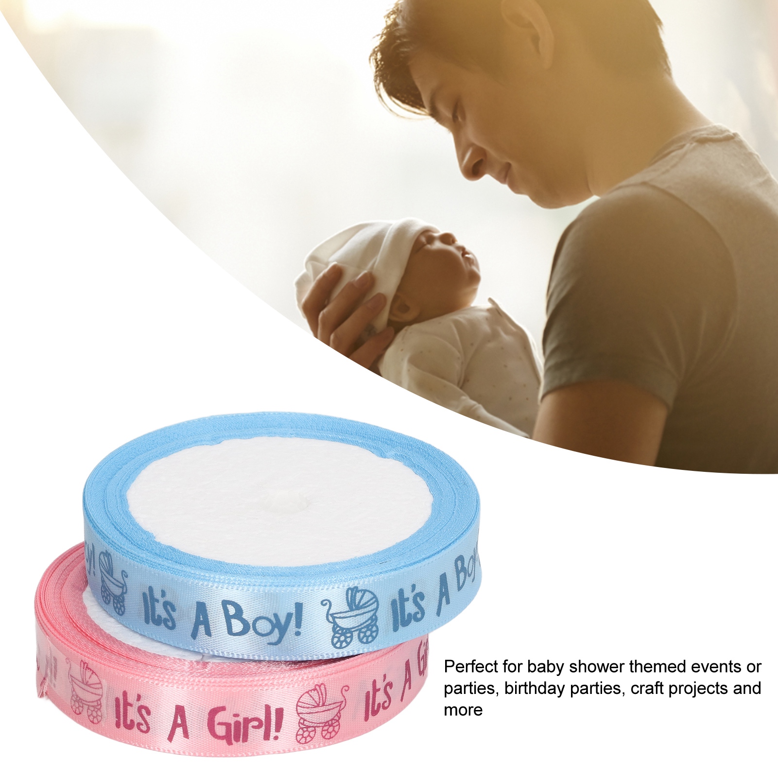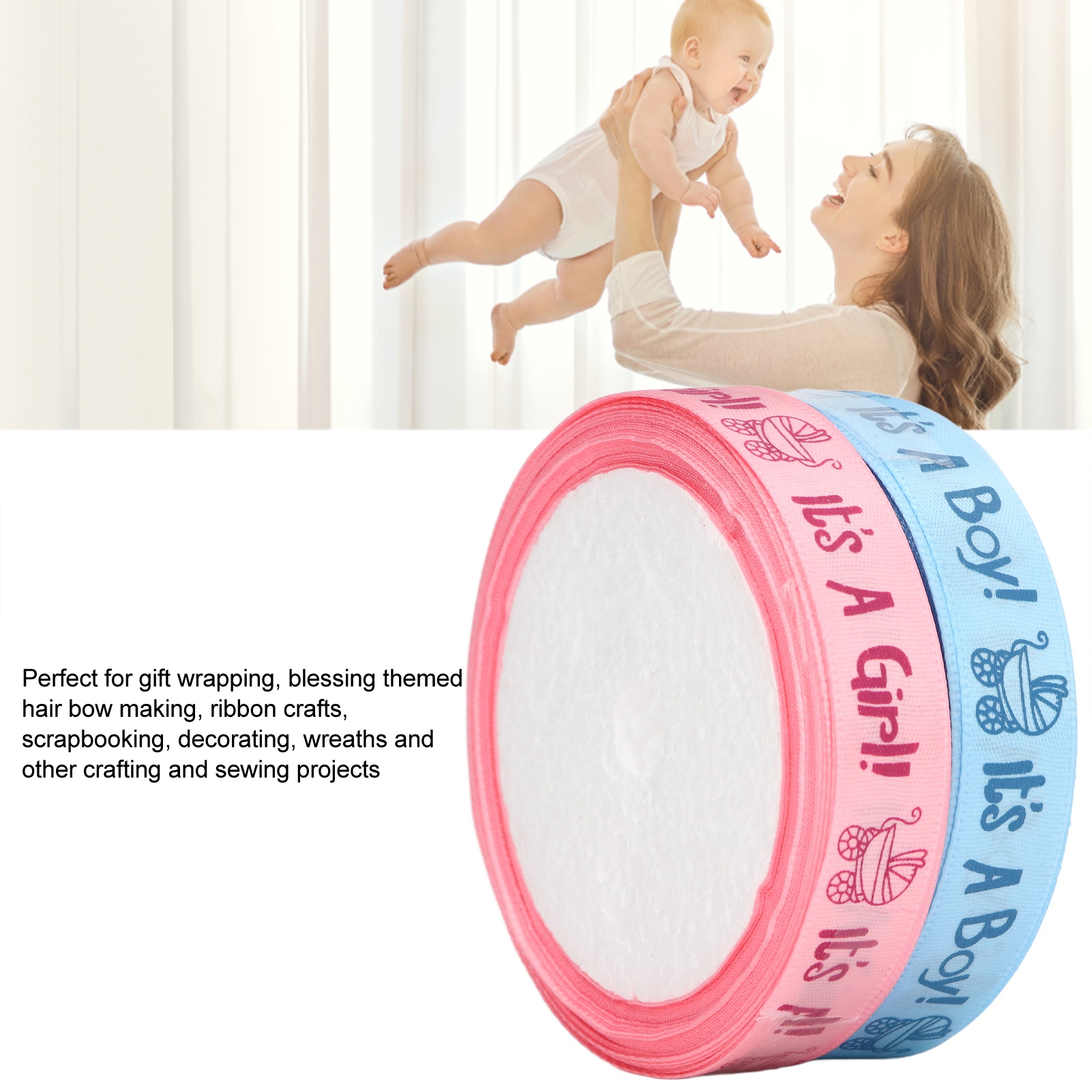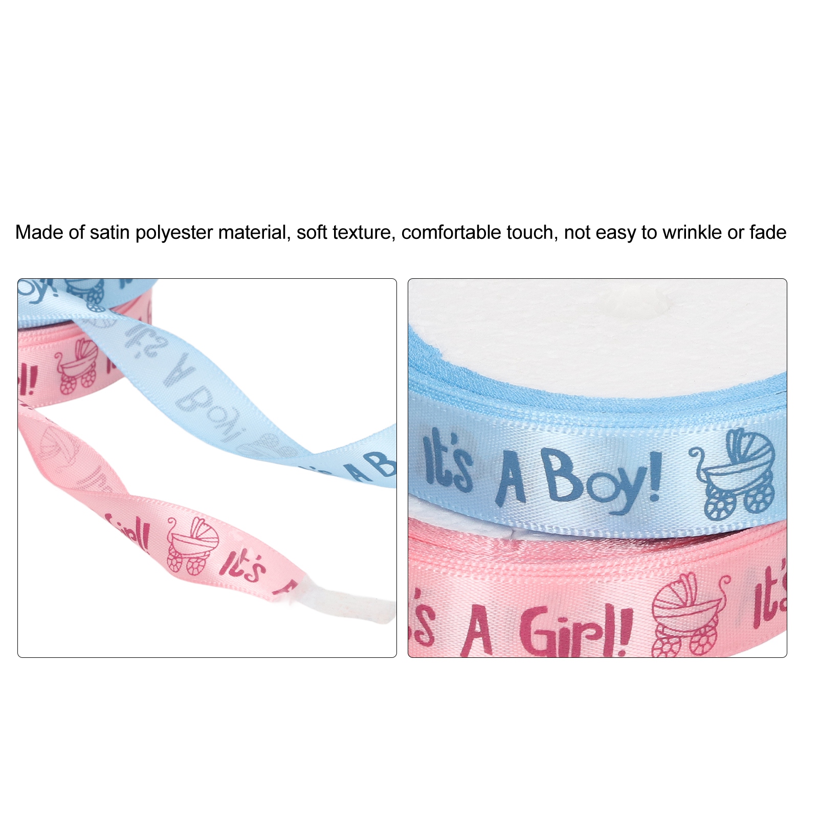 1、Theme Print: Baby shower themed craft ribbon with It's a Boy, It's a Girl printed in soft and sweet colors. 2、Party Decorations: Ribbons are ideal accessories for baby themed projects, and they'll be your pretty decorative choice too. 3、Material: Made of premium satin polyester material, soft texture, comfortable to touch, not easy to wrinkle or fade, durable, can help you with various hand made projects. 4、Applicability: Suitable to appear in many situations such as baby shower themed events or parties, birthday parties, craft projects, etc. 5、Multipurpose: Great for gift wrapping, blessing themed hair bow making, ribbon crafts, scrapbooking, decorating, wreaths, and other crafting and sewing projects.