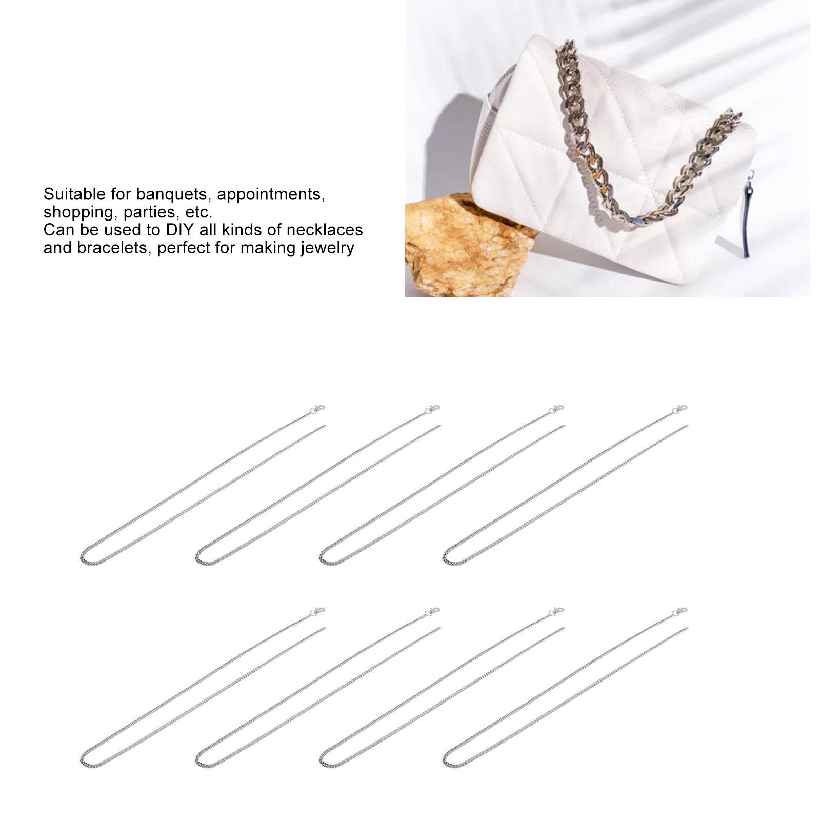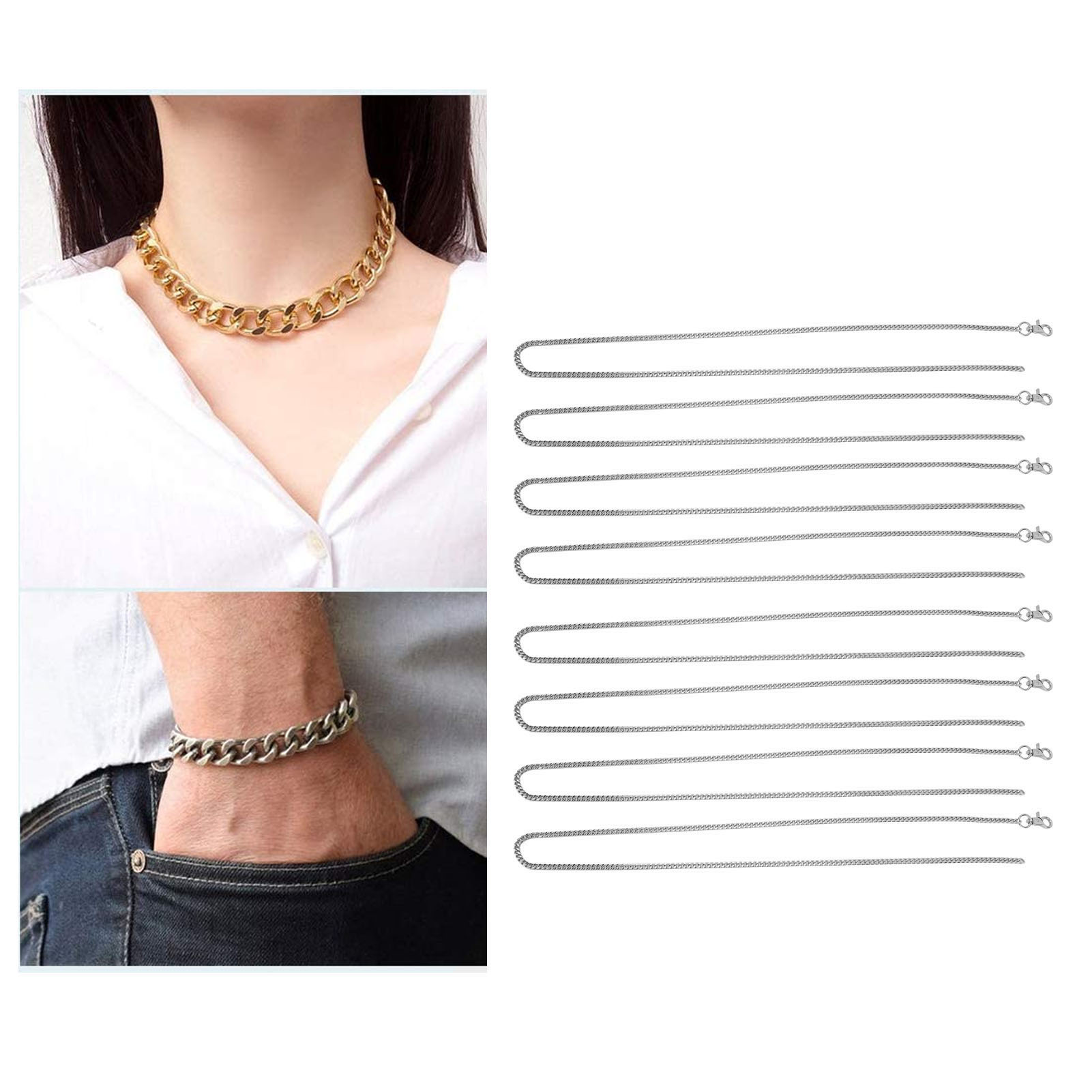 1、8pcs: The appearance of the chain is sturdy and elegant, with 8 pieces of 1.2 meters long, which can be cut and used, and the length can be adjusted at will. 2、DIY Jewelry: Chains can be used to make jewelry suitable for DIY, such as necklaces, bracelets, anklets, etc. to show your personality. 3、Simple Storage: The chain hangs on the reel and won't get tangled, when not in use, just roll it back on the spool for storage, easy and convenient. 4、Aluminum Material: The chain is made of aluminum material, which is not easy to discolor or rust, and is easy to maintain. 5、Applicable Scenarios: The strong and elegant appearance of the chain makes it suitable for daily wear or any special occasion, such as for banquets, appointments, shopping, parties, etc.