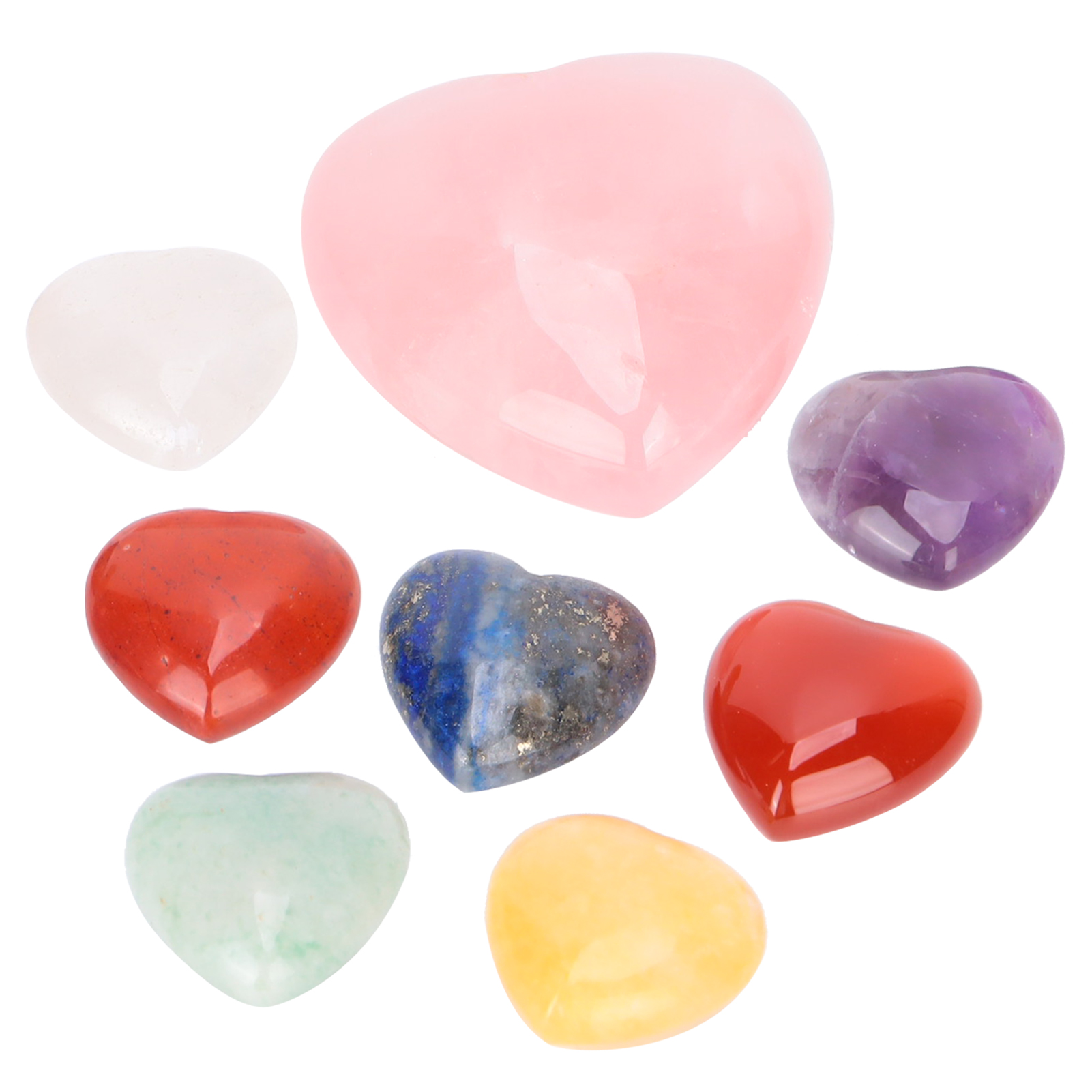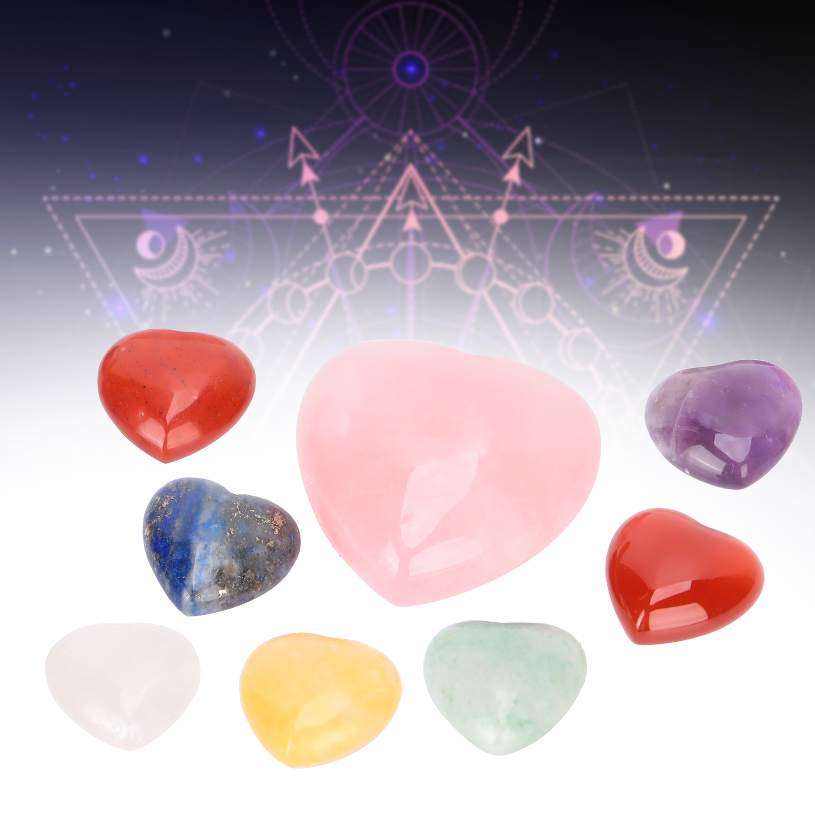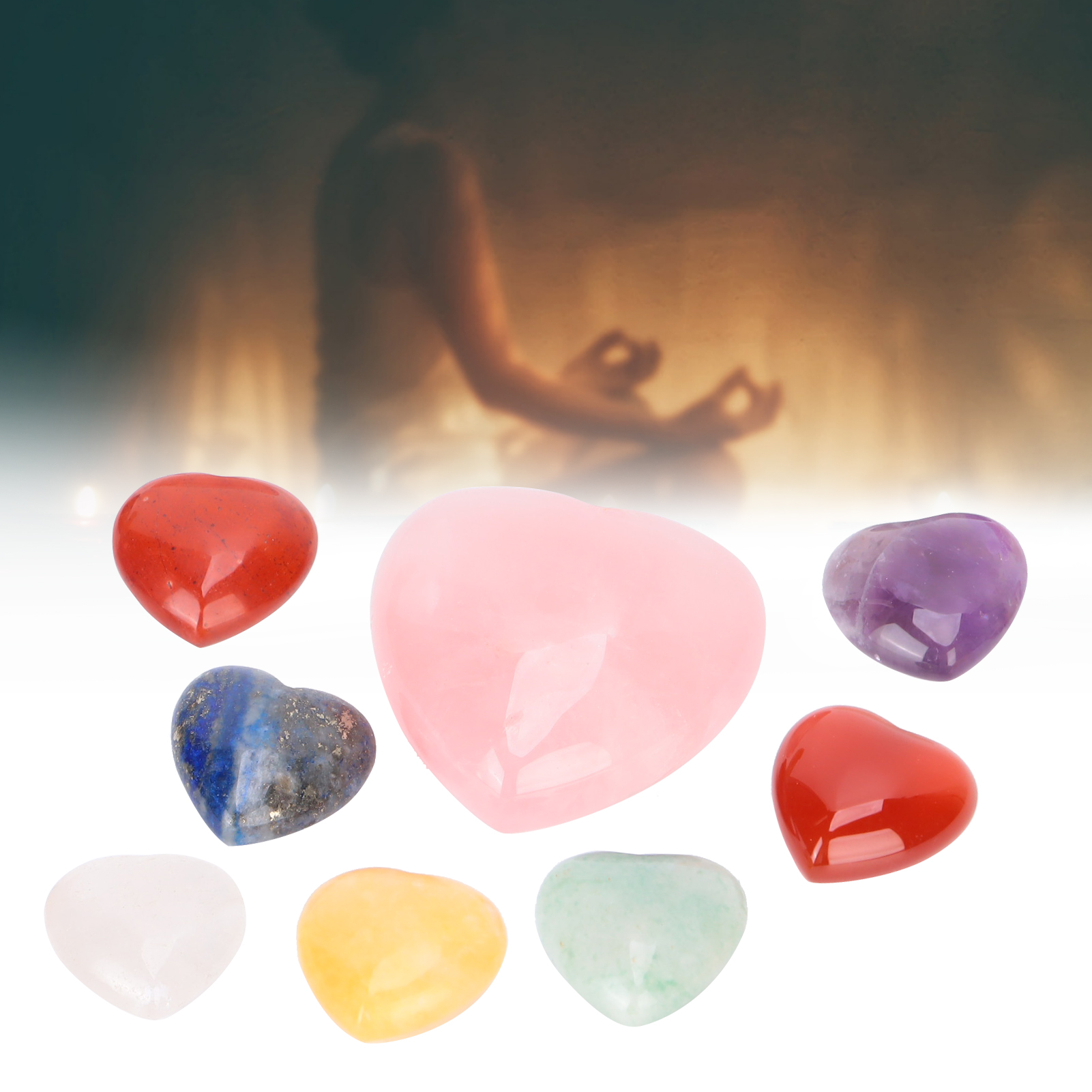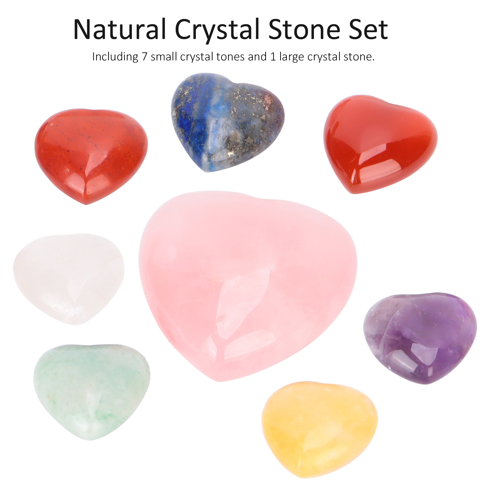 8Pcs Natural Crystal Stone Set HeartShaped for Meditation Divination Decoration